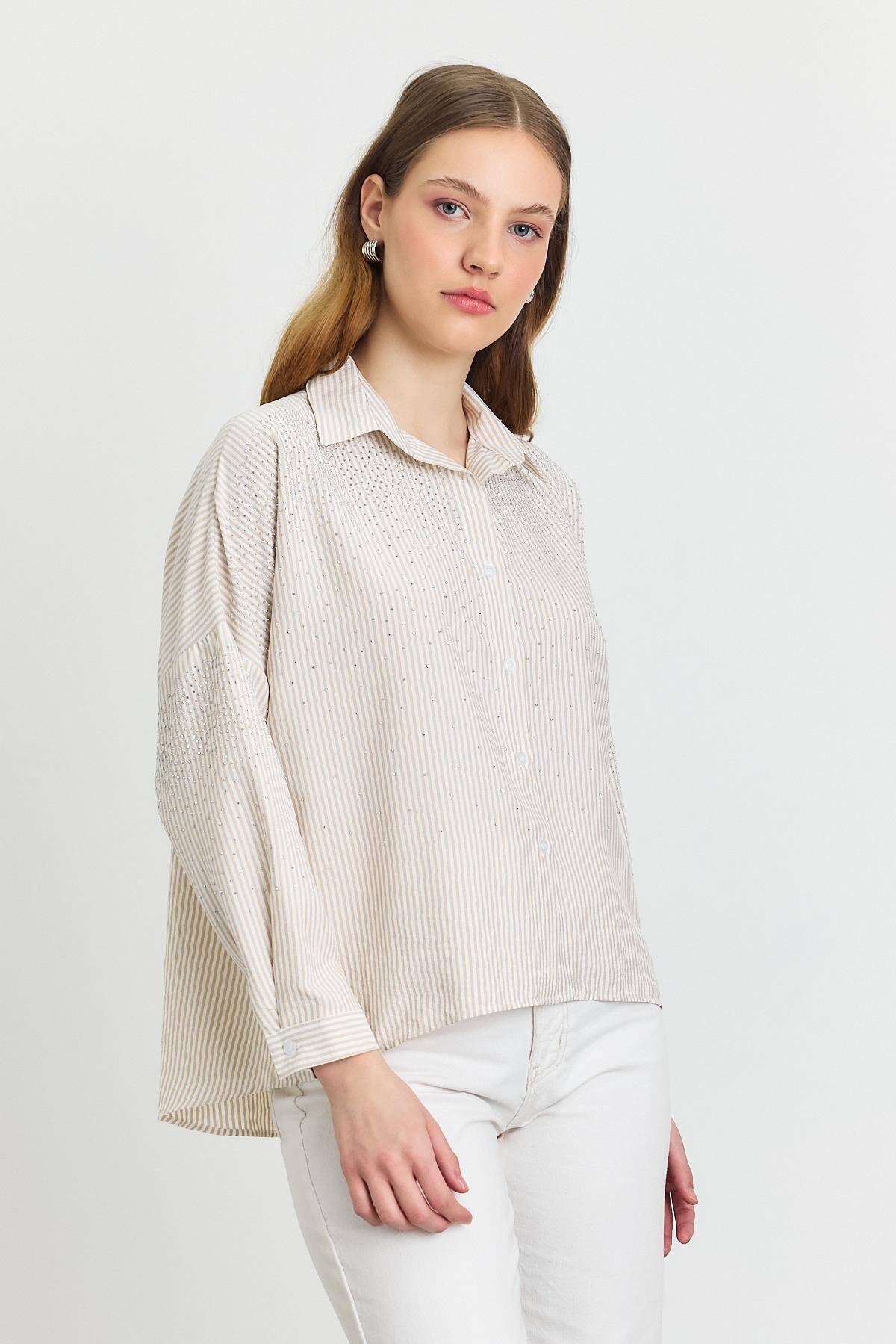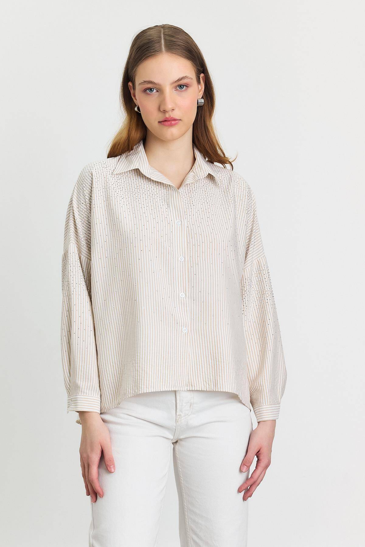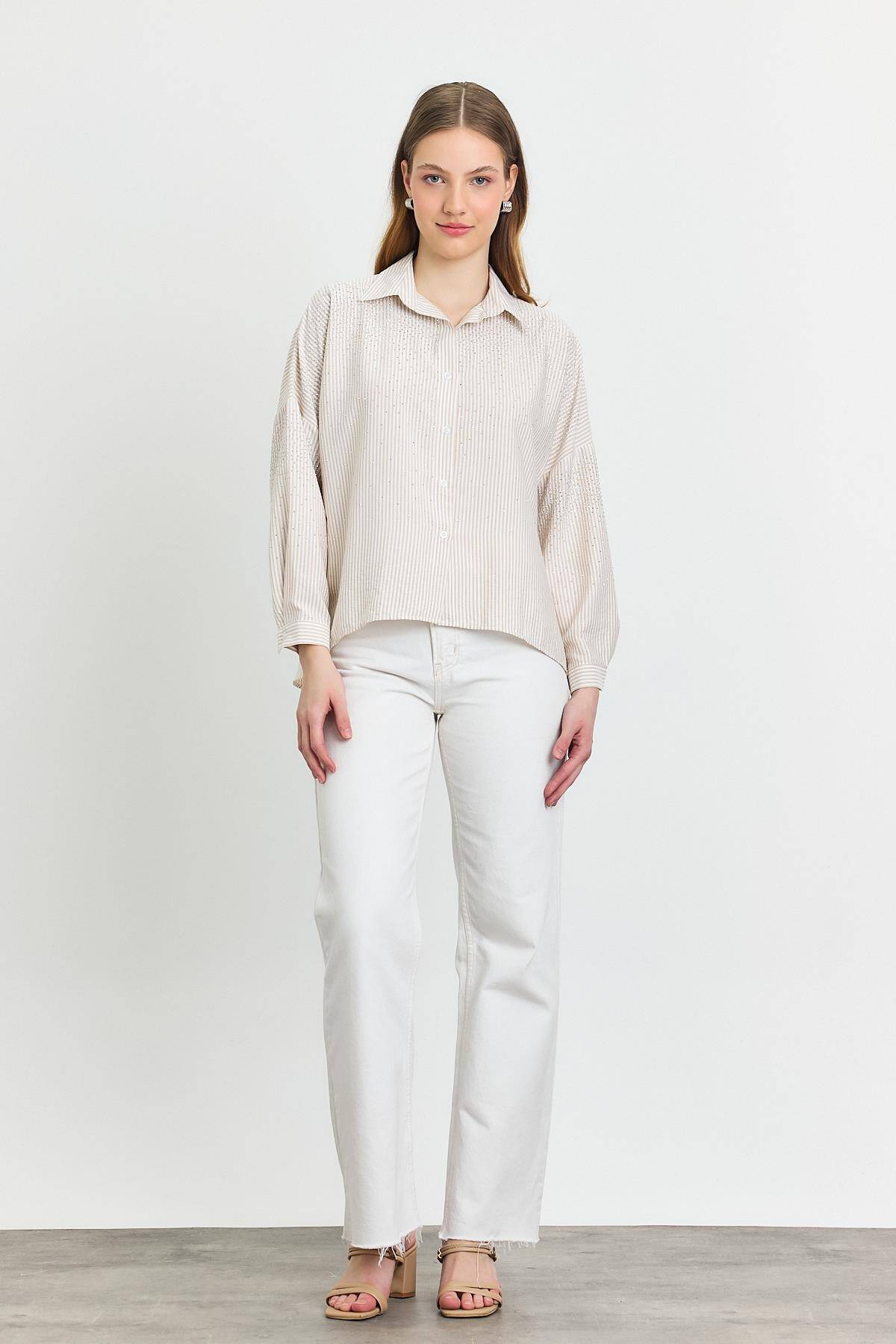 4340A Taş Detay Gömlek Bej