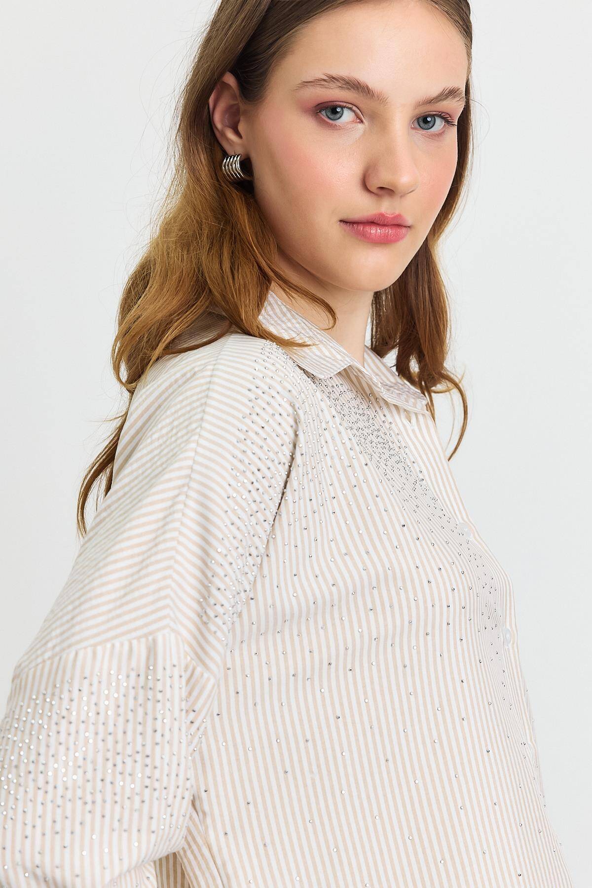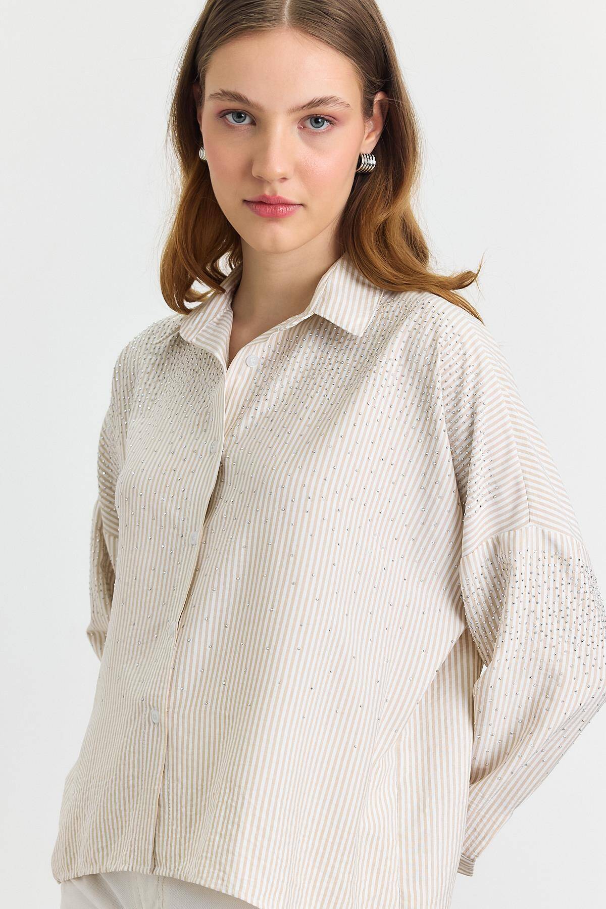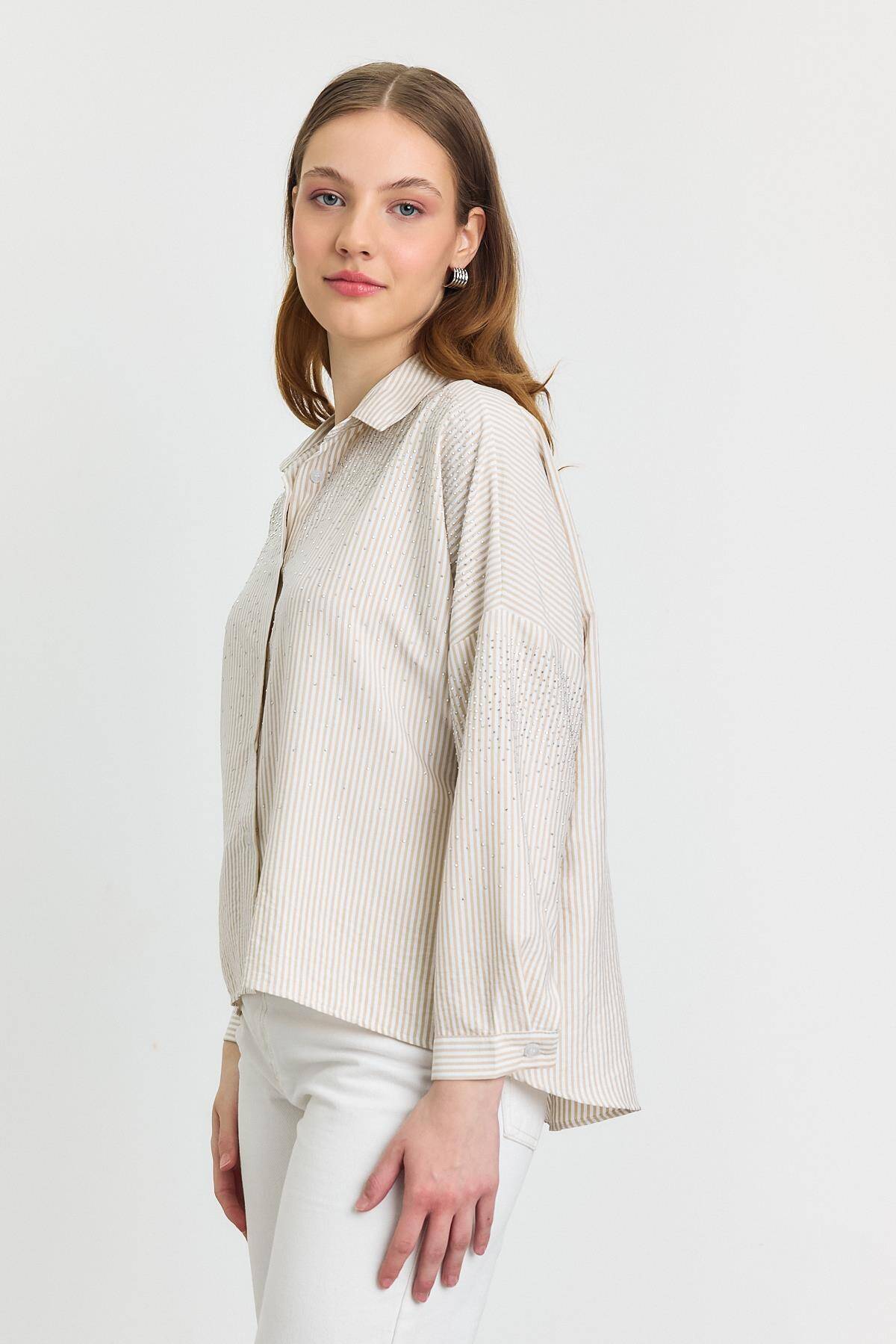 4340A Taş Detay Gömlek Bej