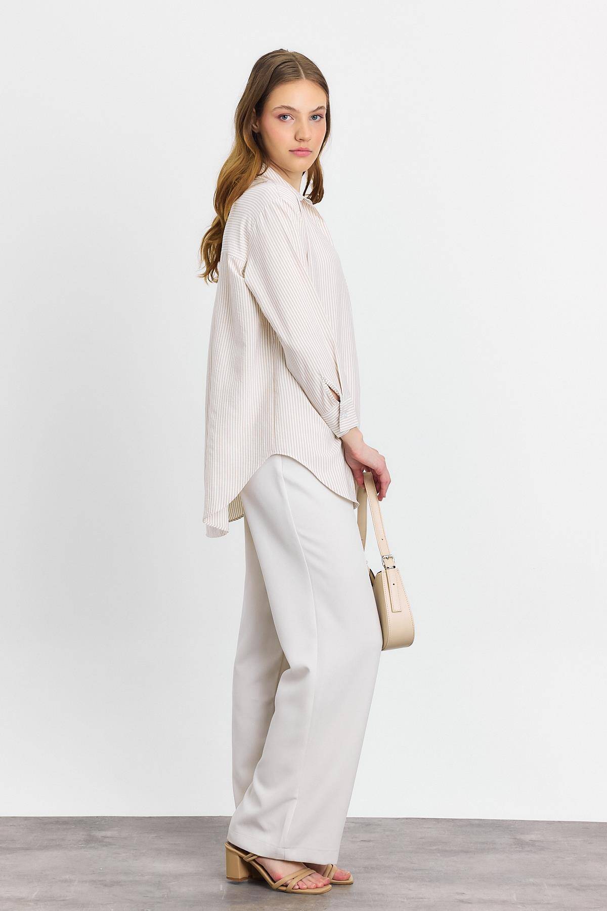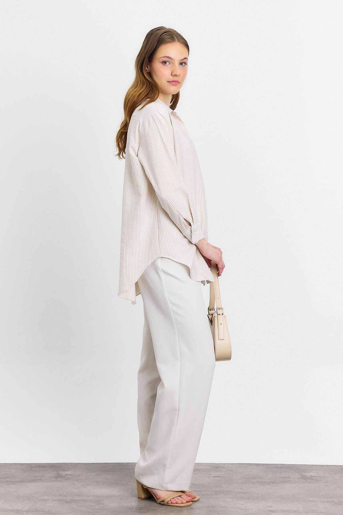 Beyaz Deri Kemer Detaylı Etnik Desenli Kimono 4363A