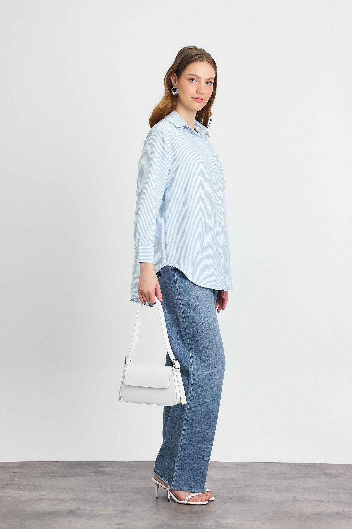 Beyaz Deri Kemer Detaylı Etnik Desenli Kimono 4363A