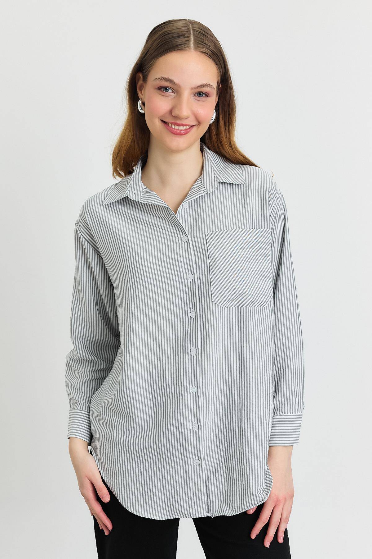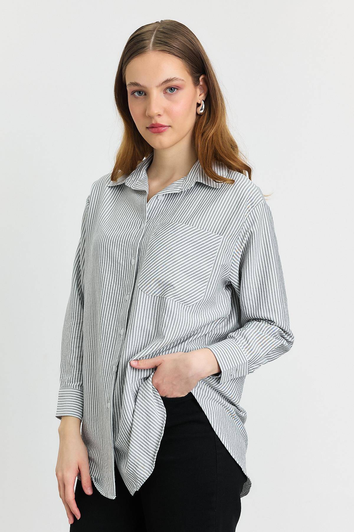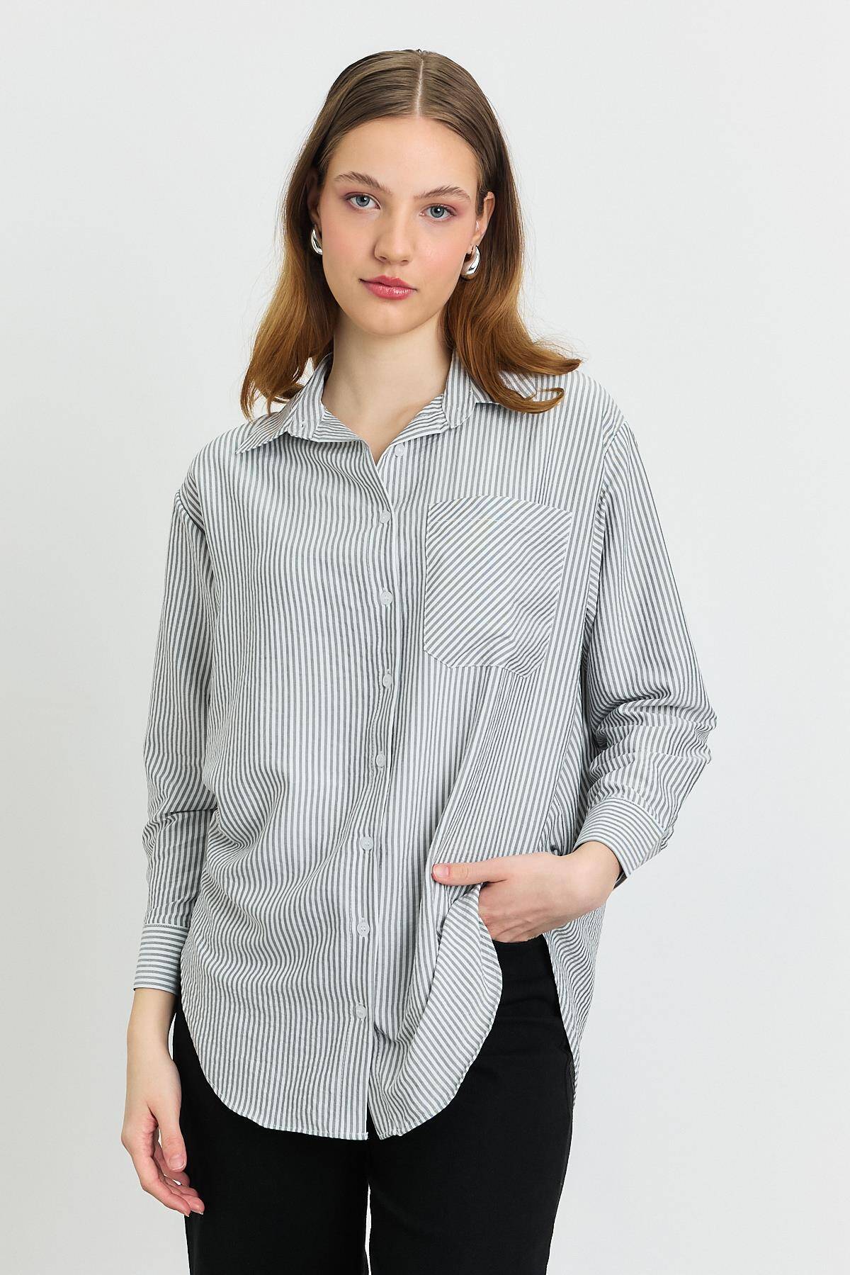 7149A Belden Bağlamalı Uzun Kaşe Kaban Gri