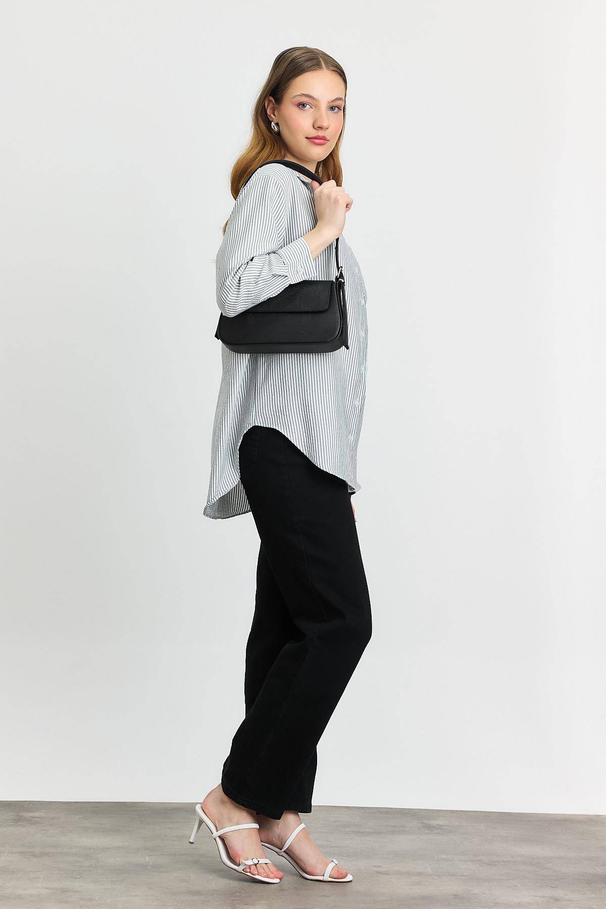 7149A Belden Bağlamalı Uzun Kaşe Kaban Siyah