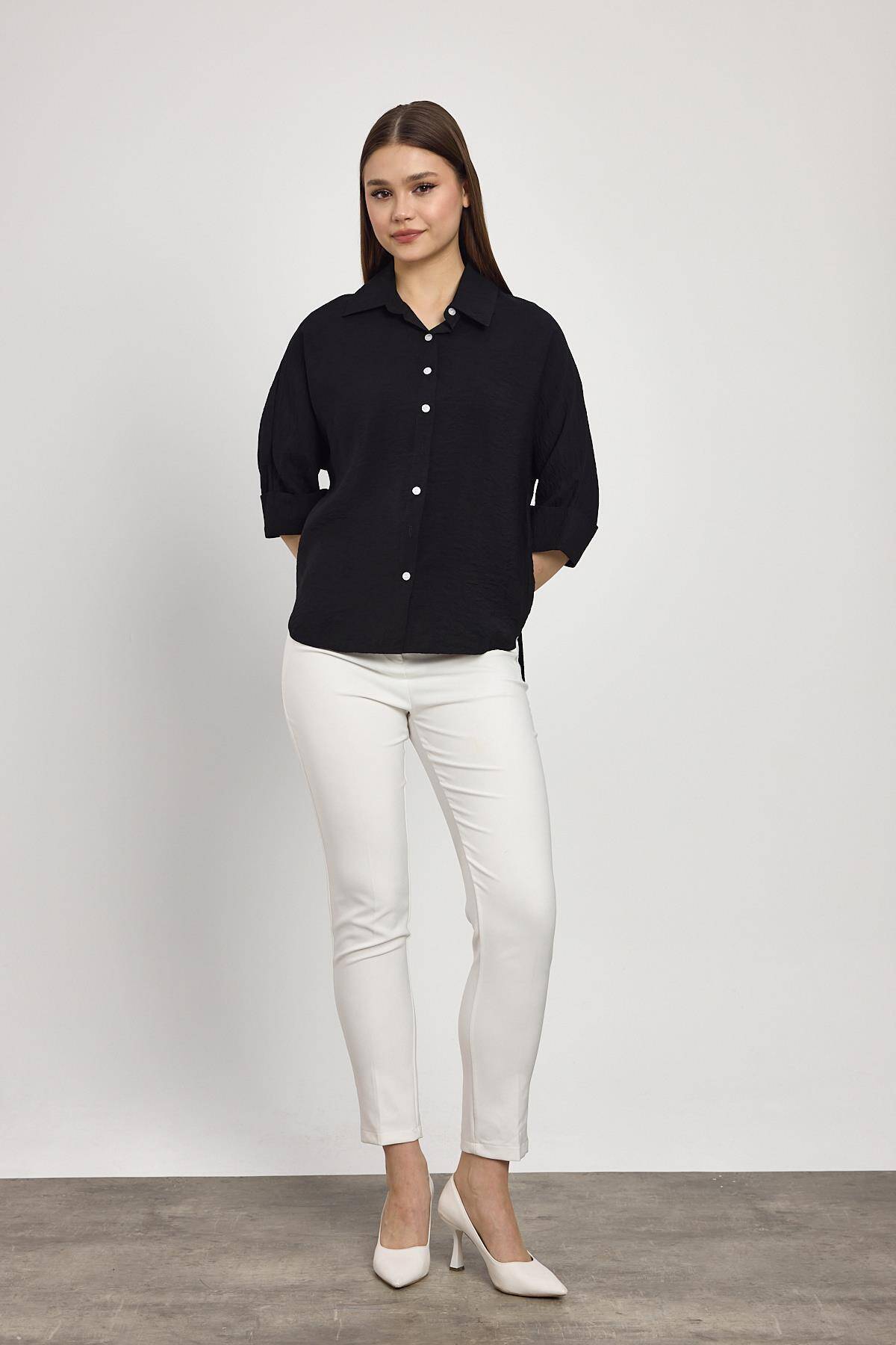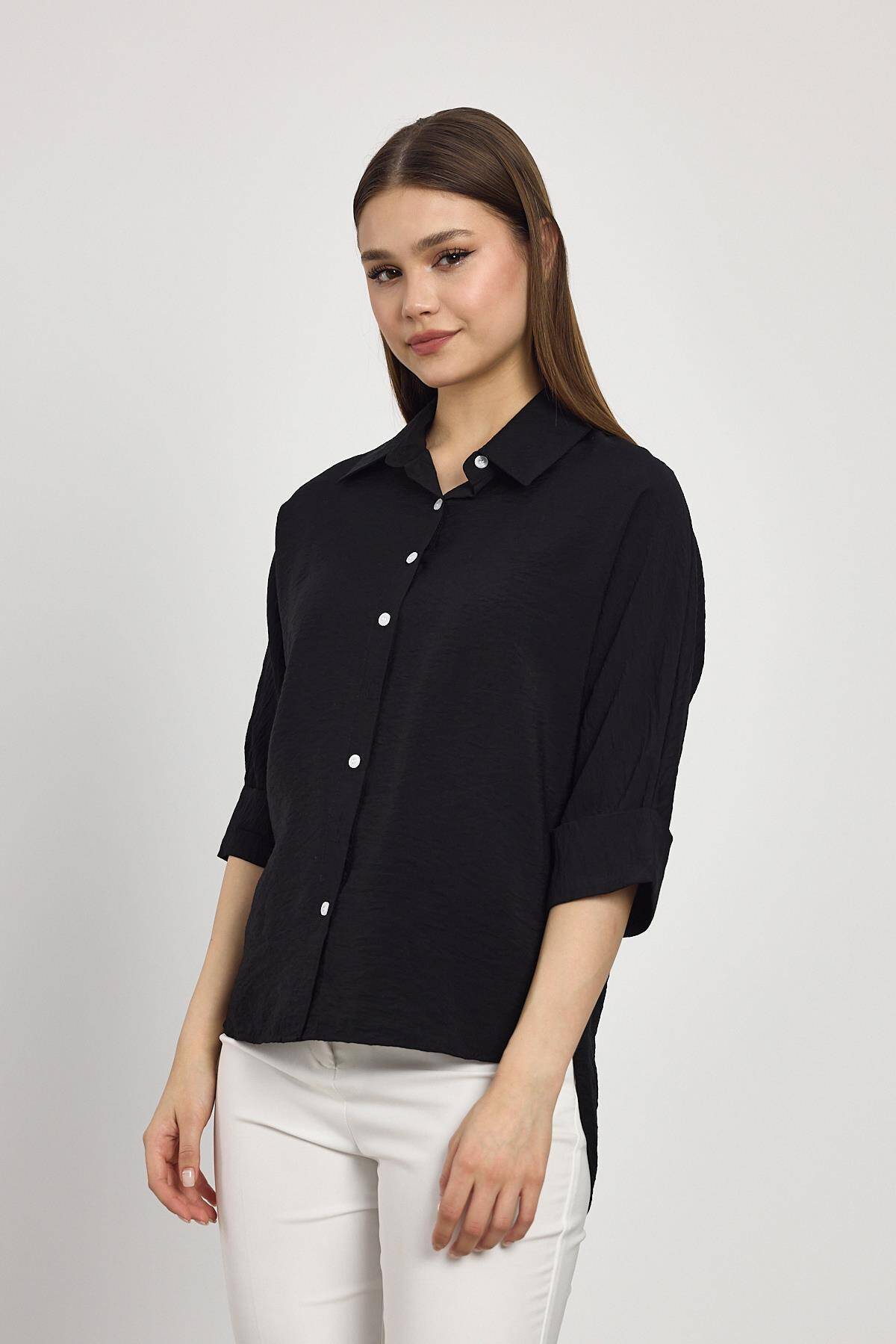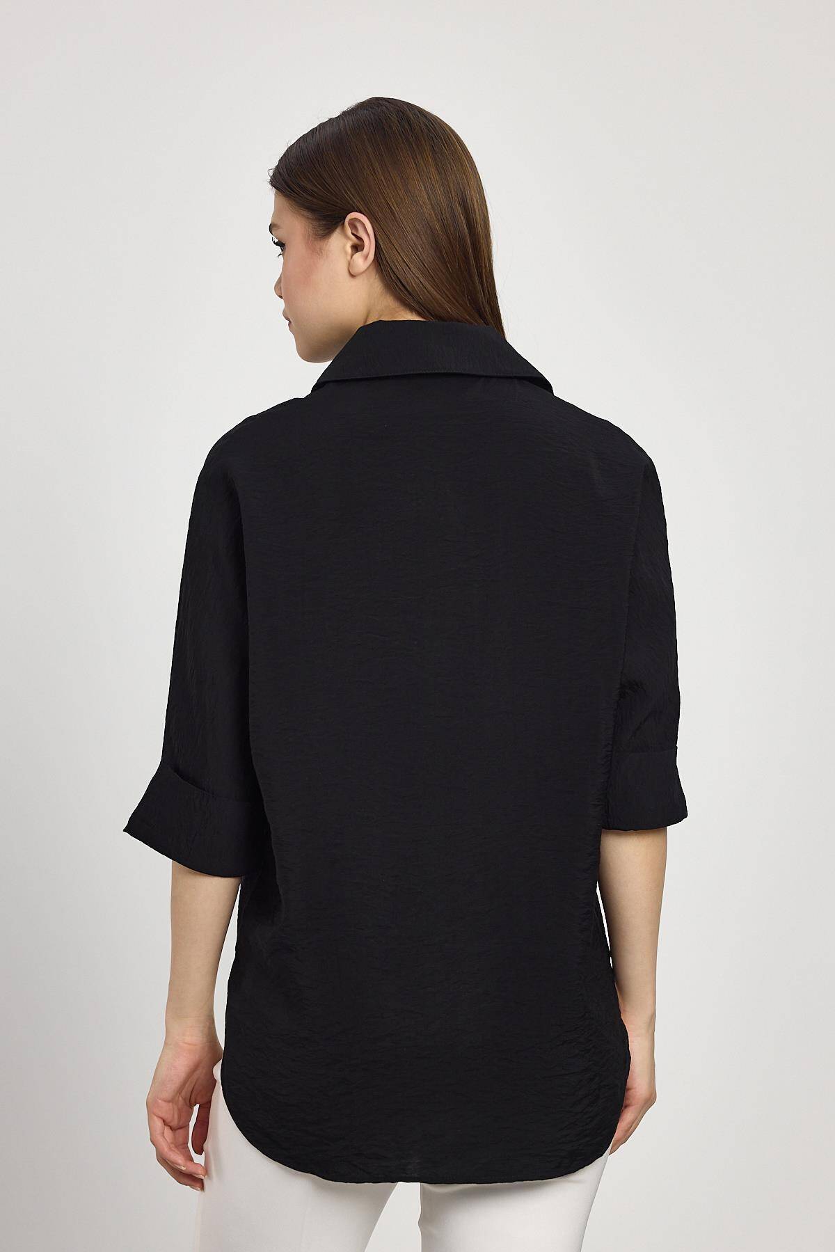 7149A Belden Bağlamalı Uzun Kaşe Kaban Siyah