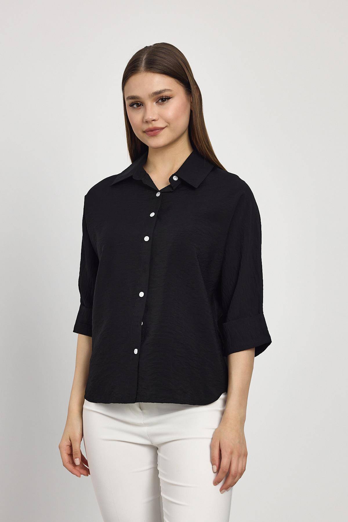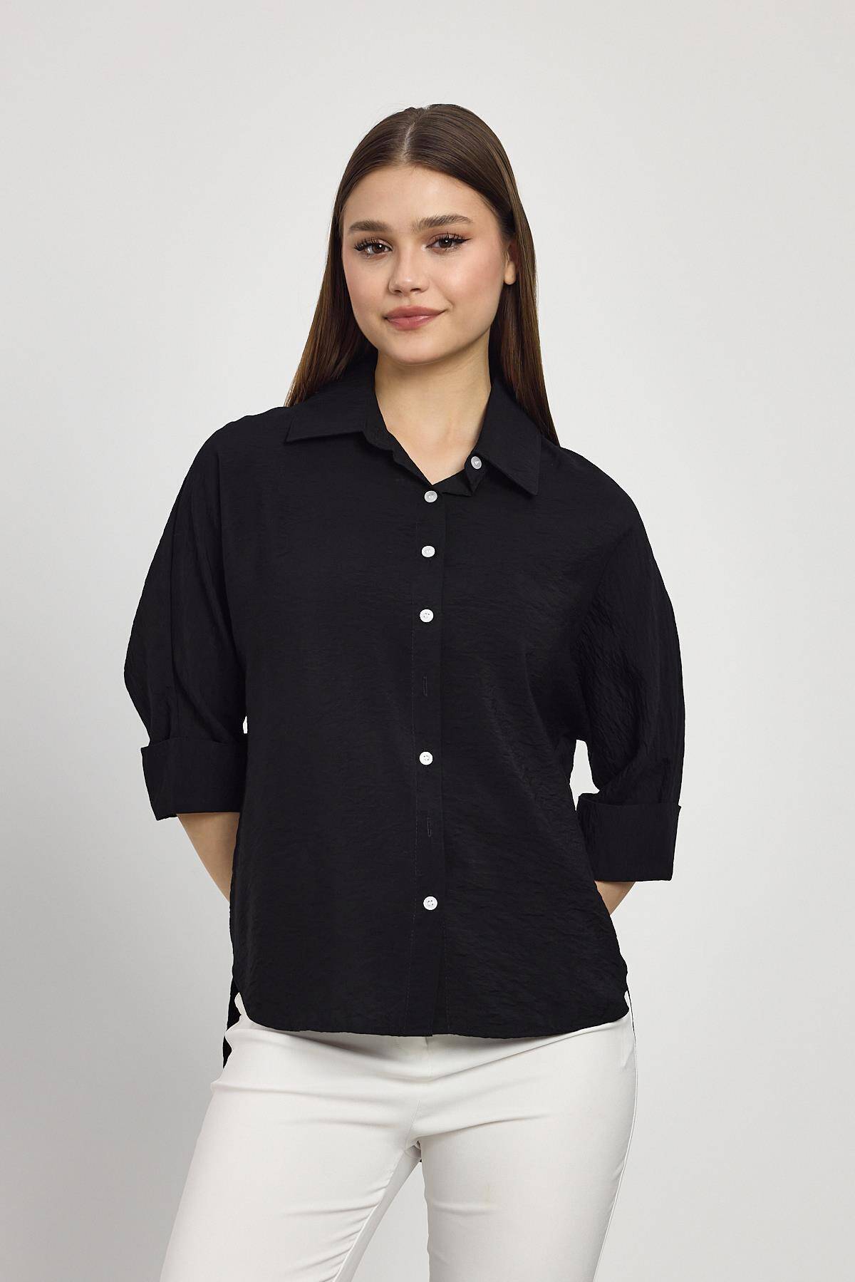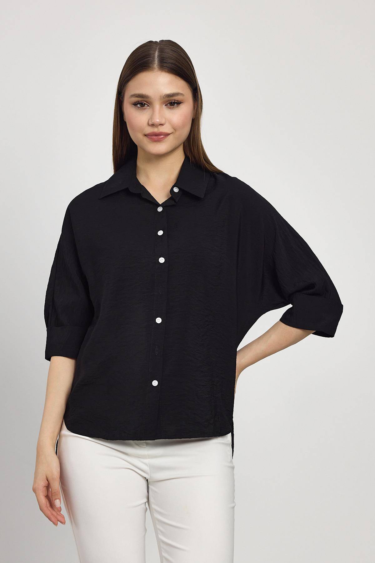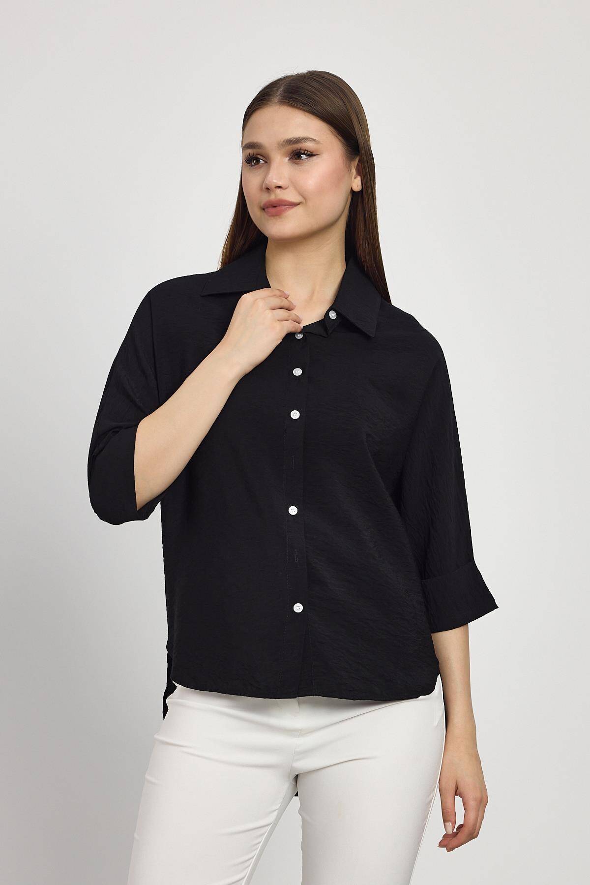 7149A Belden Bağlamalı Uzun Kaşe Kaban Siyah