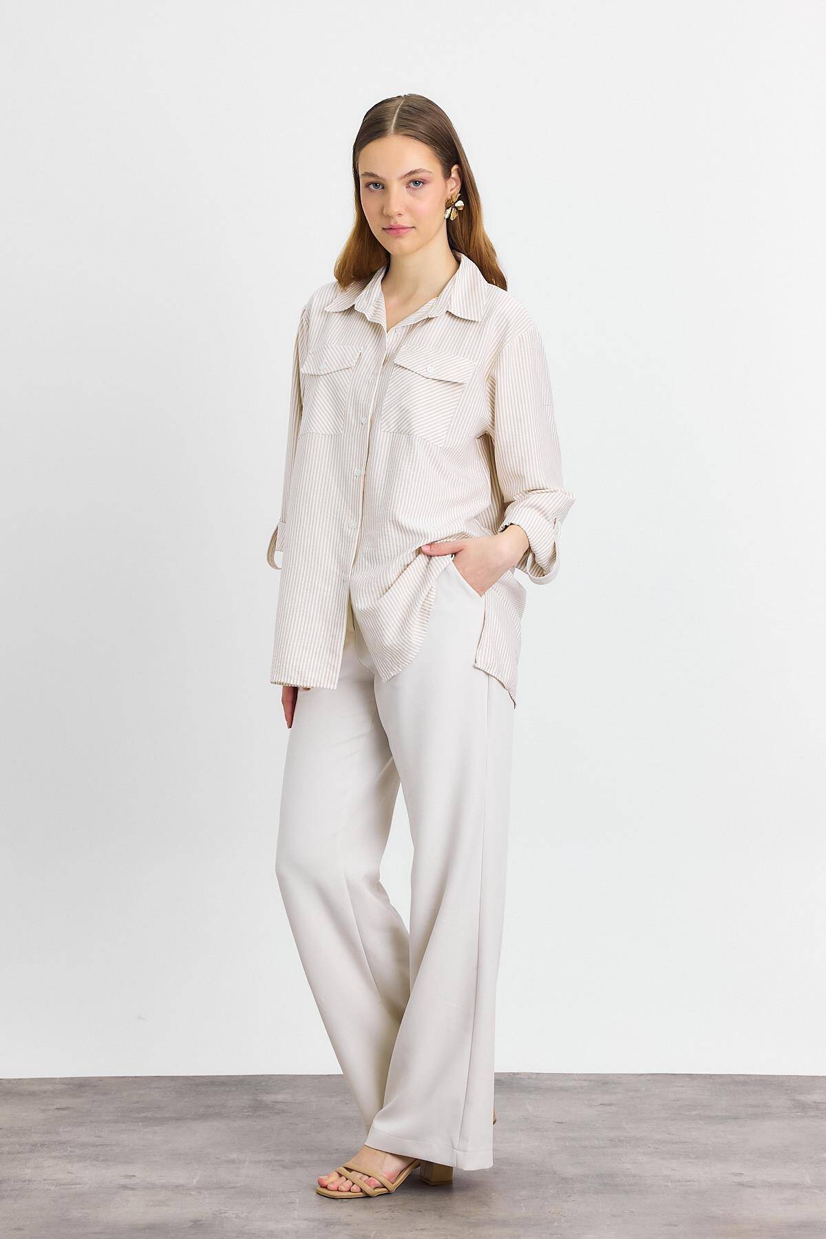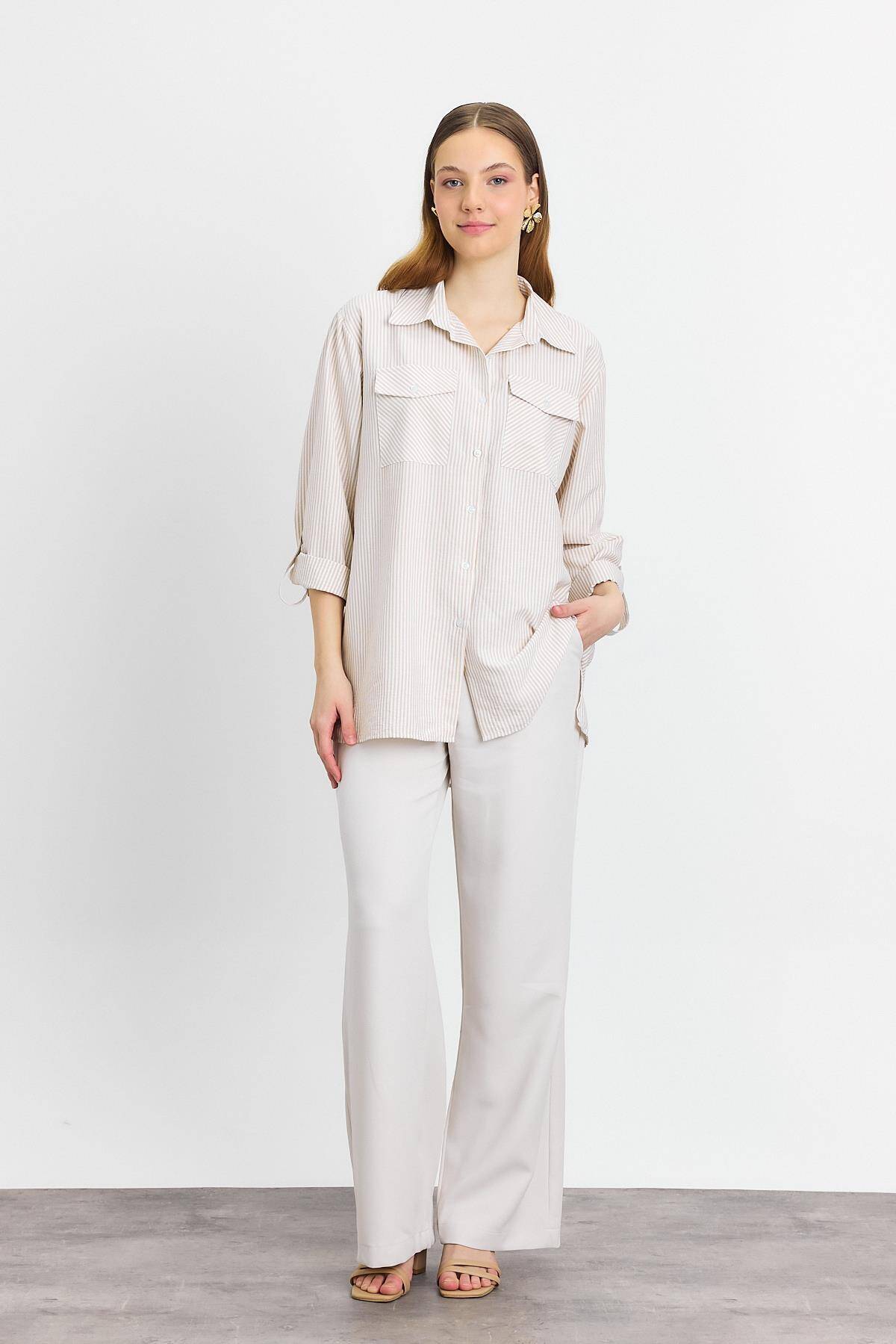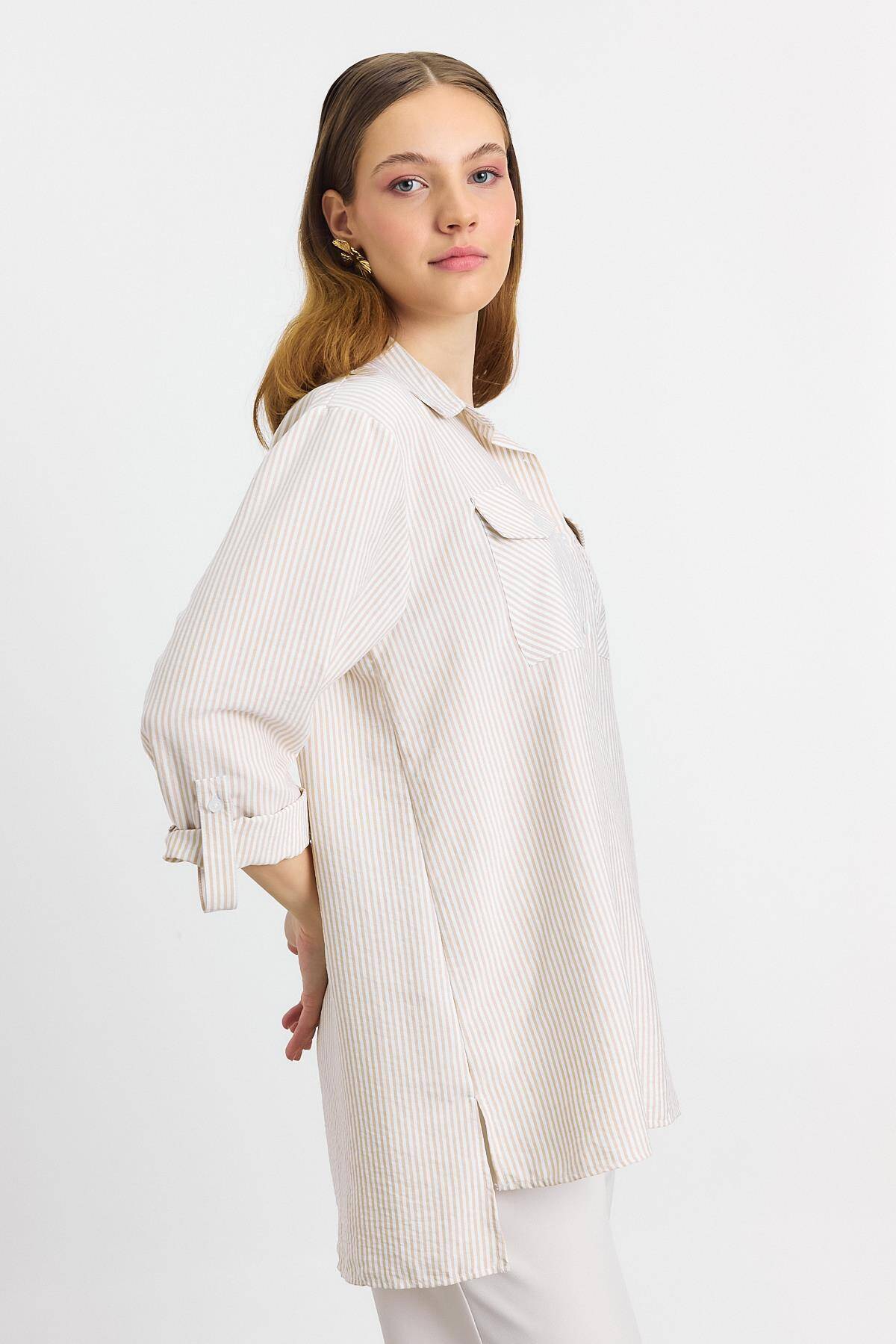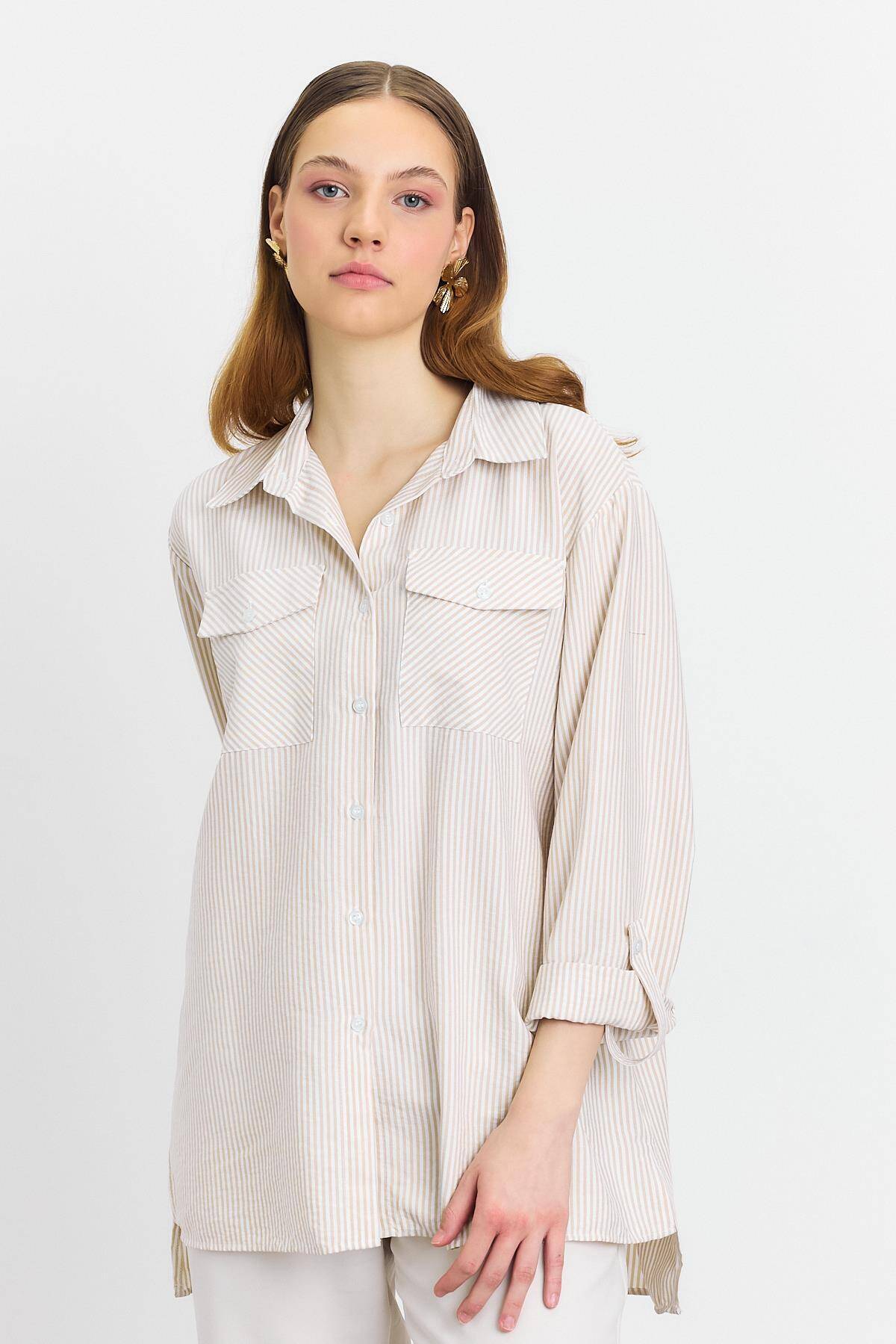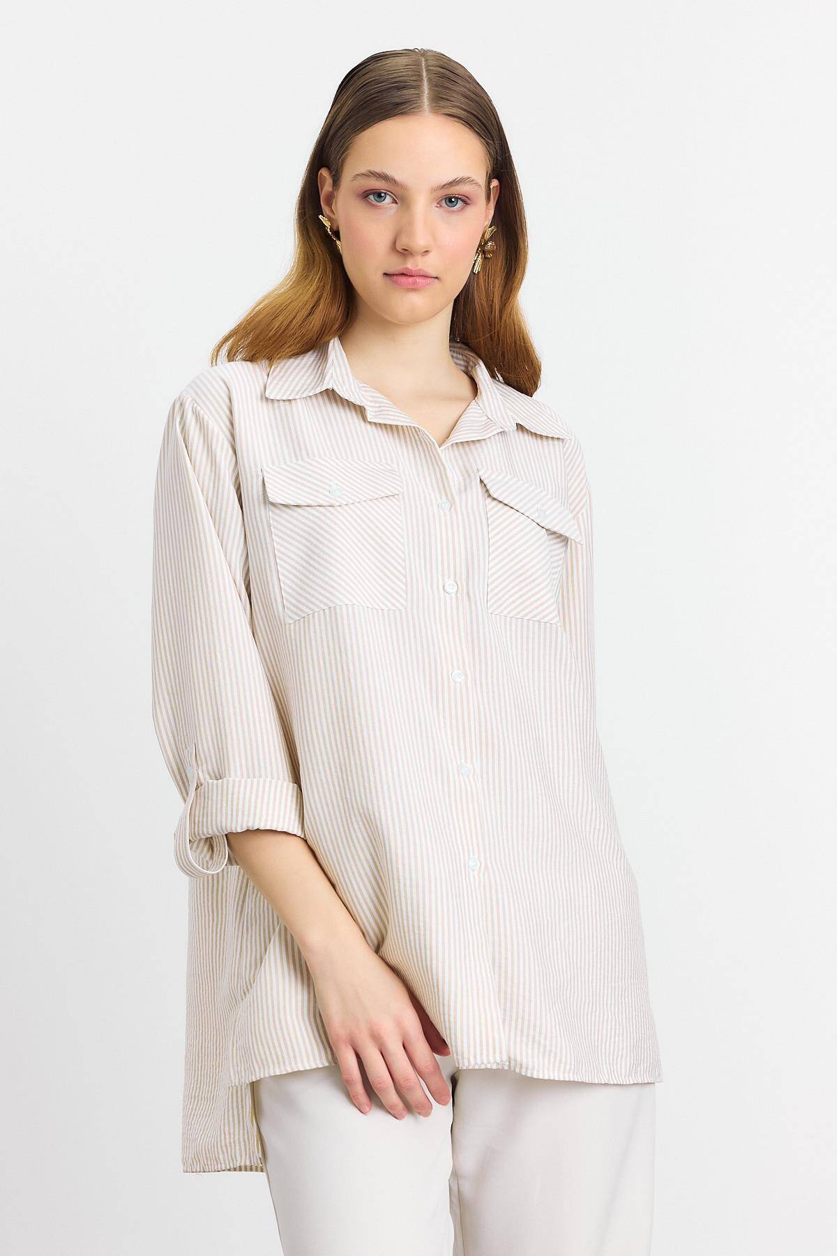 Bej Kapüşonlu Cepli Fermuarlı Kap 4572A