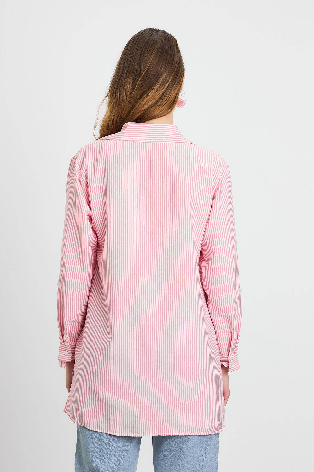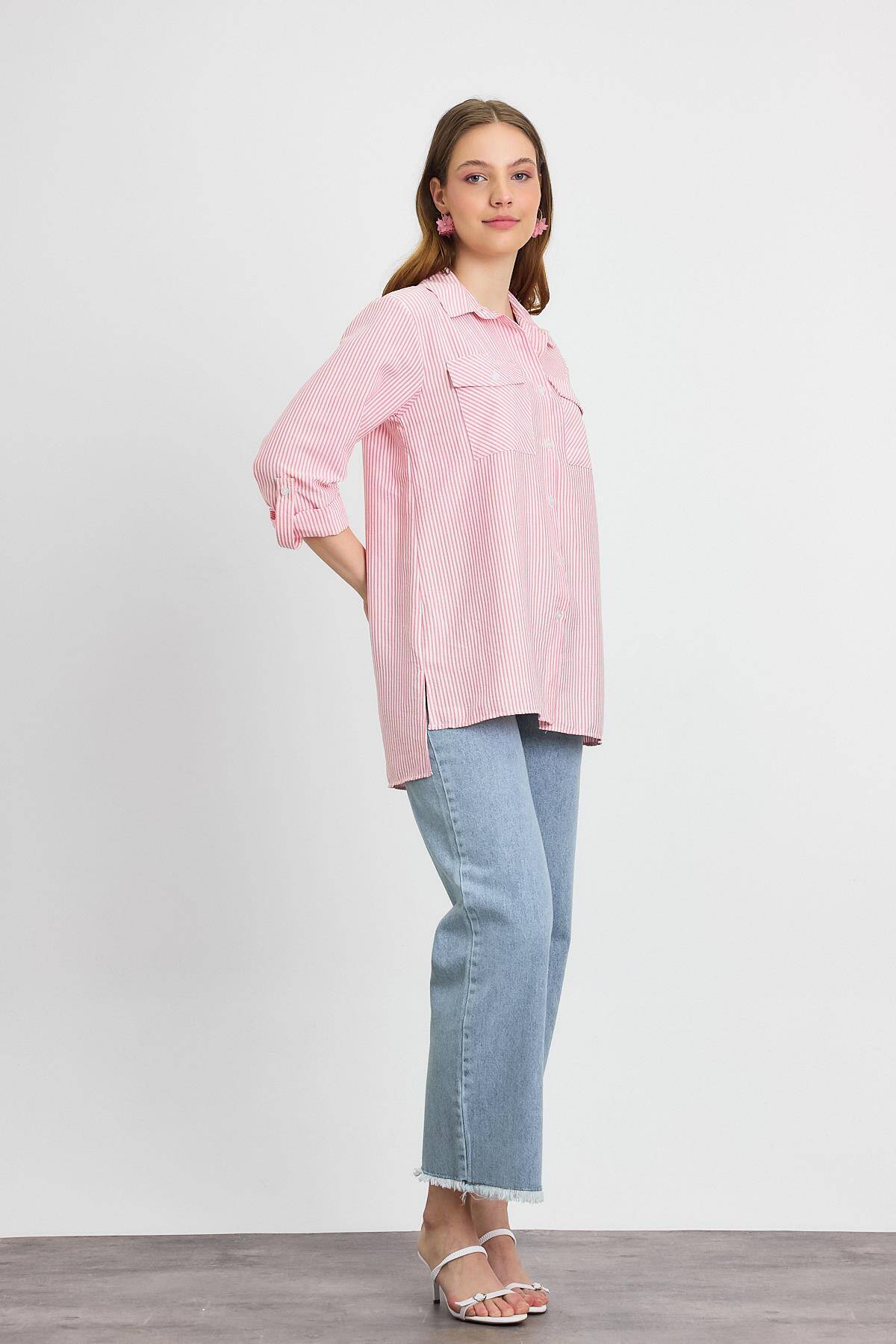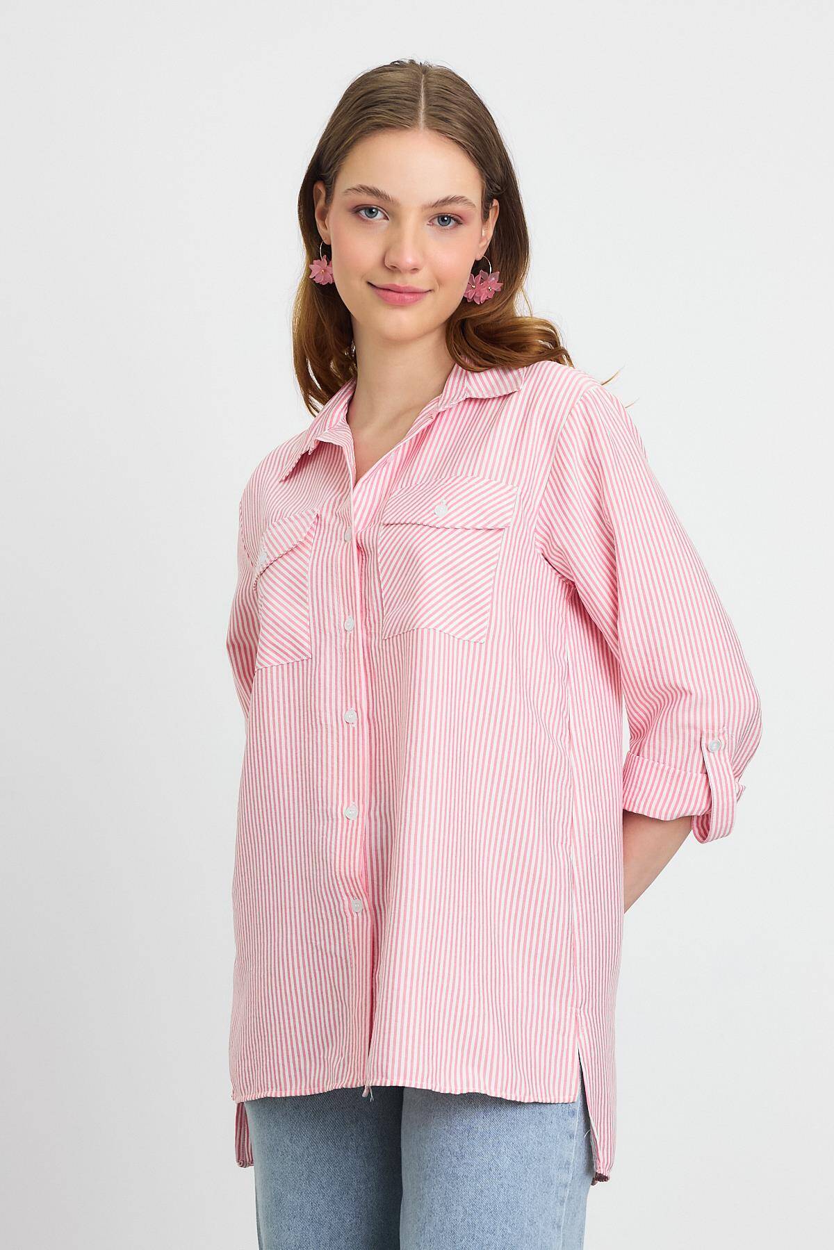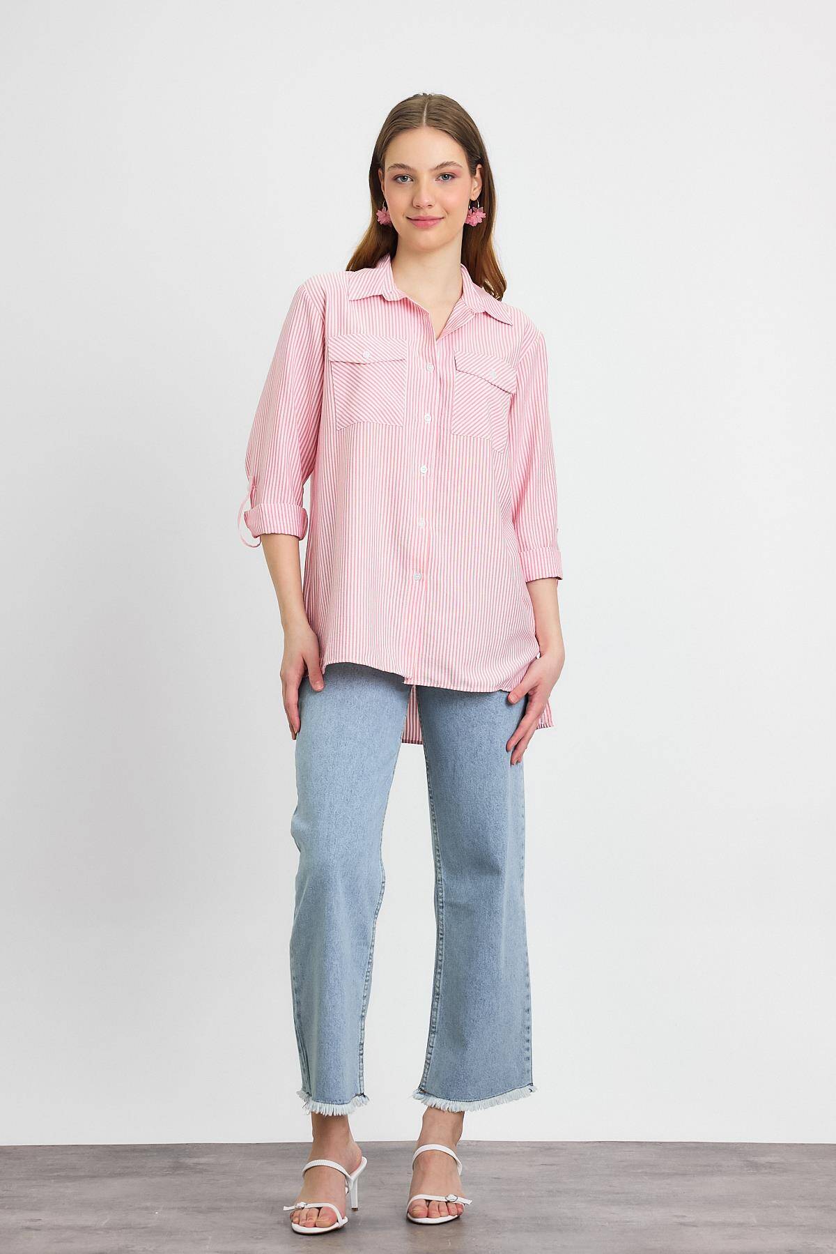 4362A Çizgili Çift Cepli Gömlek Pembe