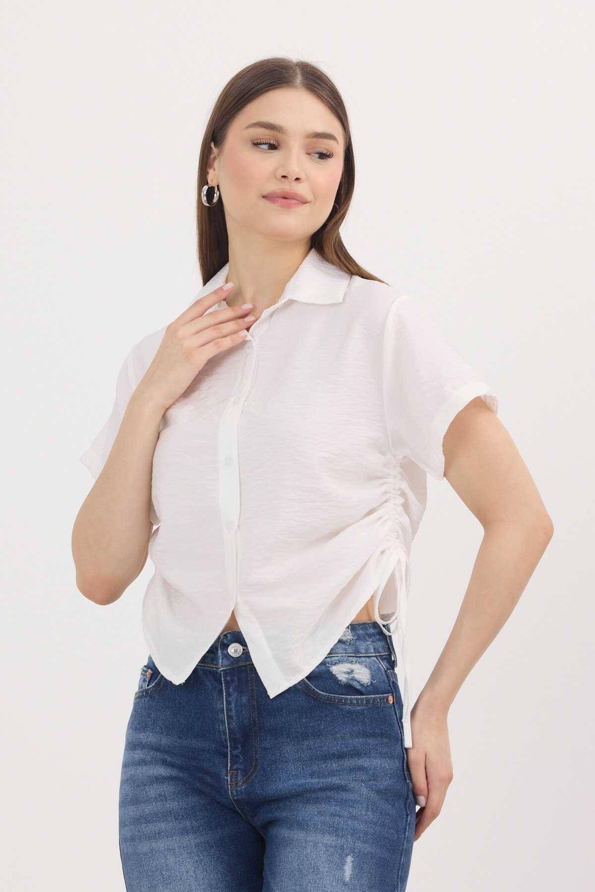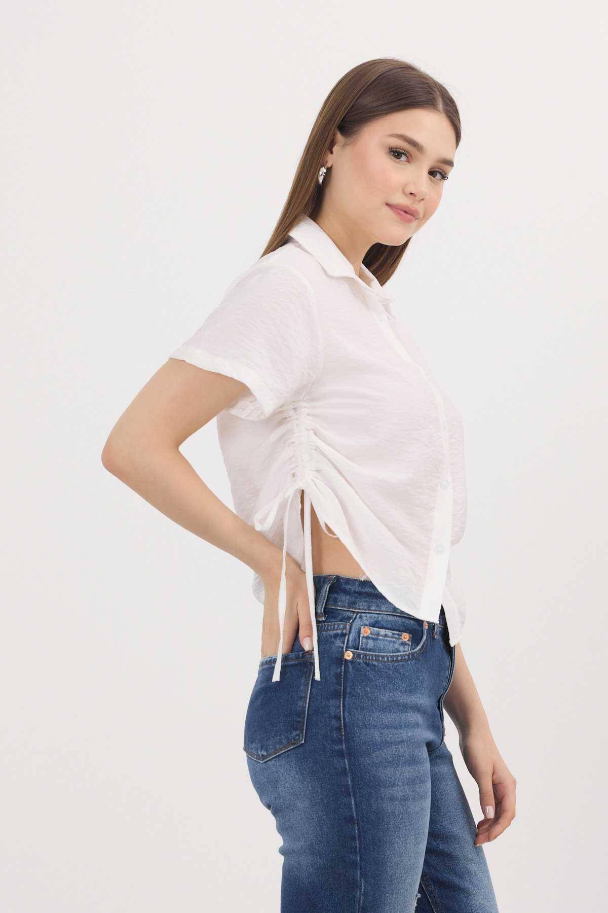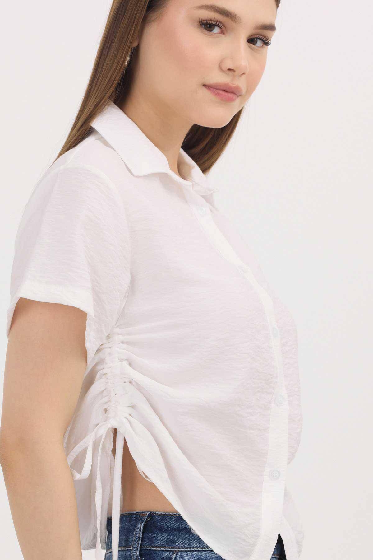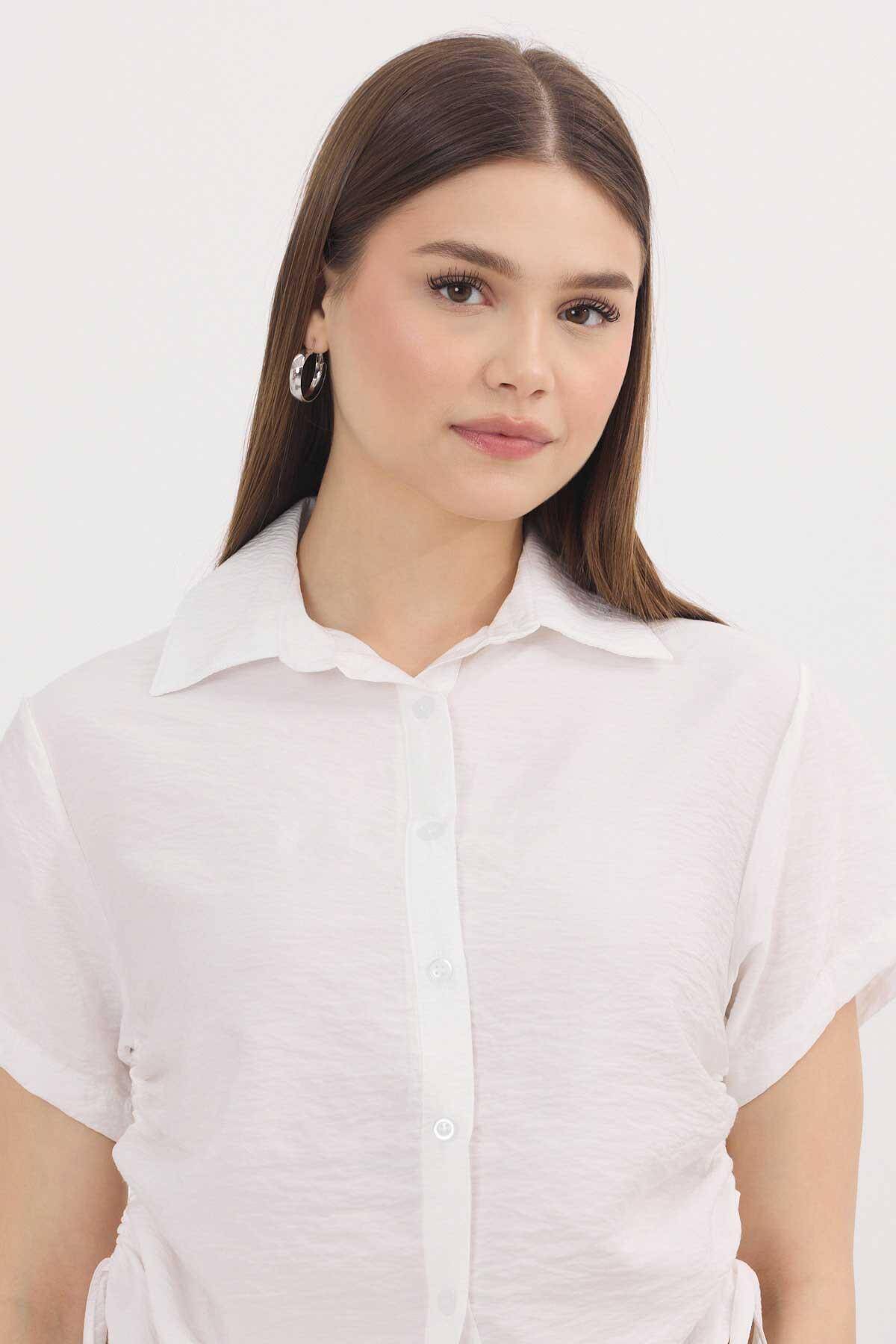 4368A Yanları Büzgülü Kısa Gömlek Beyaz