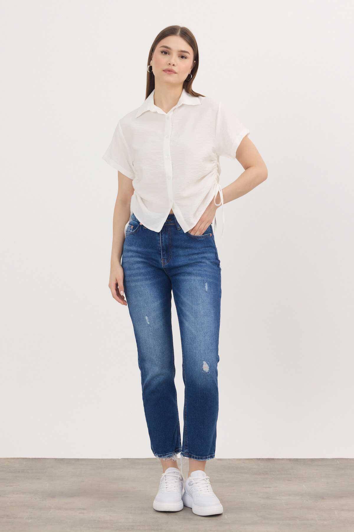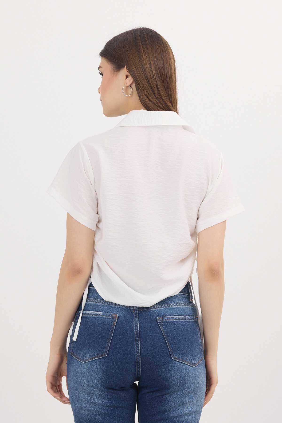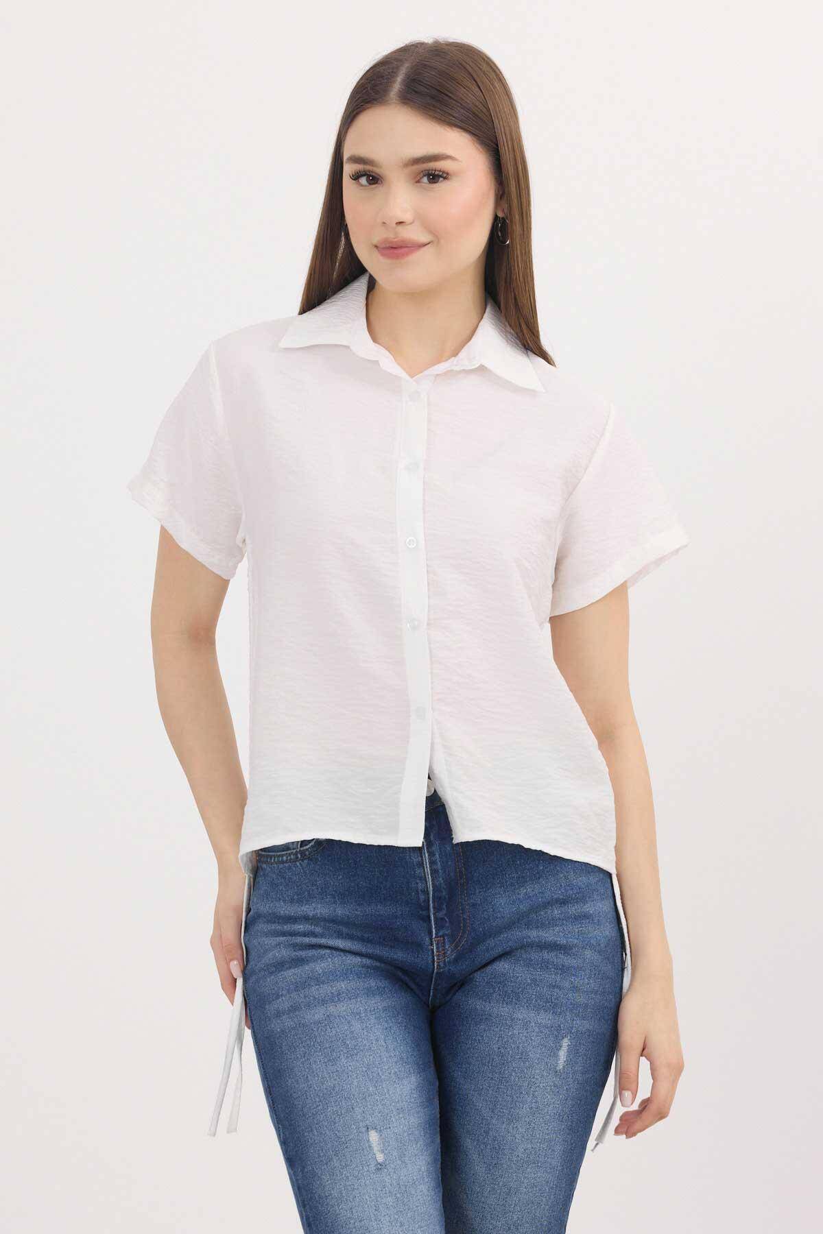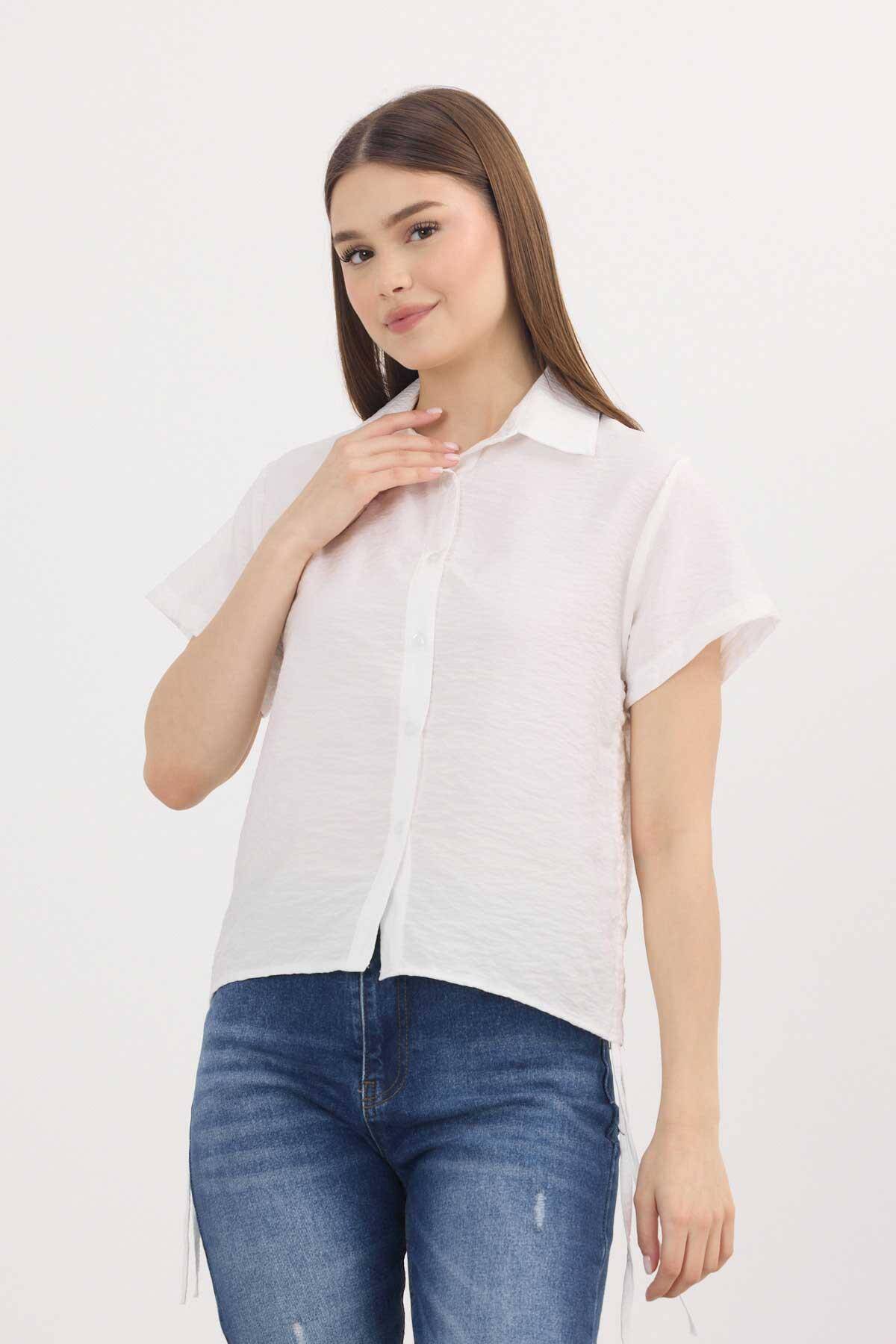 4368A Yanları Büzgülü Kısa Gömlek Beyaz