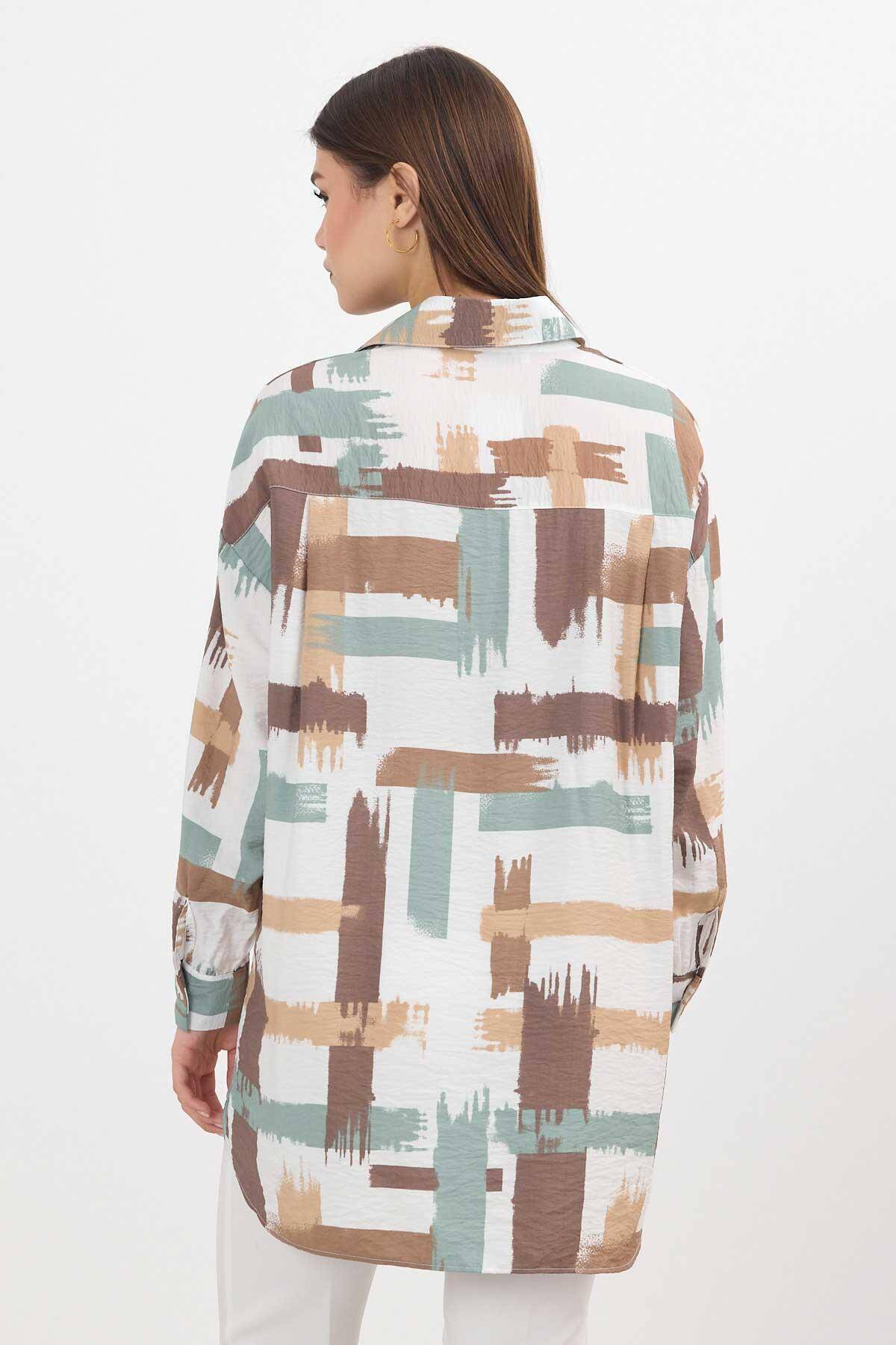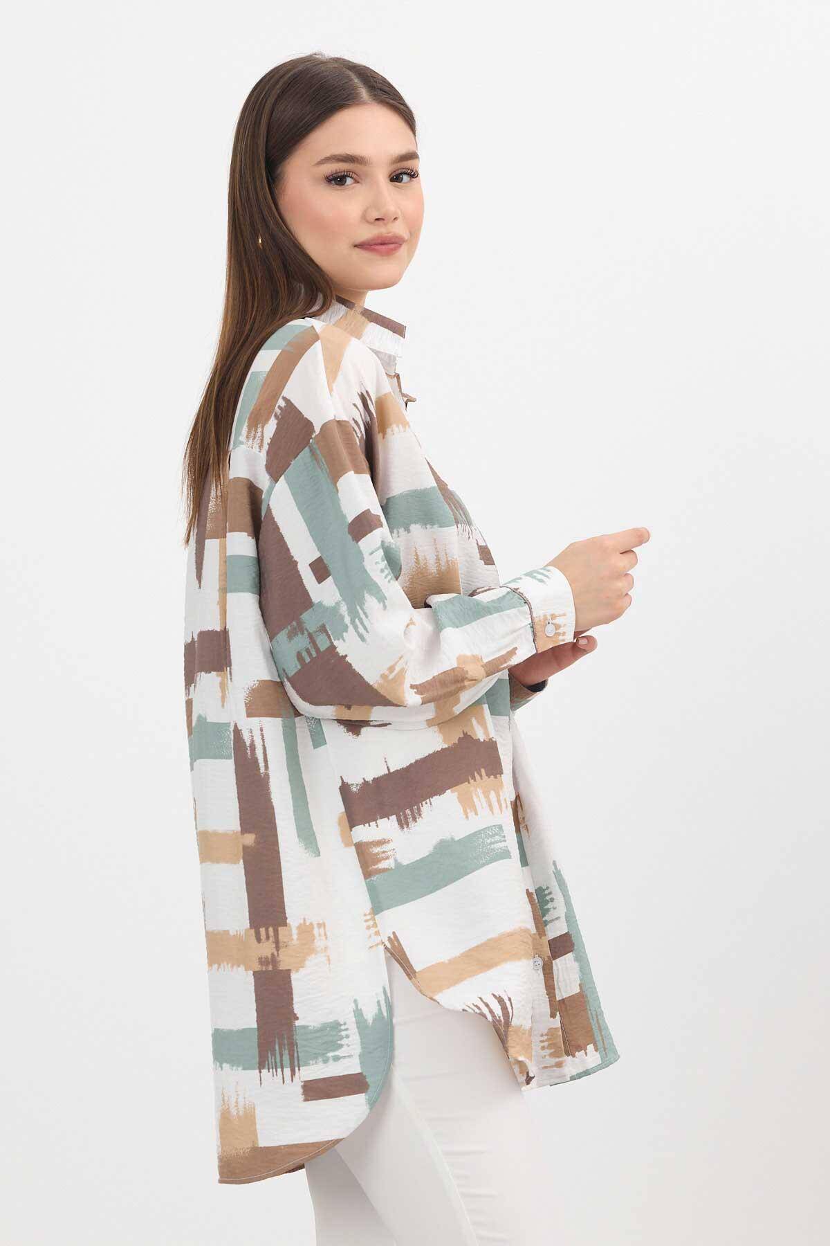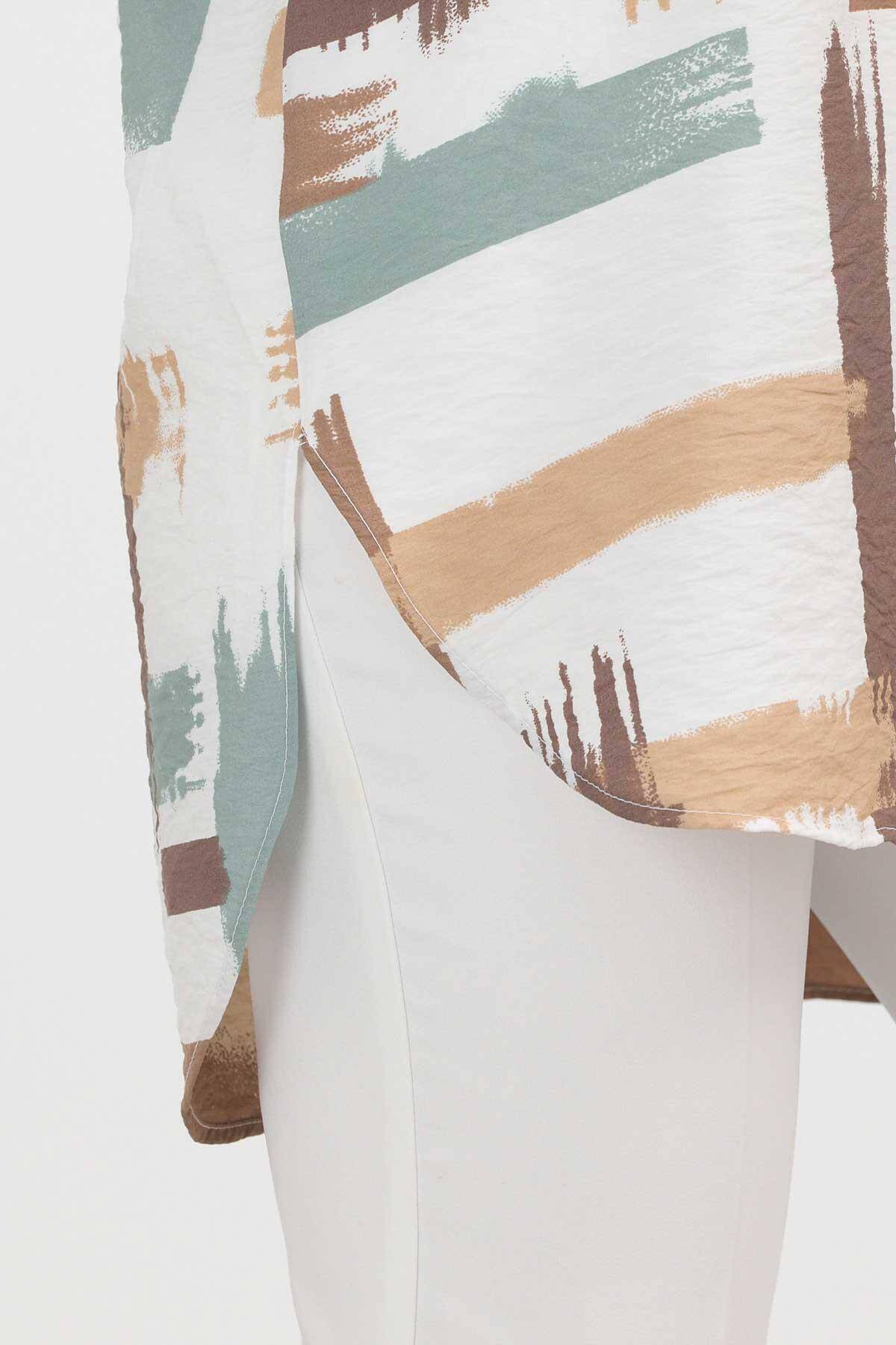 Beyaz Deri Kemer Detaylı Etnik Desenli Kimono 4363A