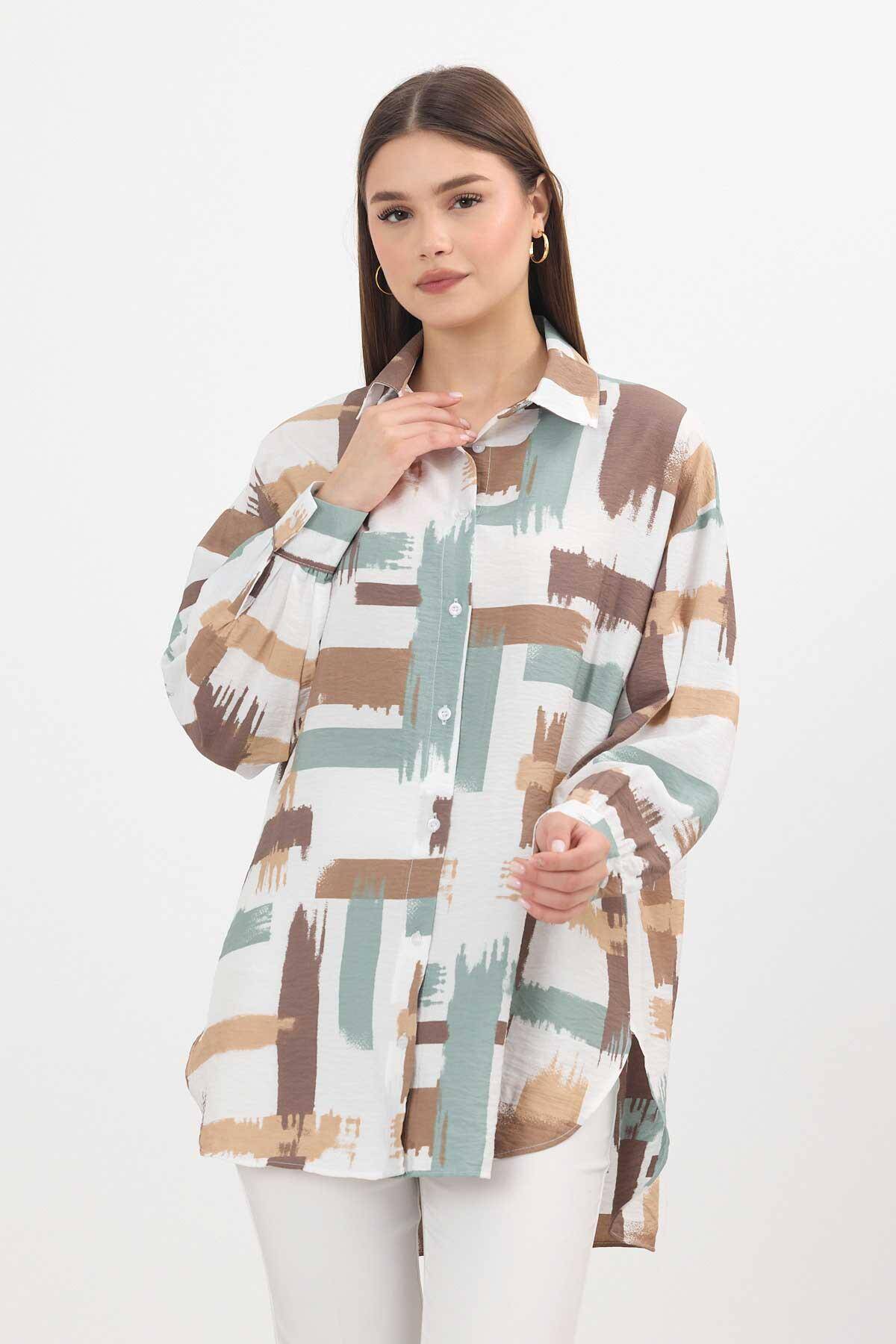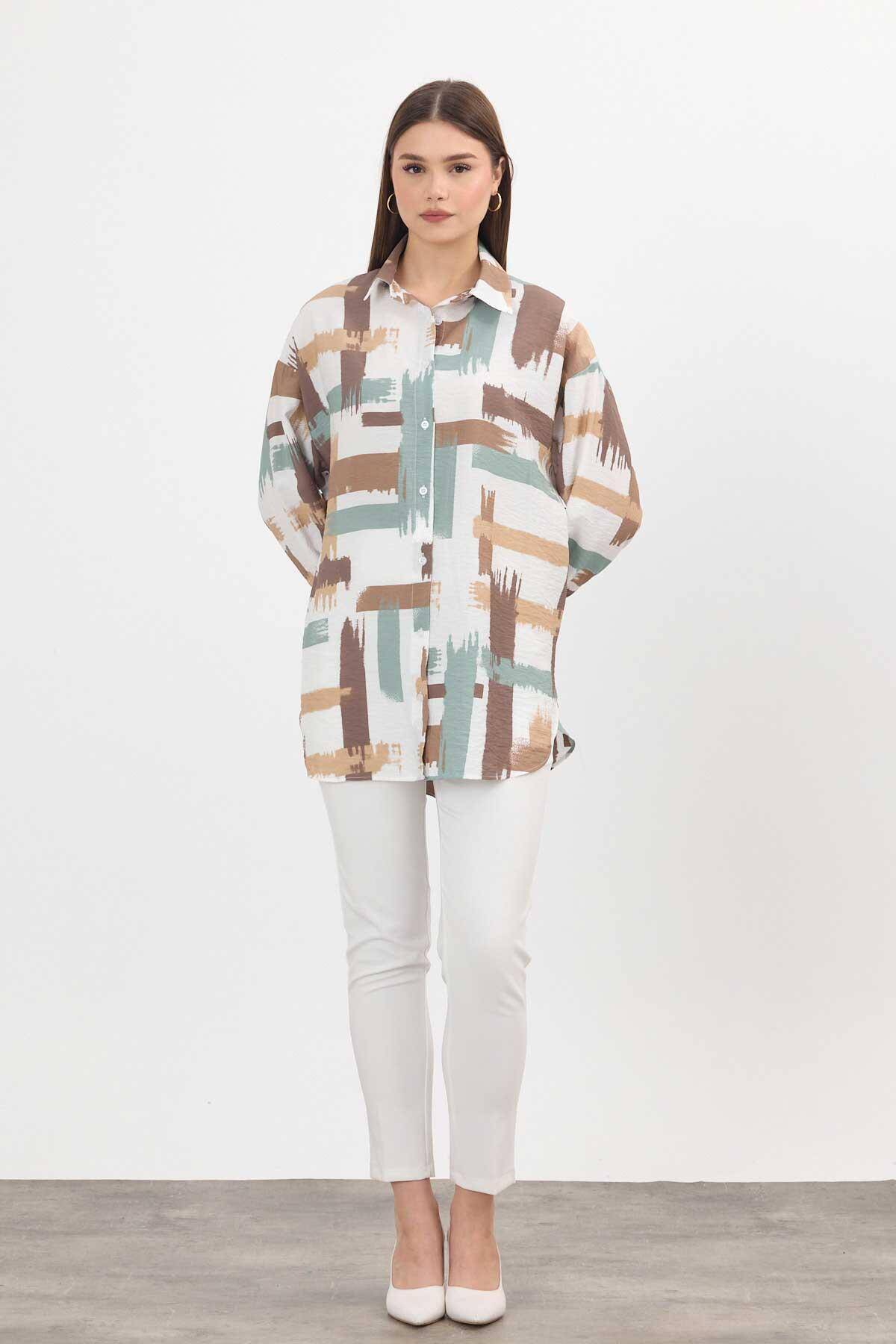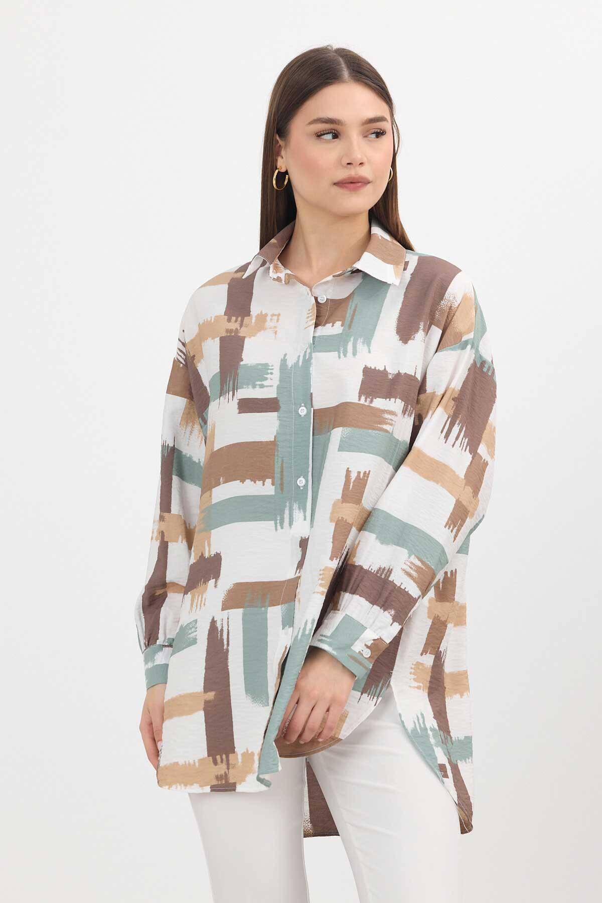Beyaz Deri Kemer Detaylı Etnik Desenli Kimono 4363A