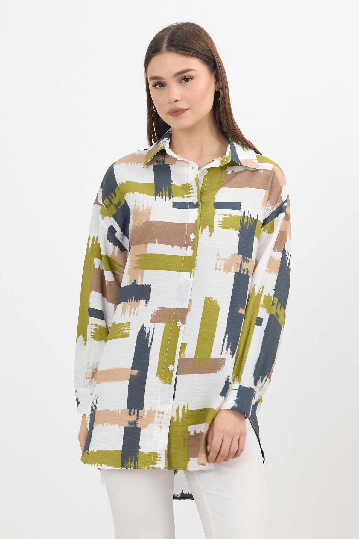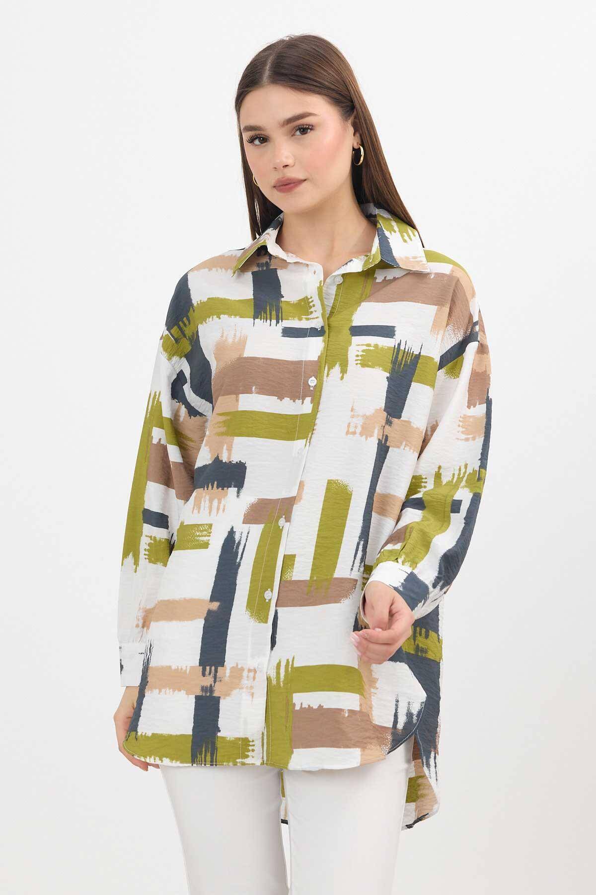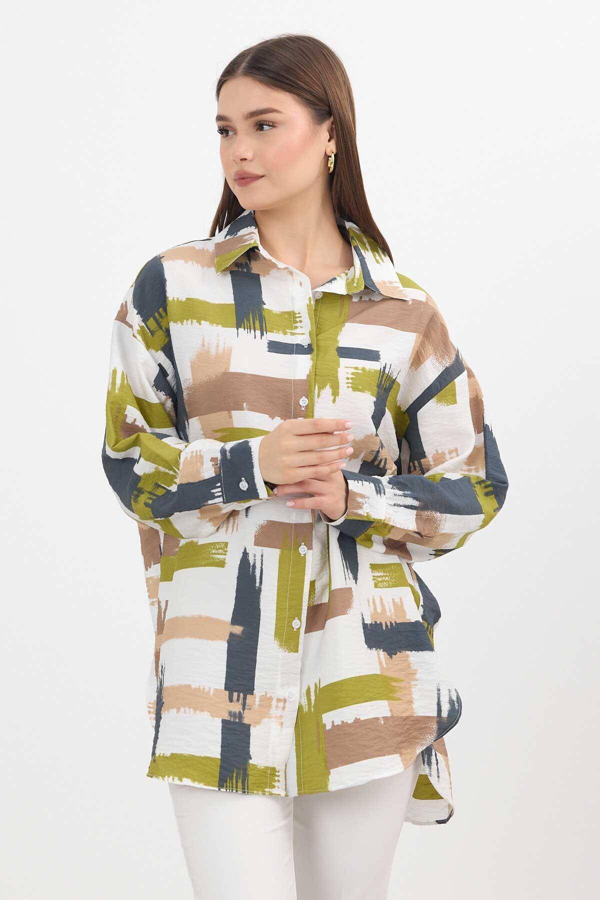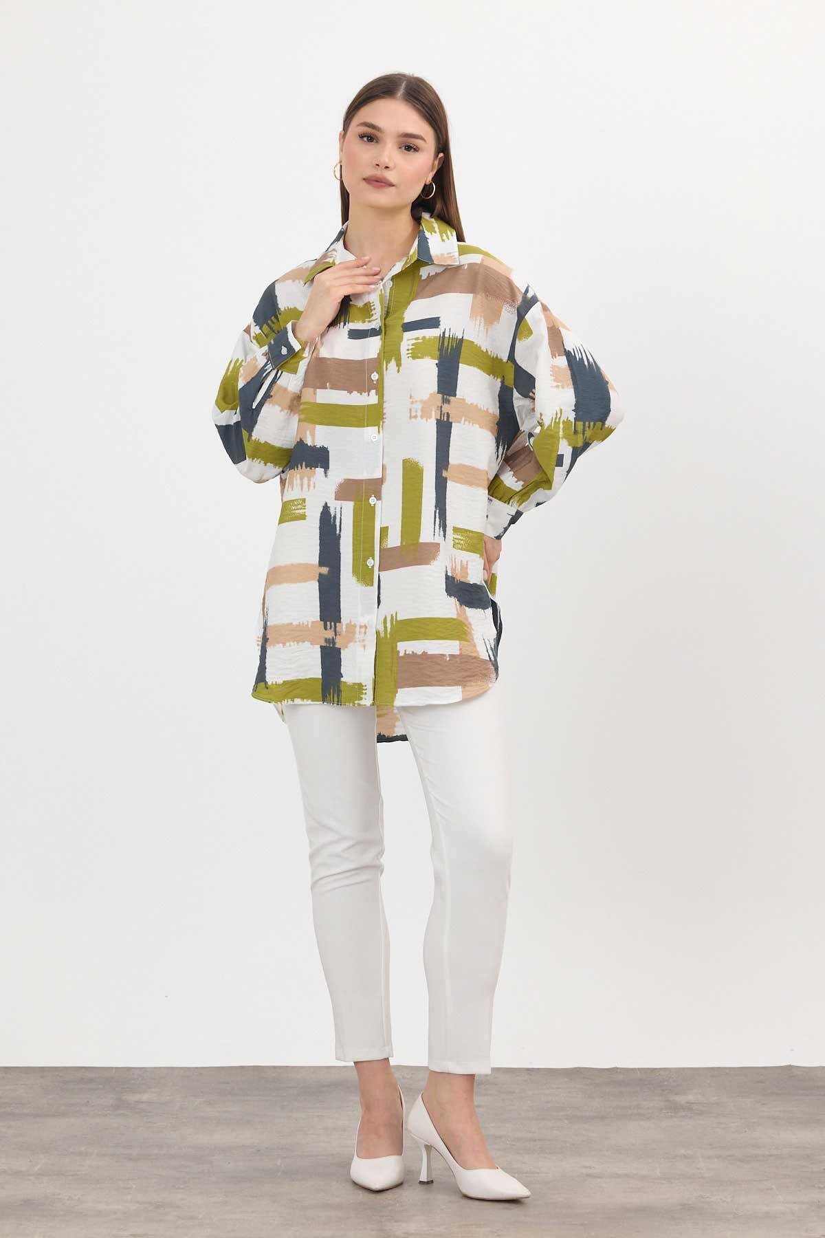 4369A Desenli Uzun Gömlek Olive Yeşili