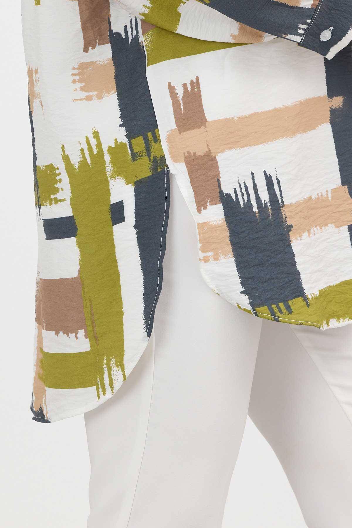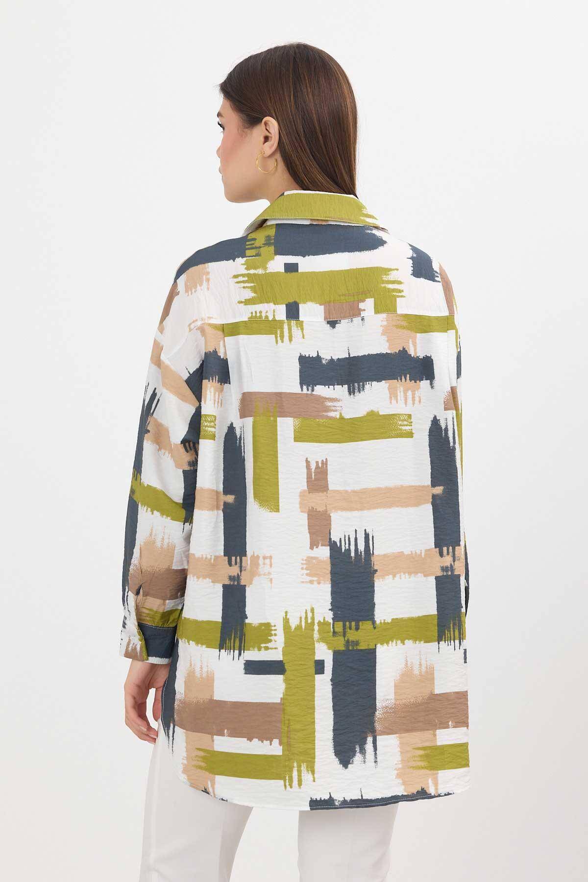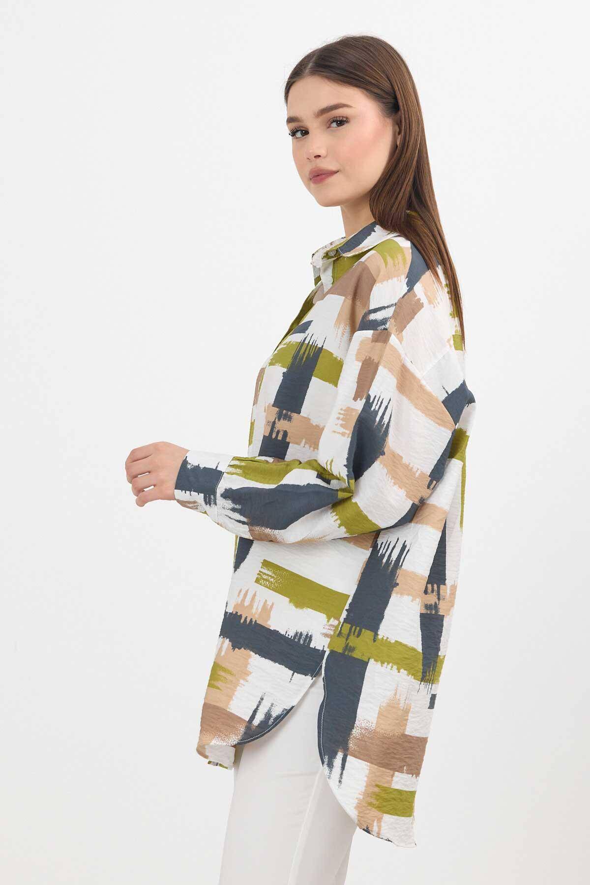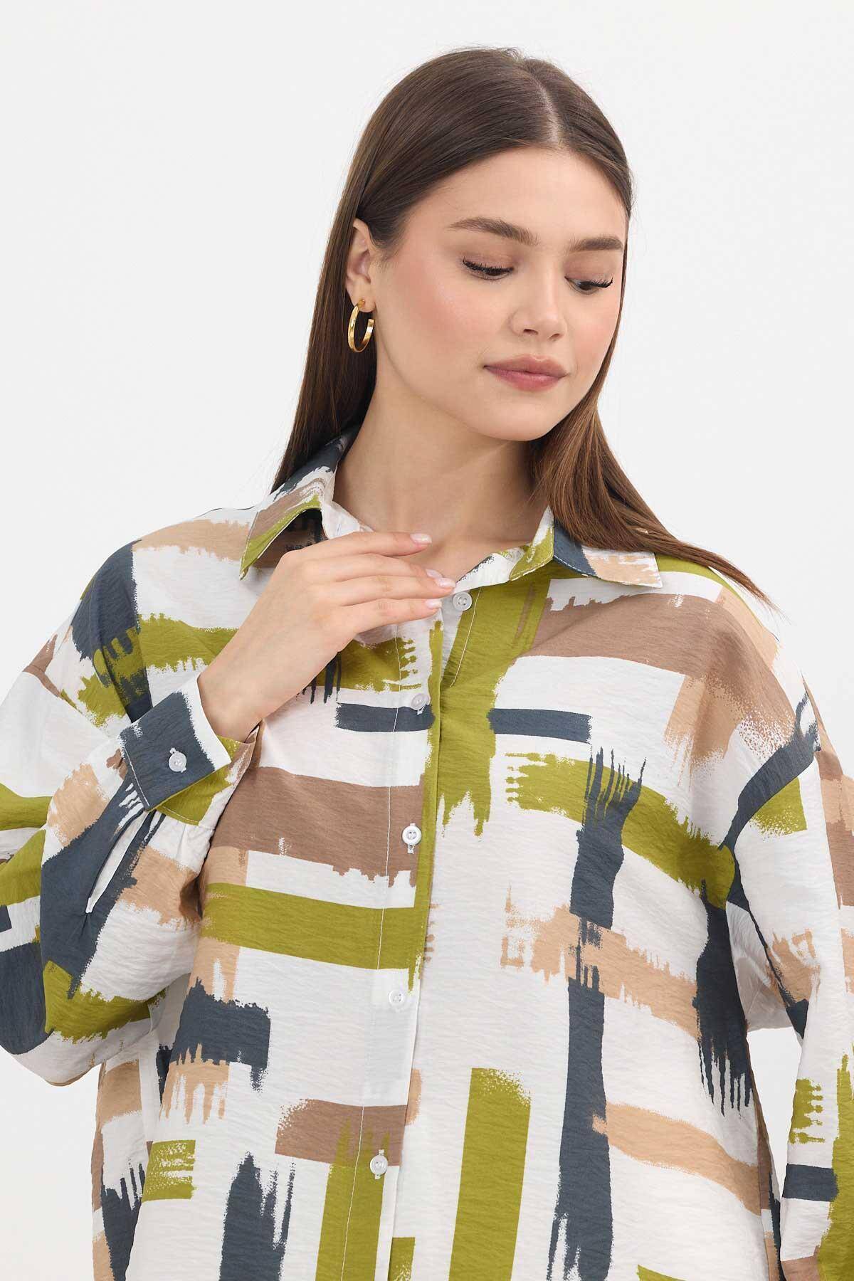 4369A Desenli Uzun Gömlek Olive Yeşili