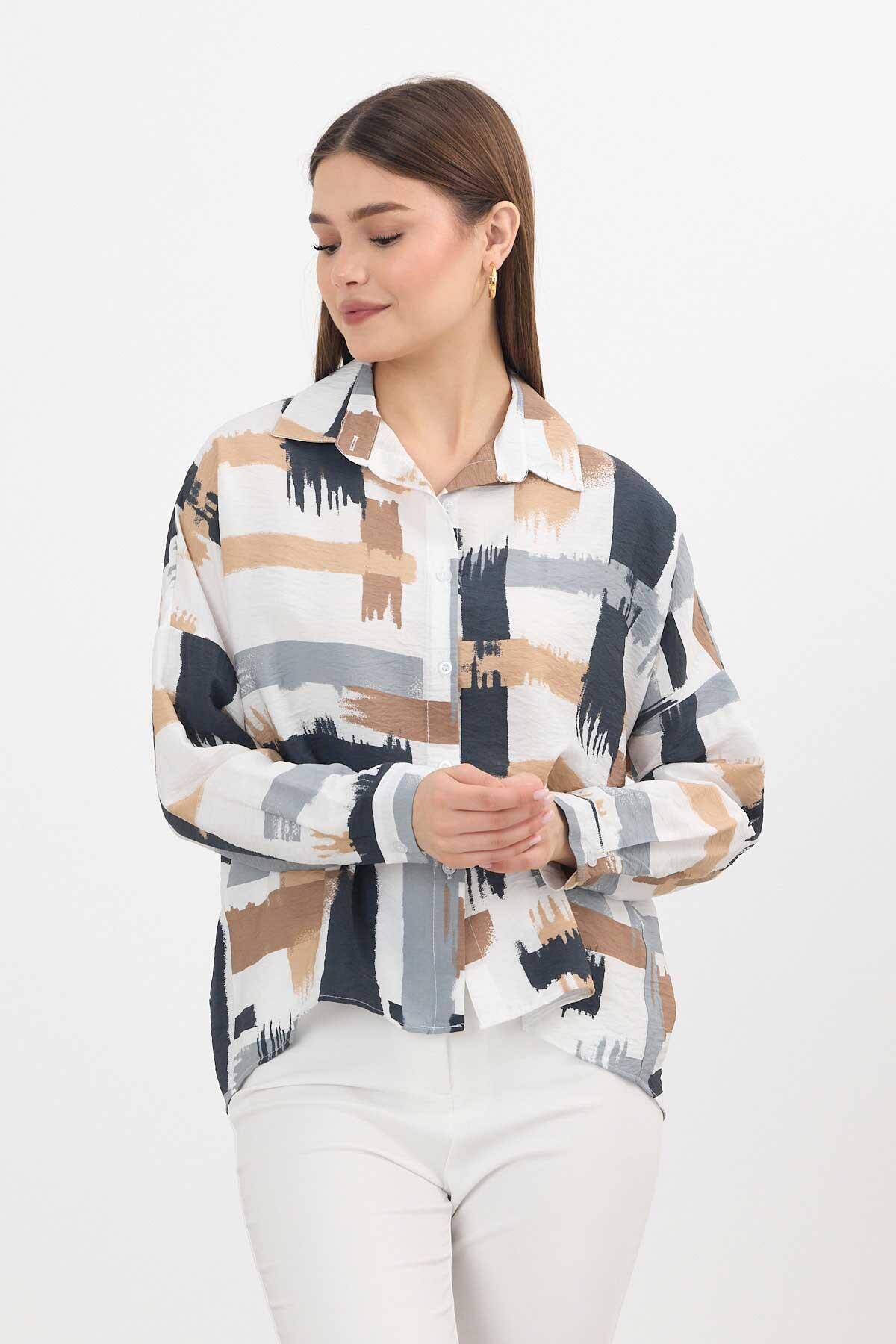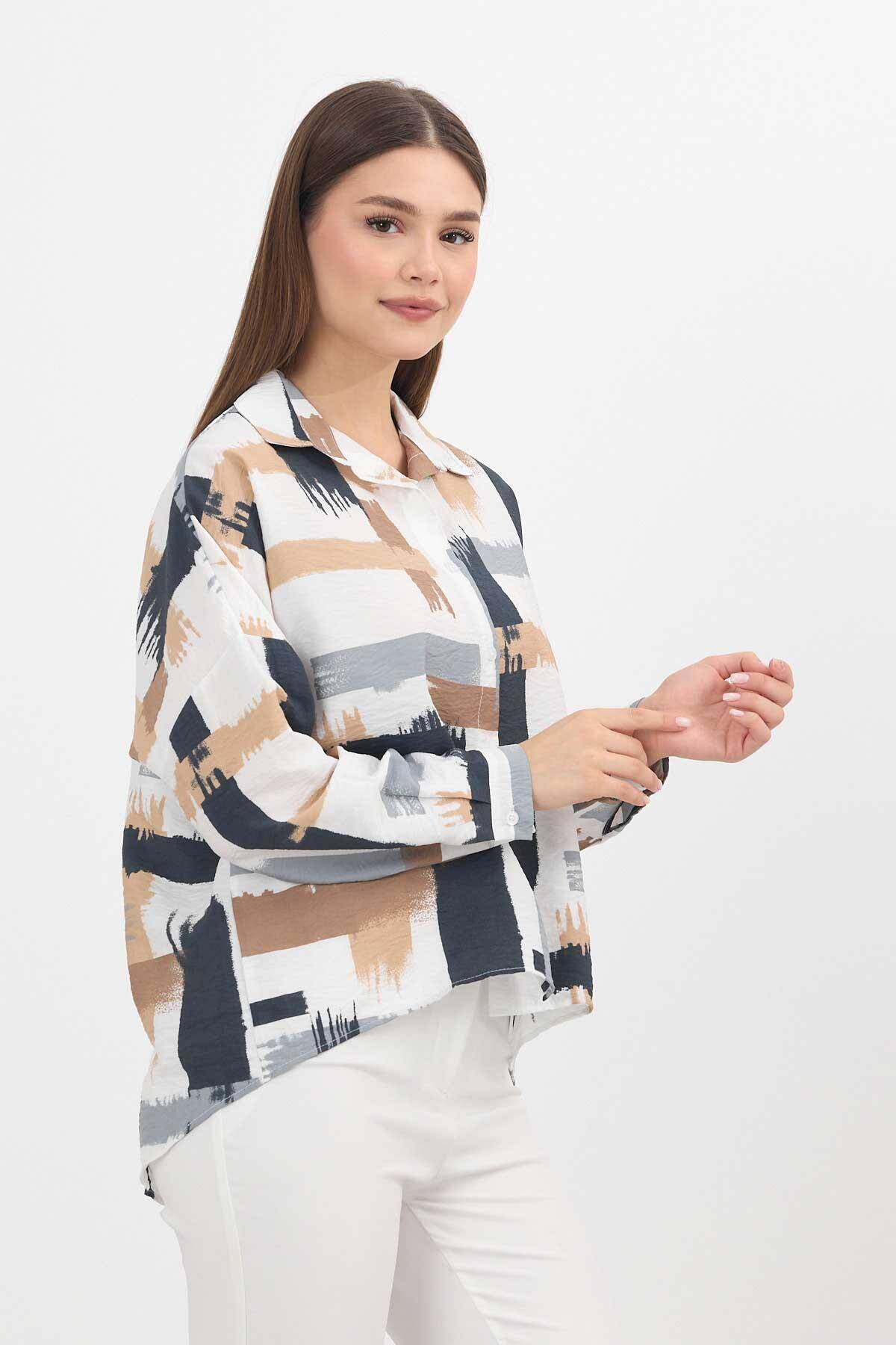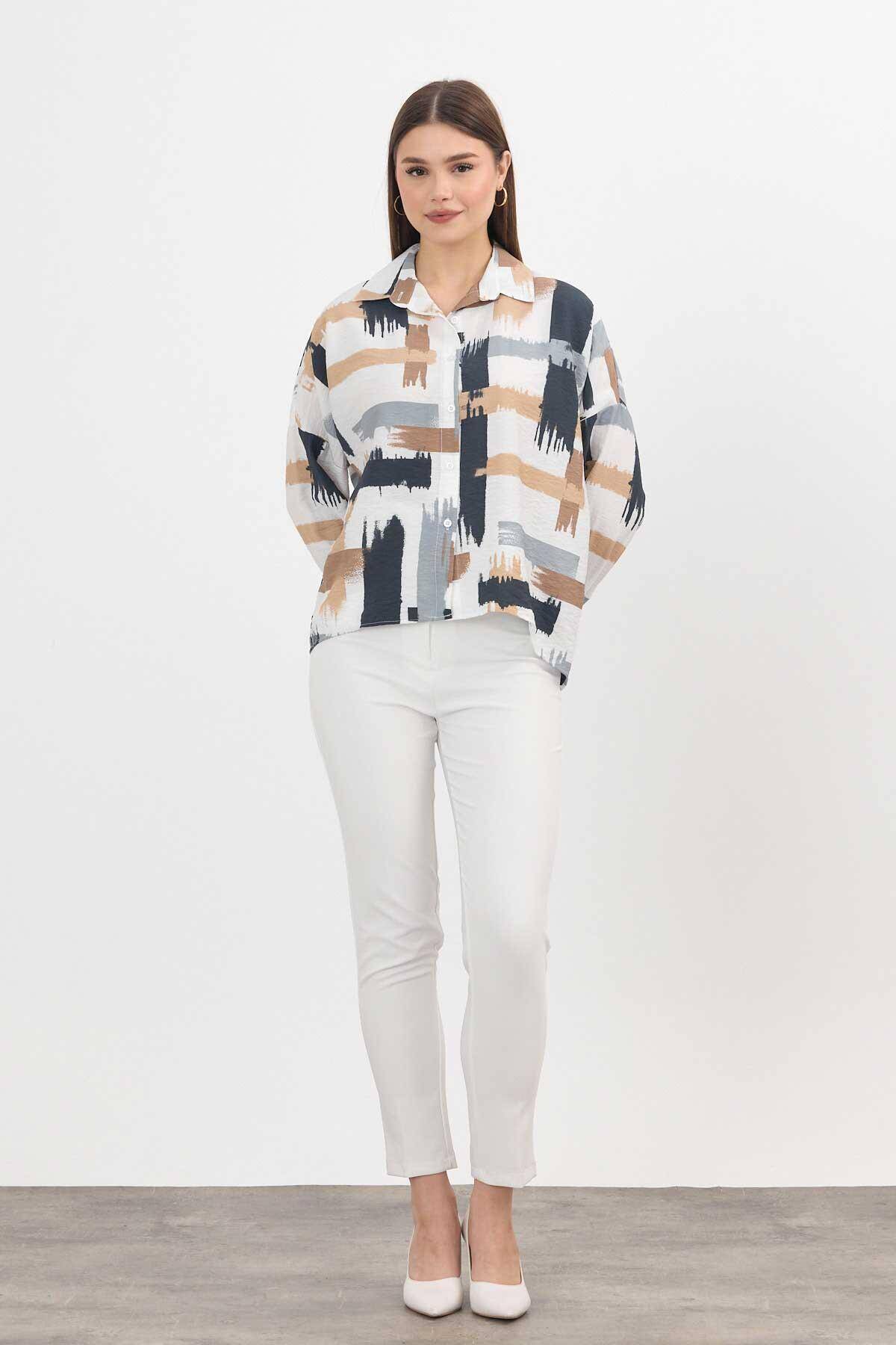 Beyaz Deri Kemer Detaylı Etnik Desenli Kimono 4363A