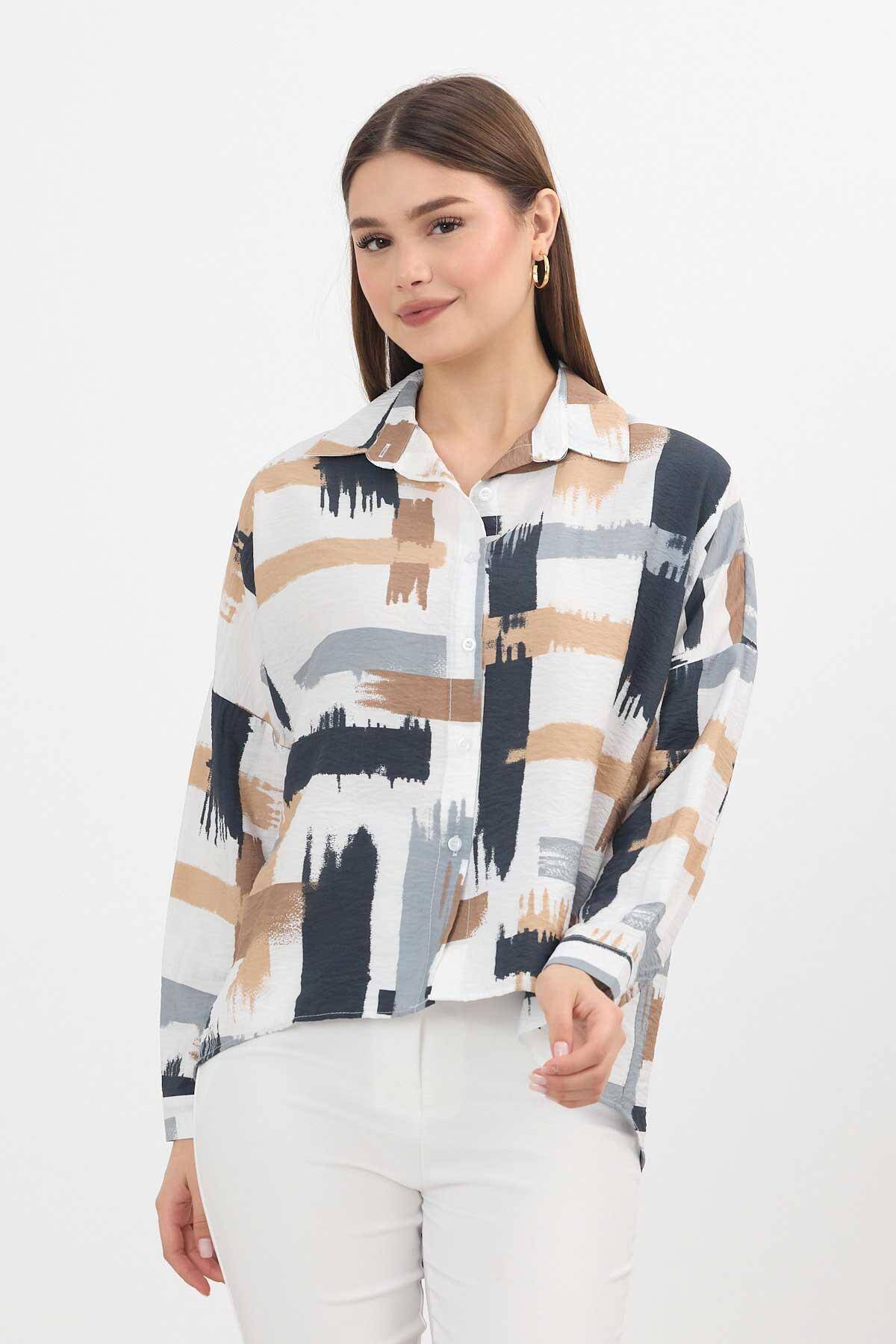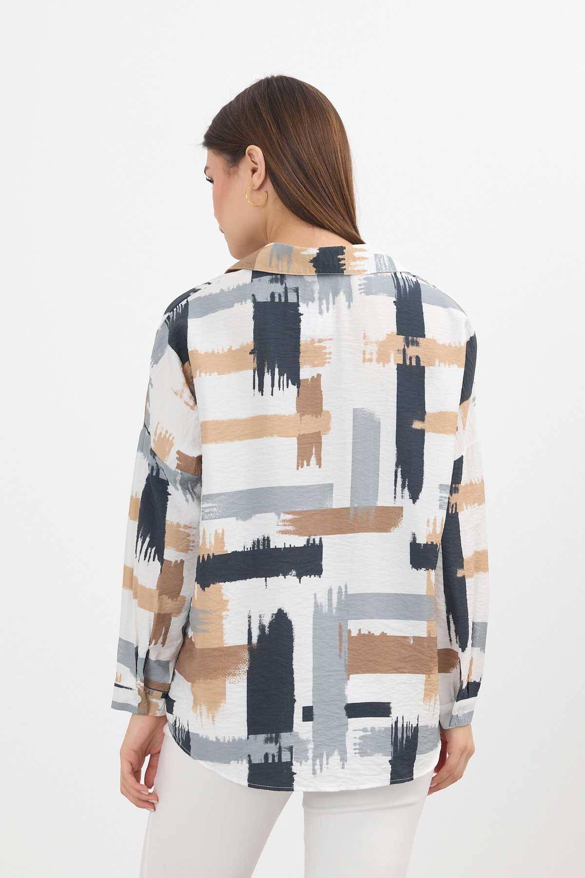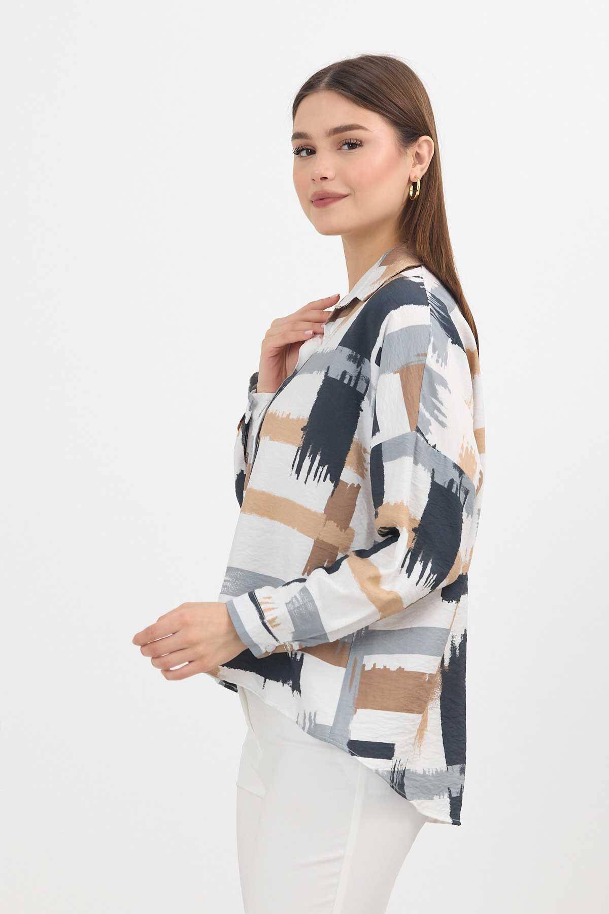 Beyaz Deri Kemer Detaylı Etnik Desenli Kimono 4363A