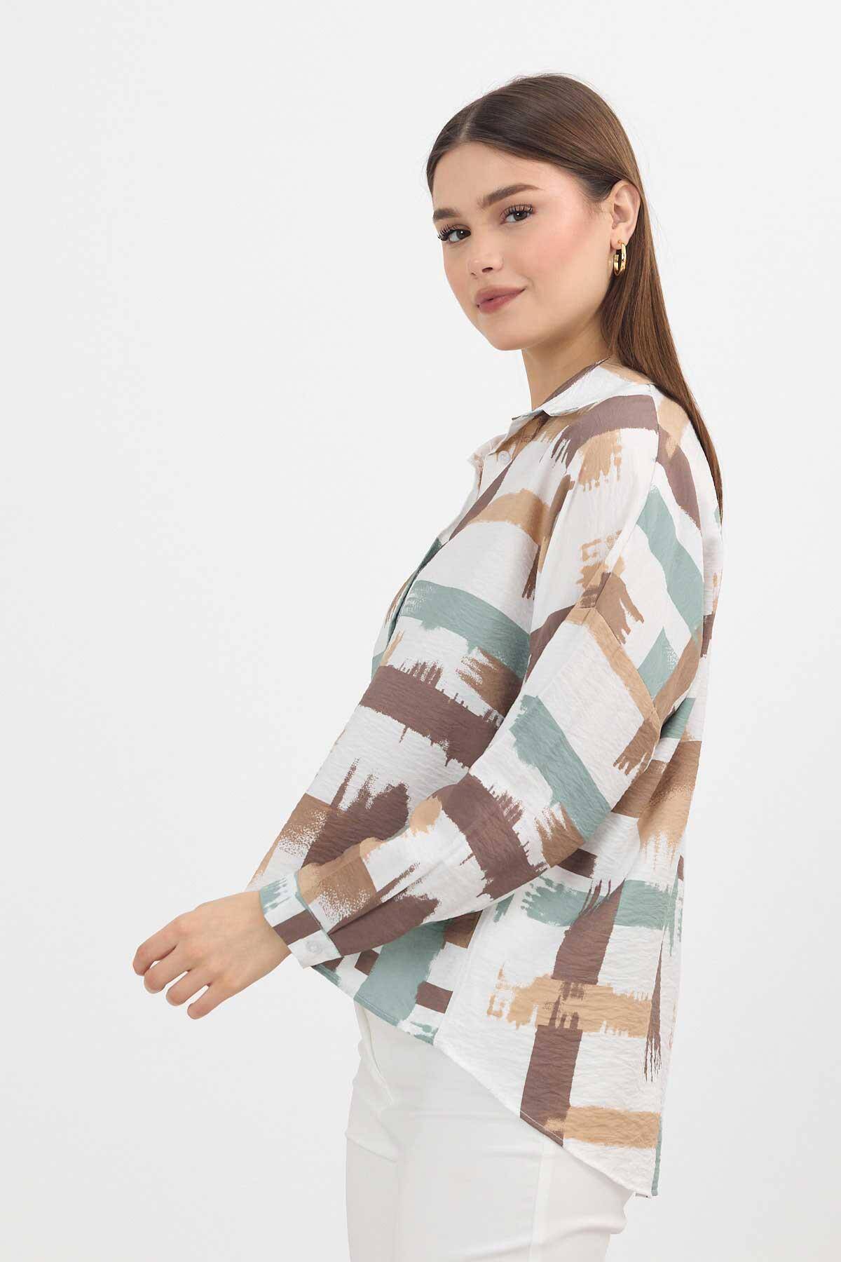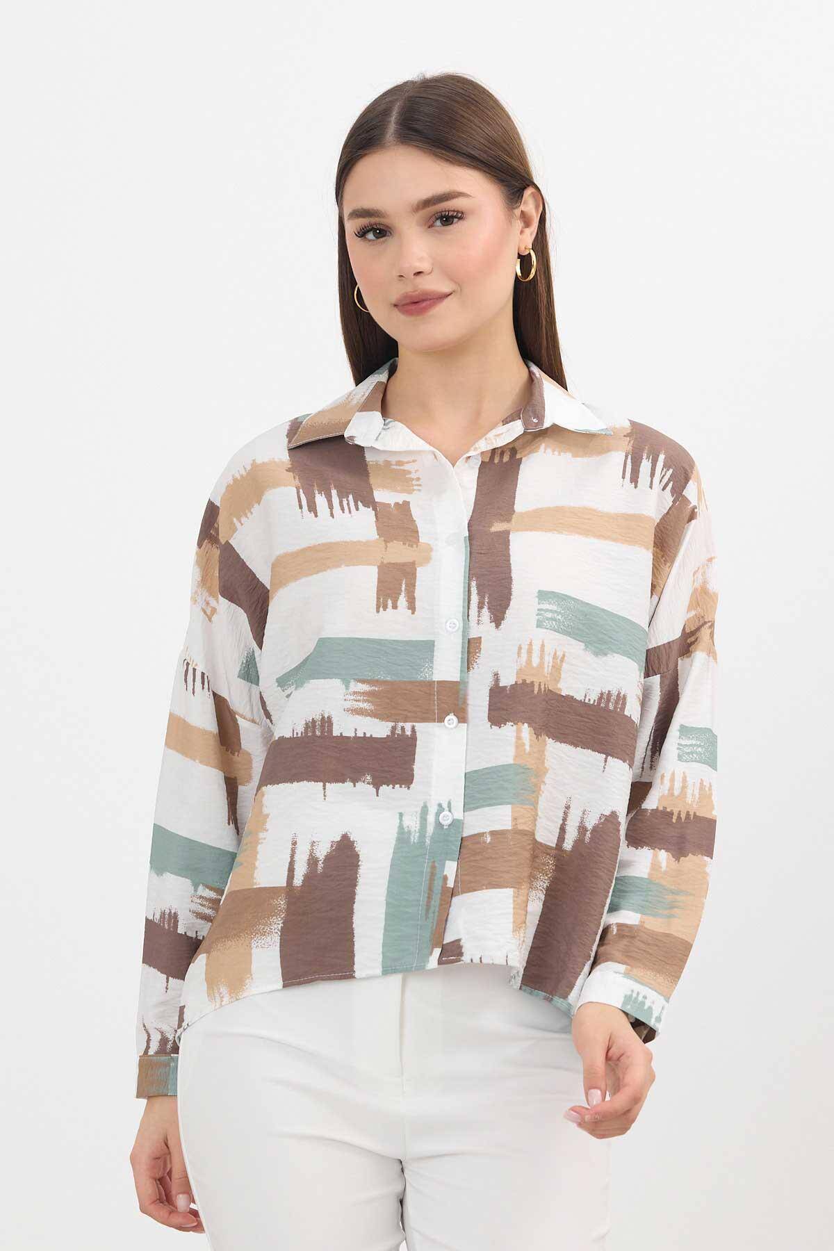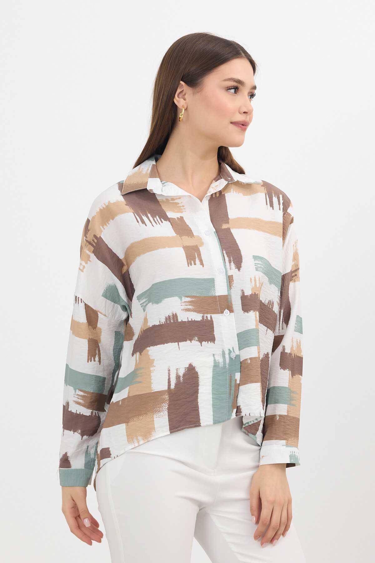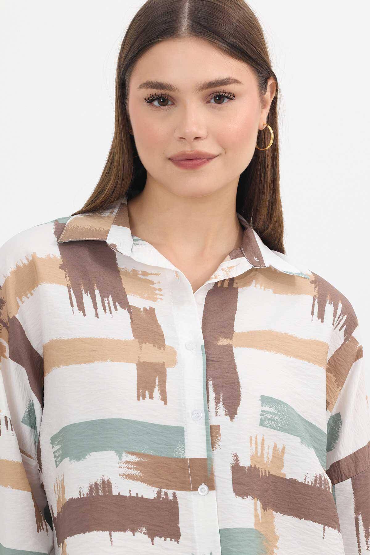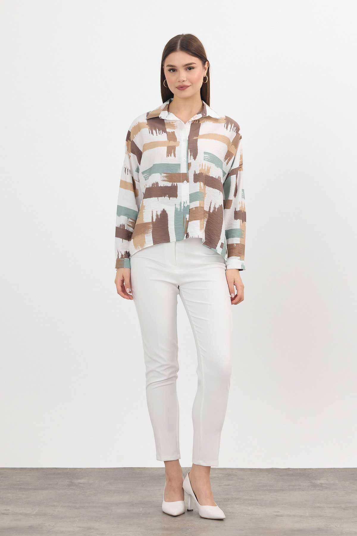 Beyaz Deri Kemer Detaylı Etnik Desenli Kimono 4363A