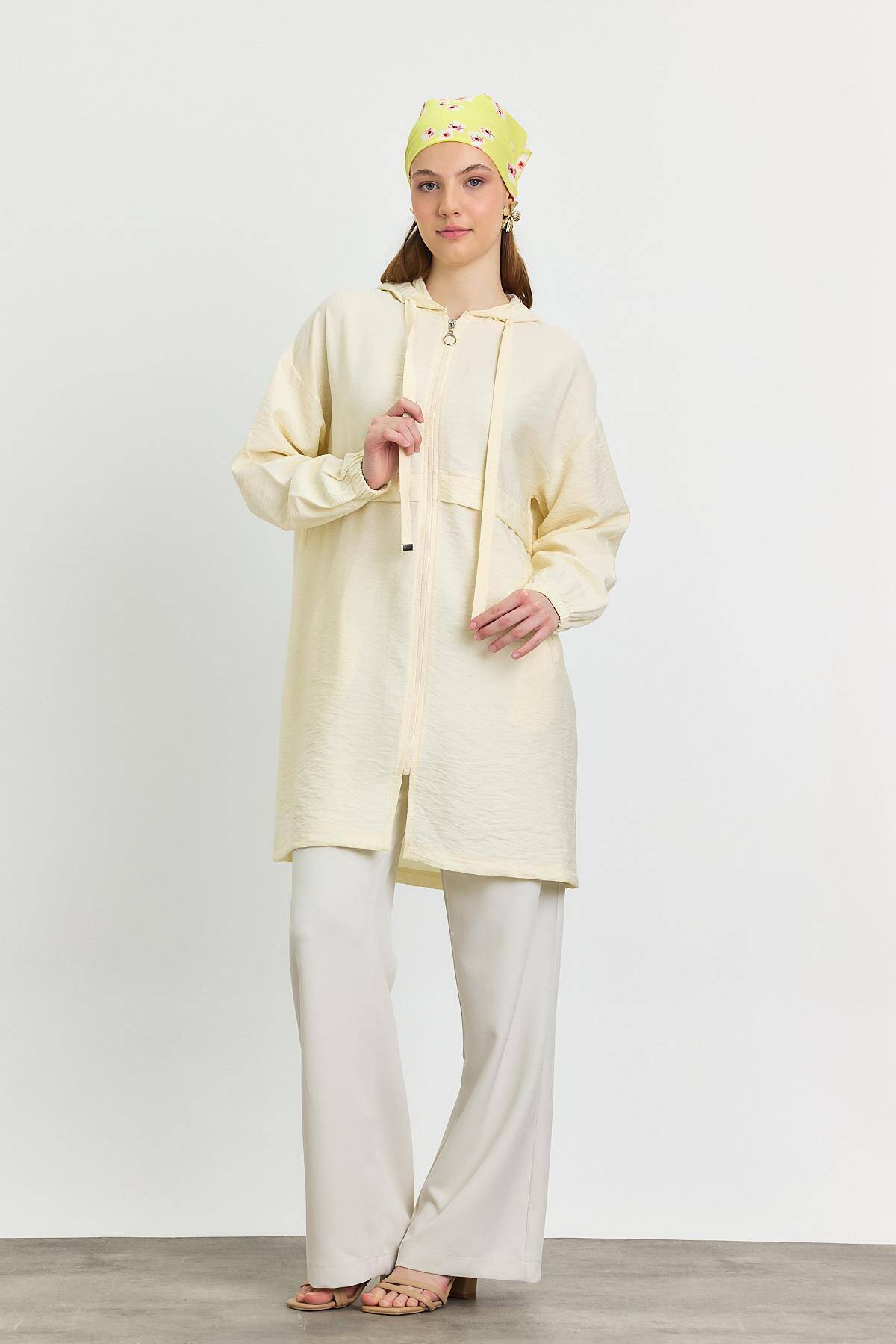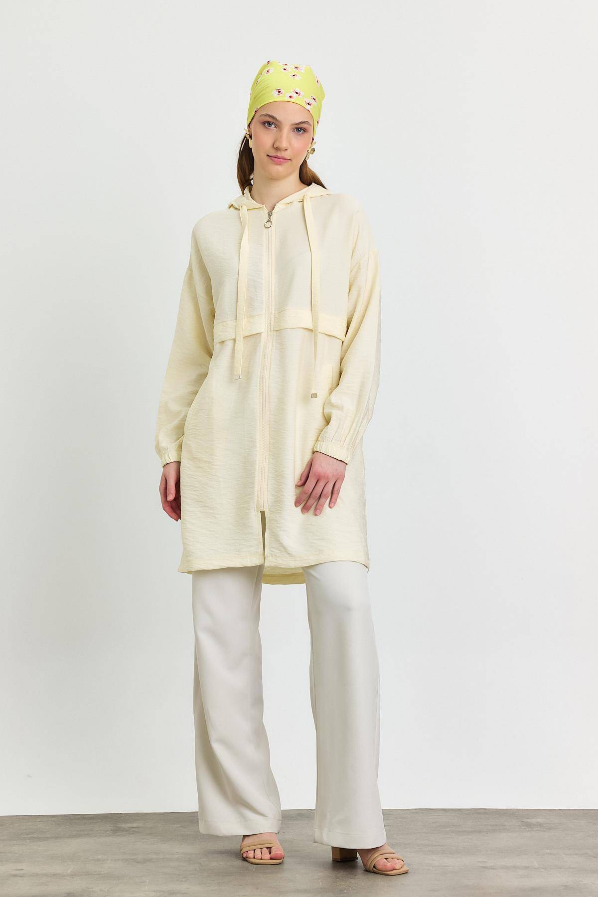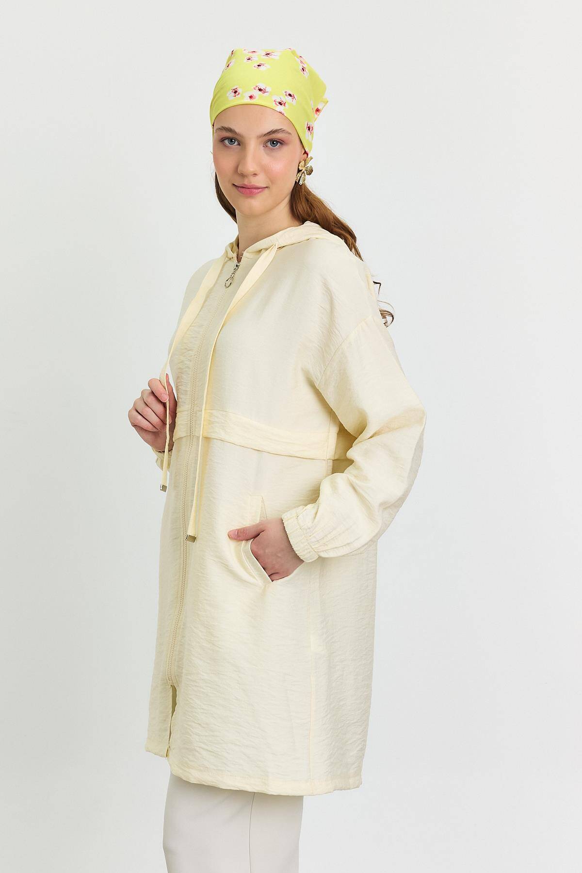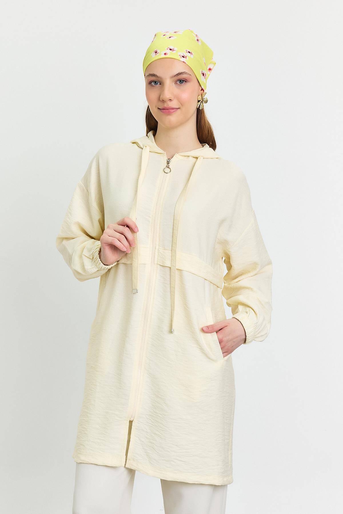 Bej Kapüşonlu Cepli Fermuarlı Kap 4572A
