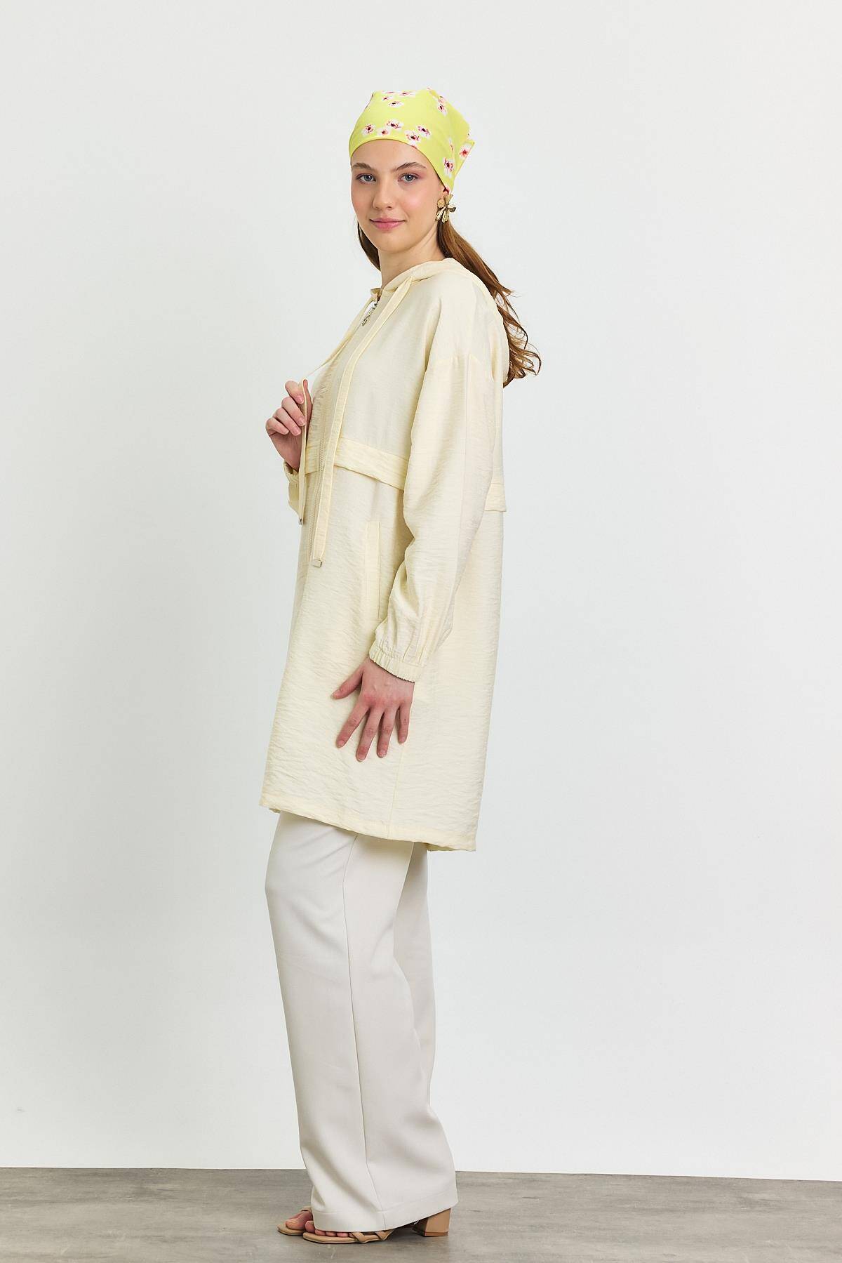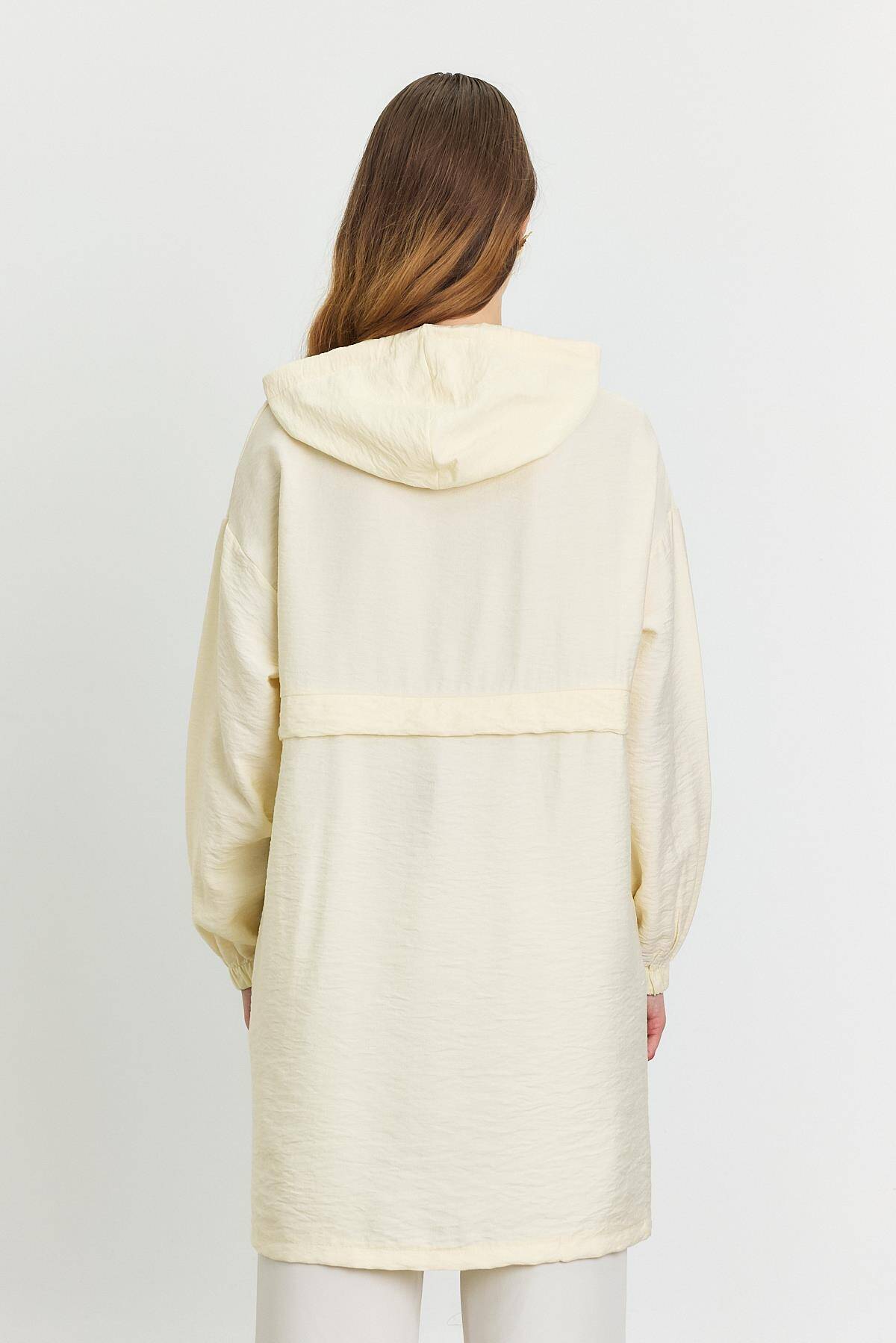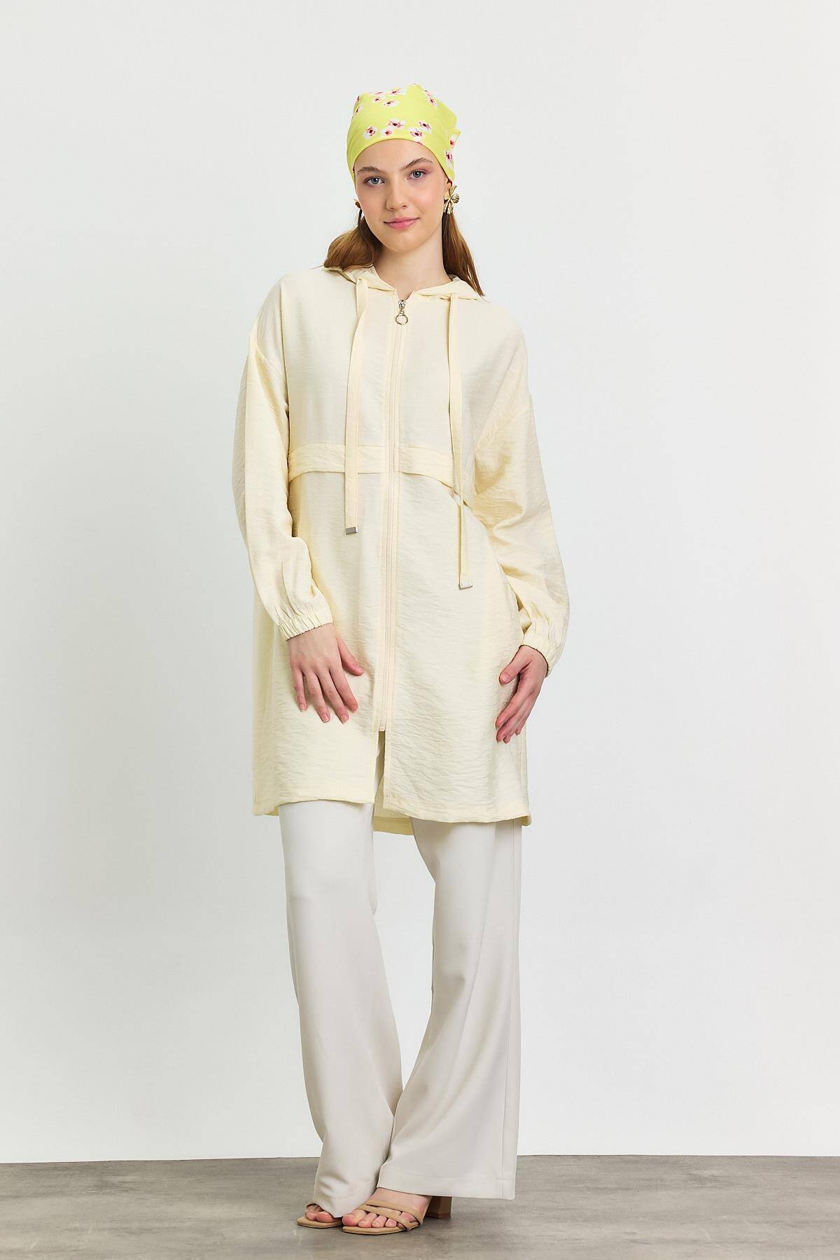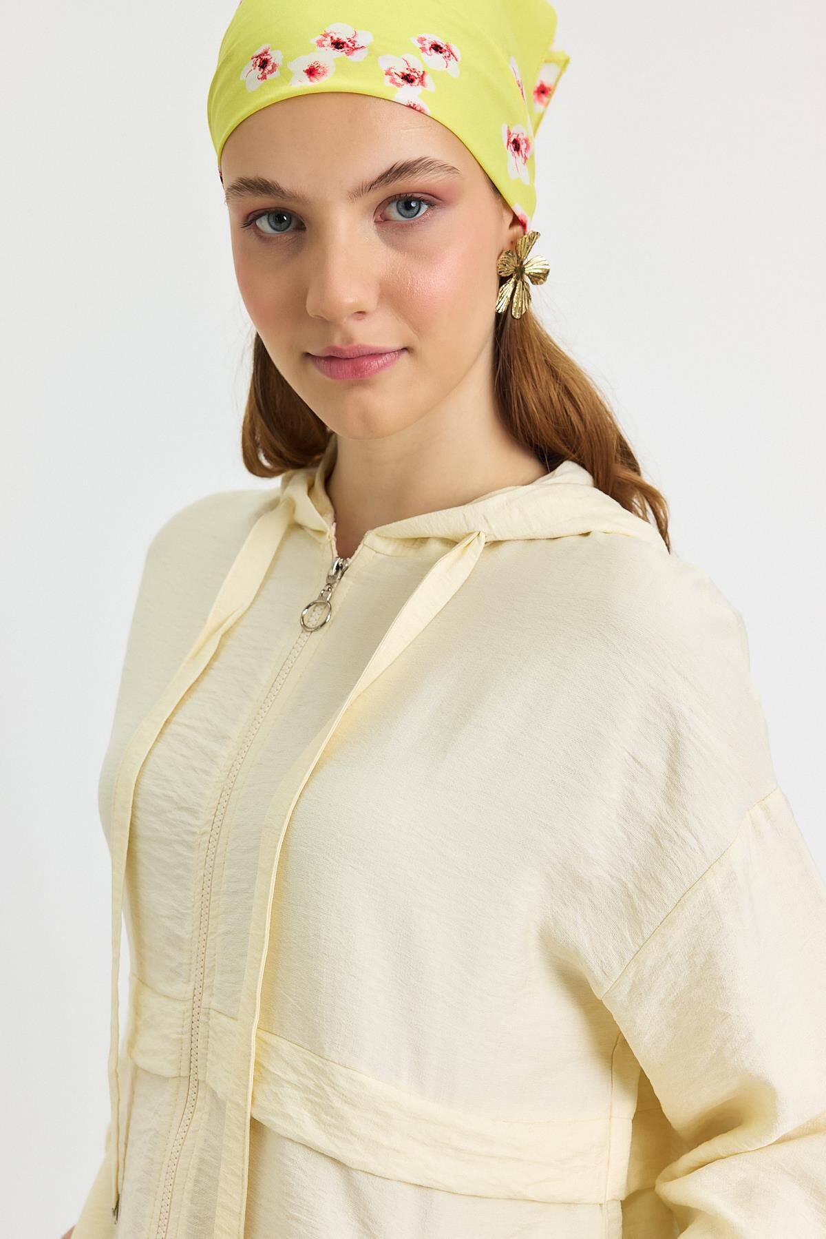 Bej Kapüşonlu Cepli Fermuarlı Kap 4572A