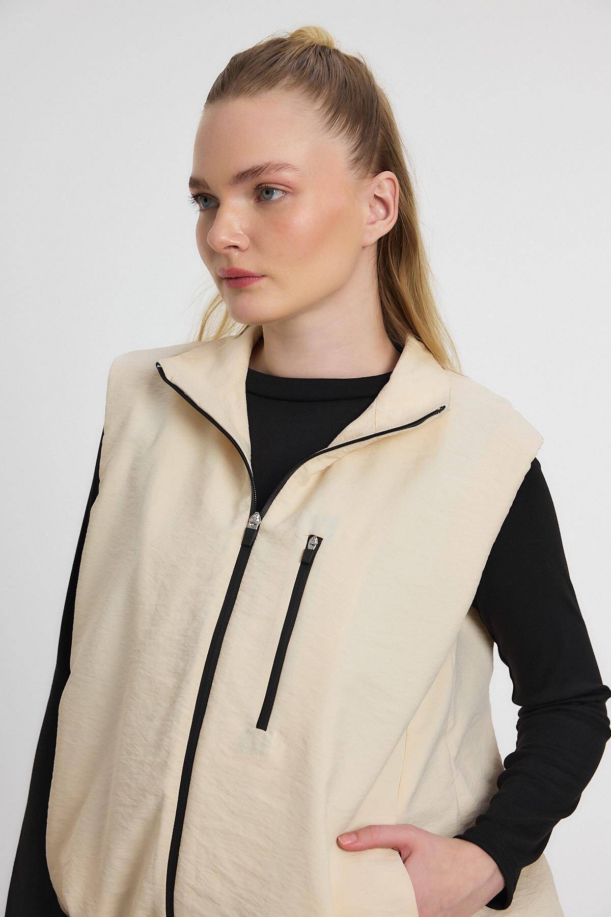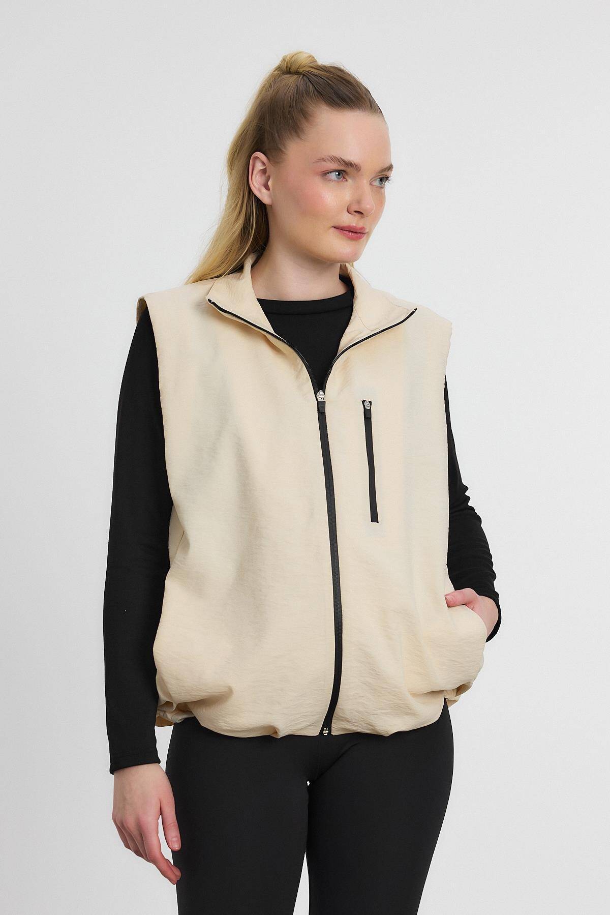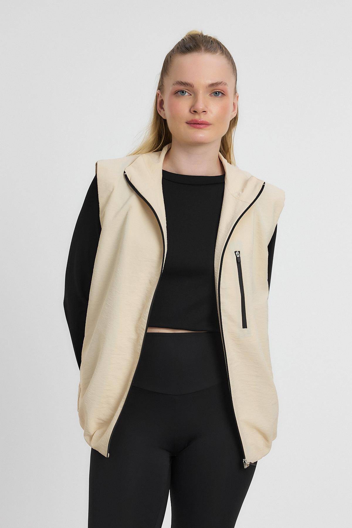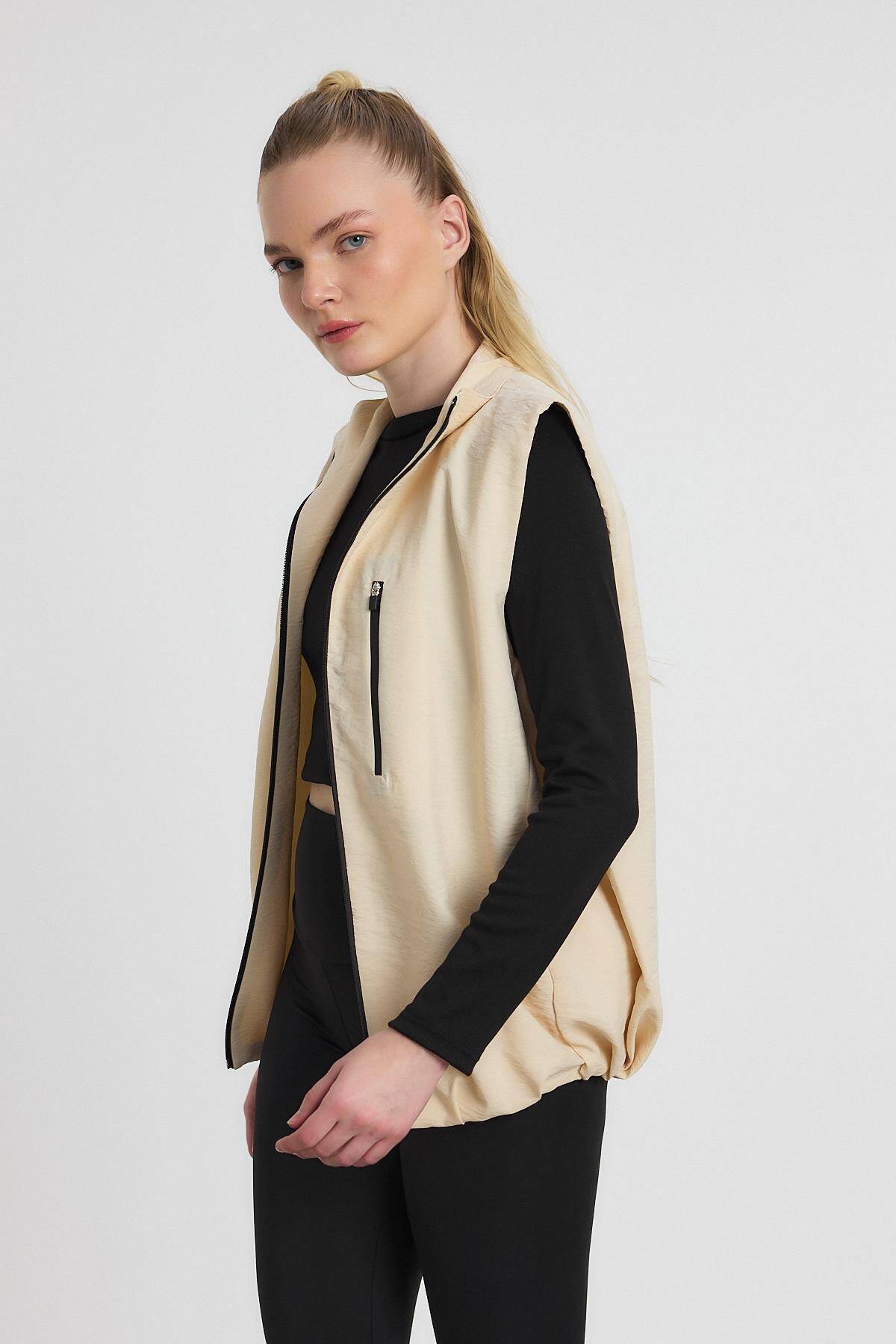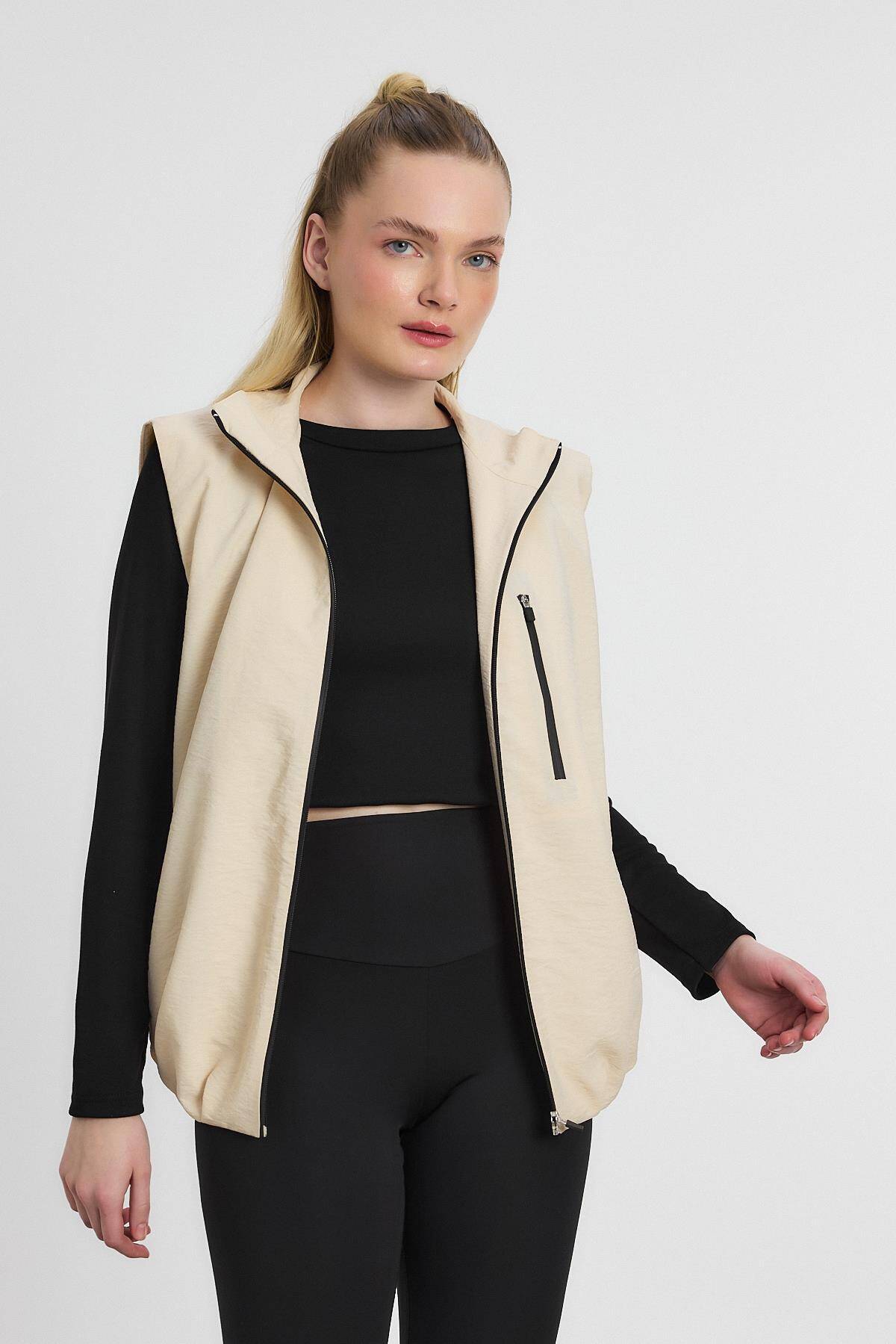 Bej Kapüşonlu Cepli Fermuarlı Kap 4572A