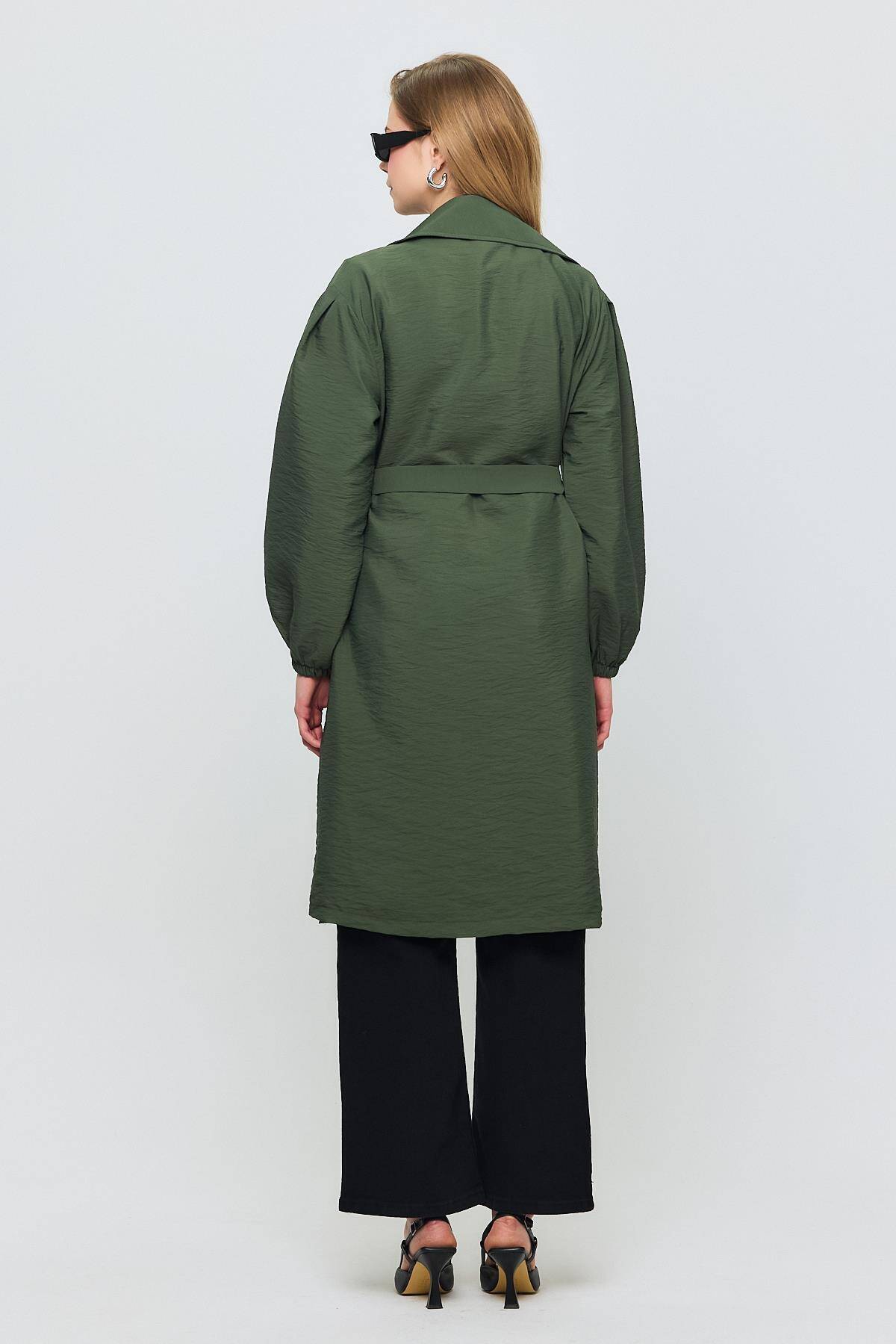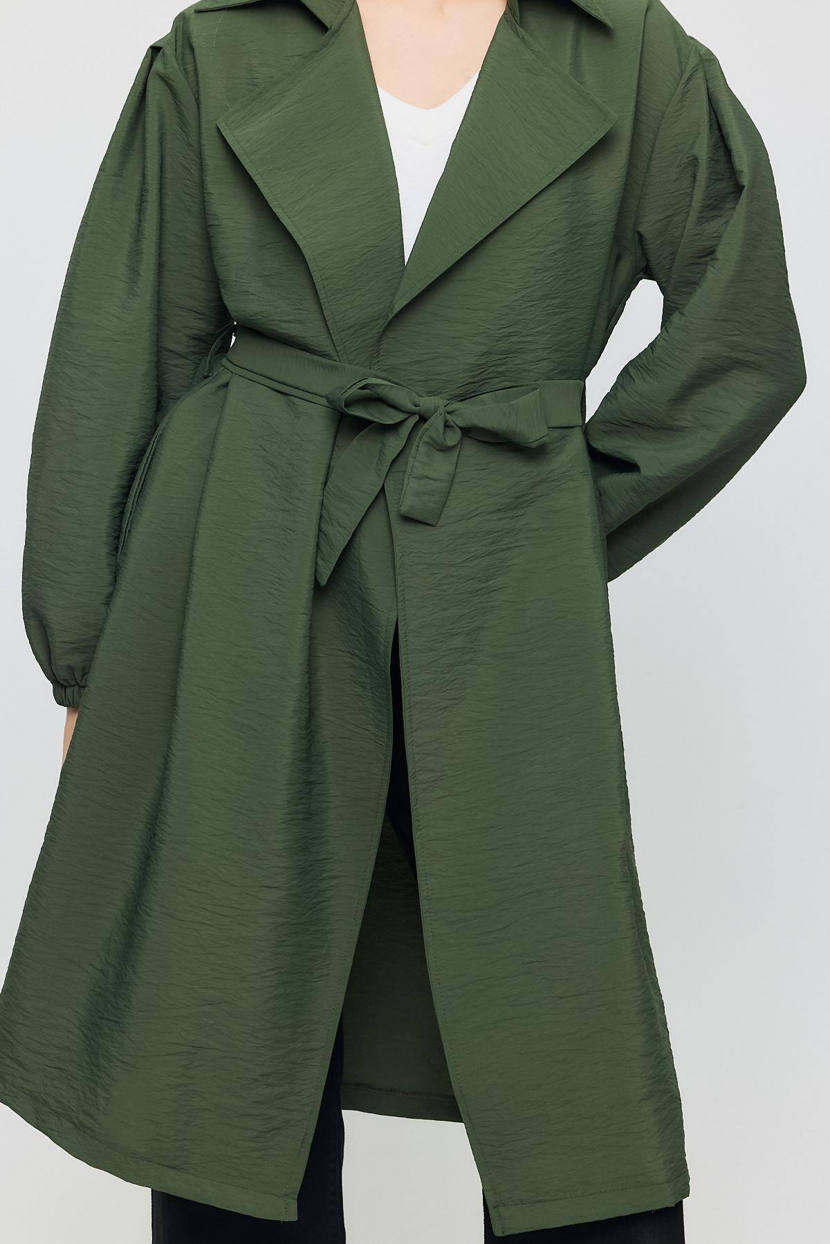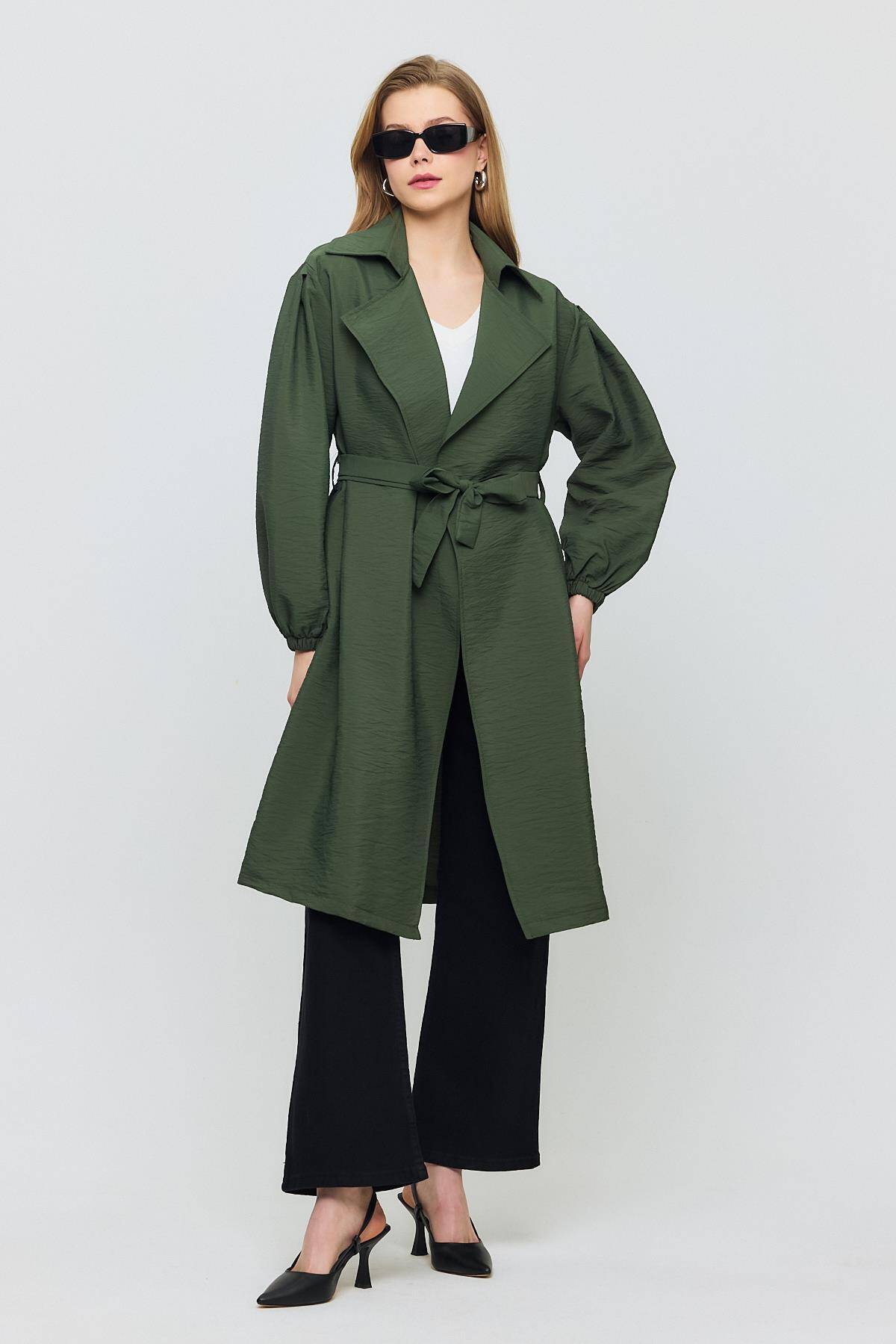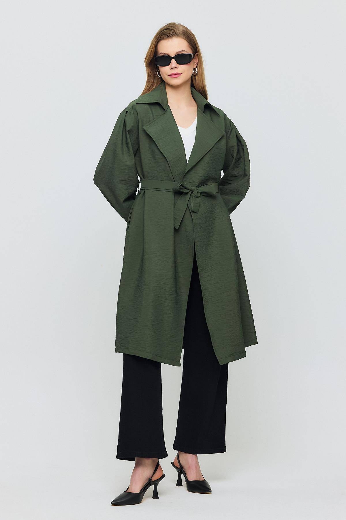 4579A Kuşaklı Kol Lastikli Trençkot Haki