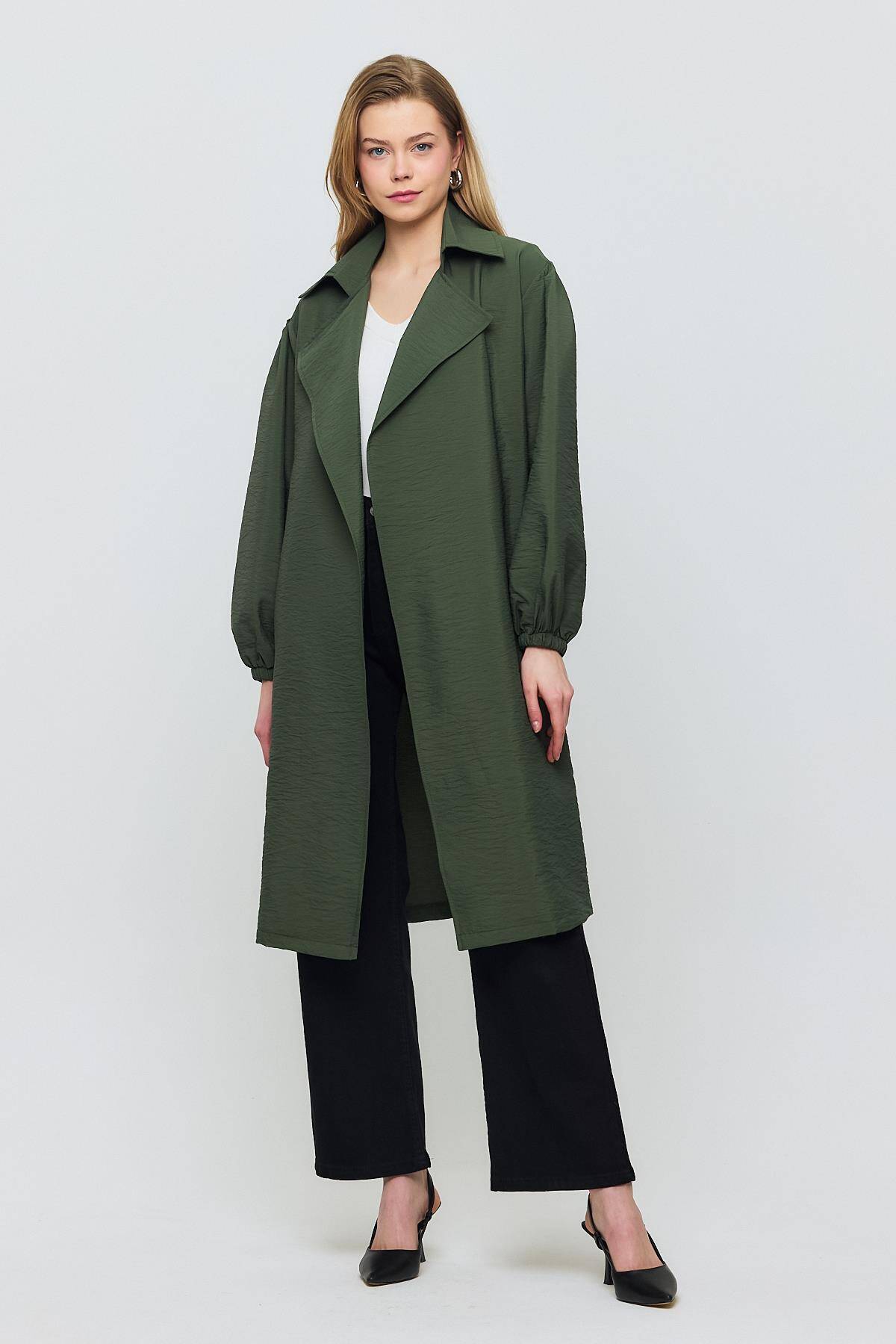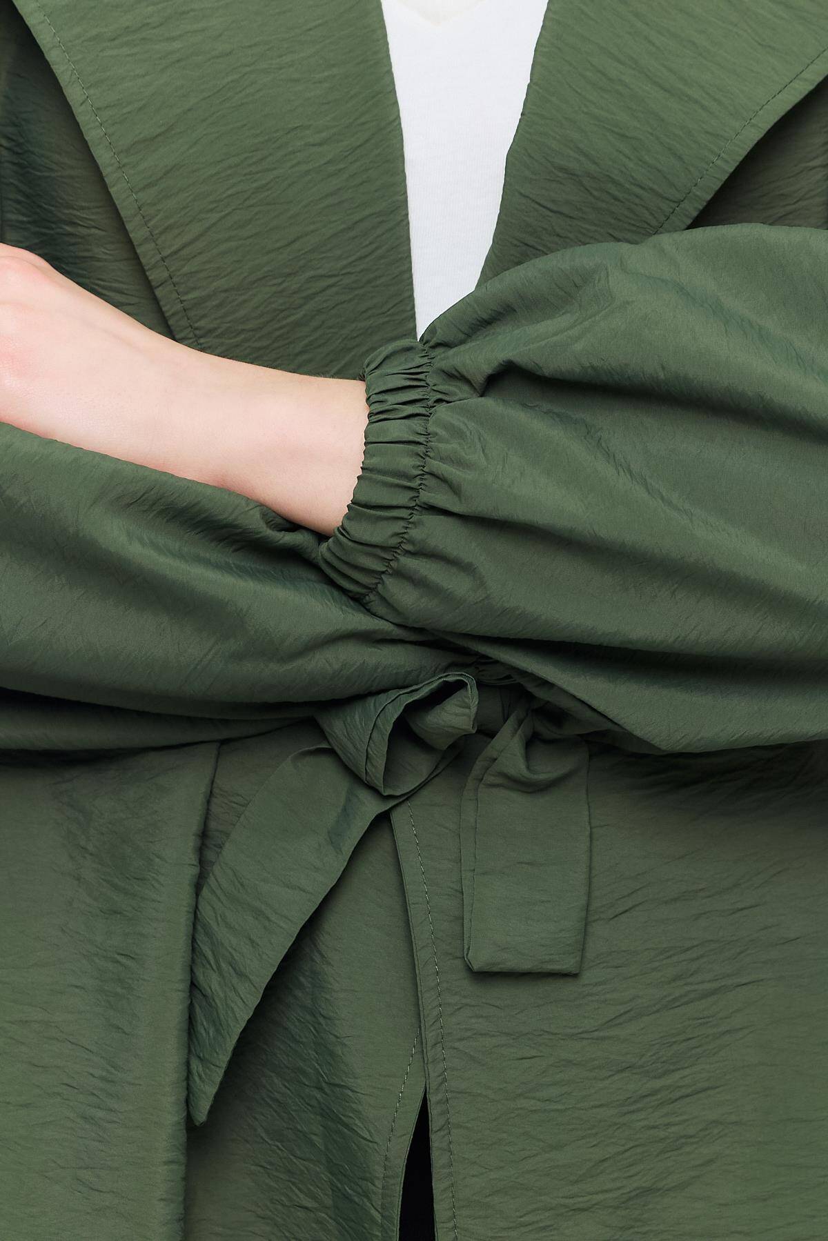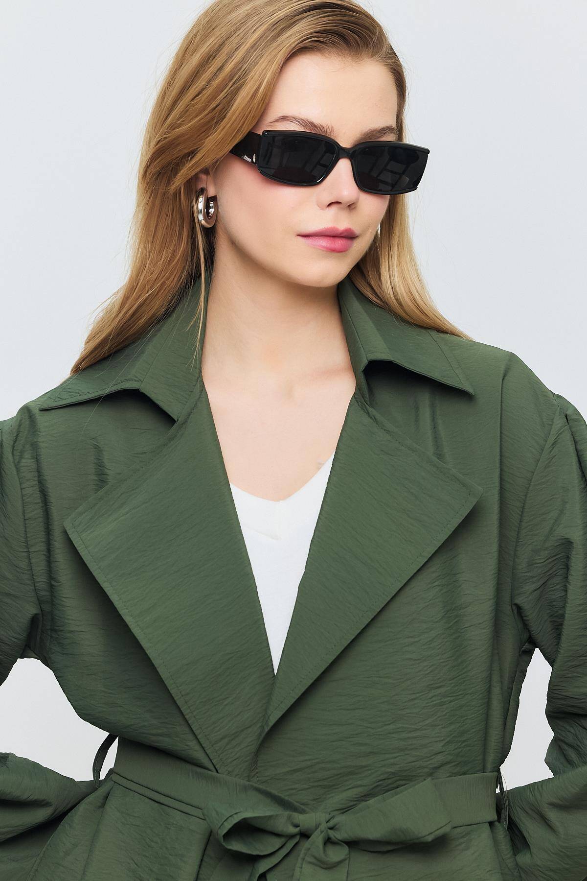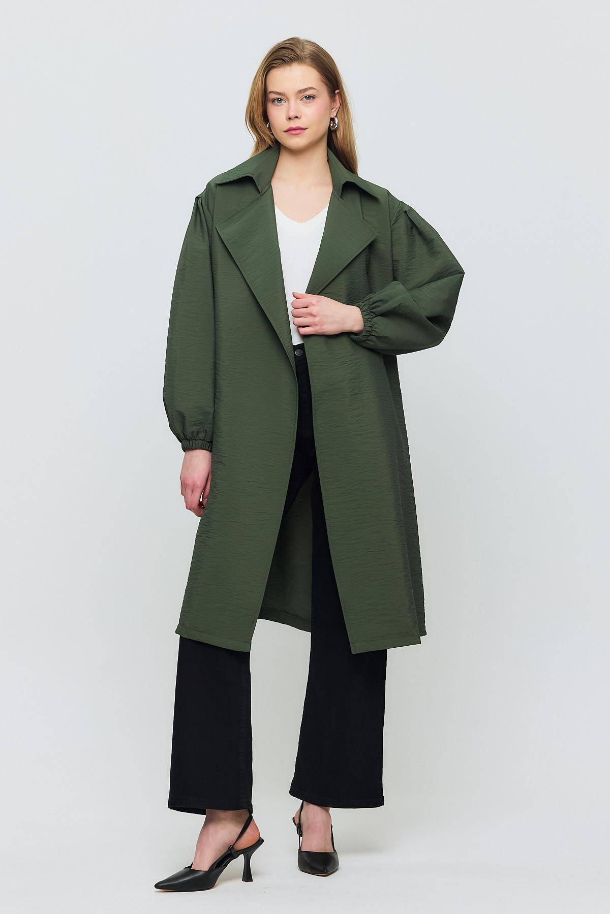 4579A Kuşaklı Kol Lastikli Trençkot Haki