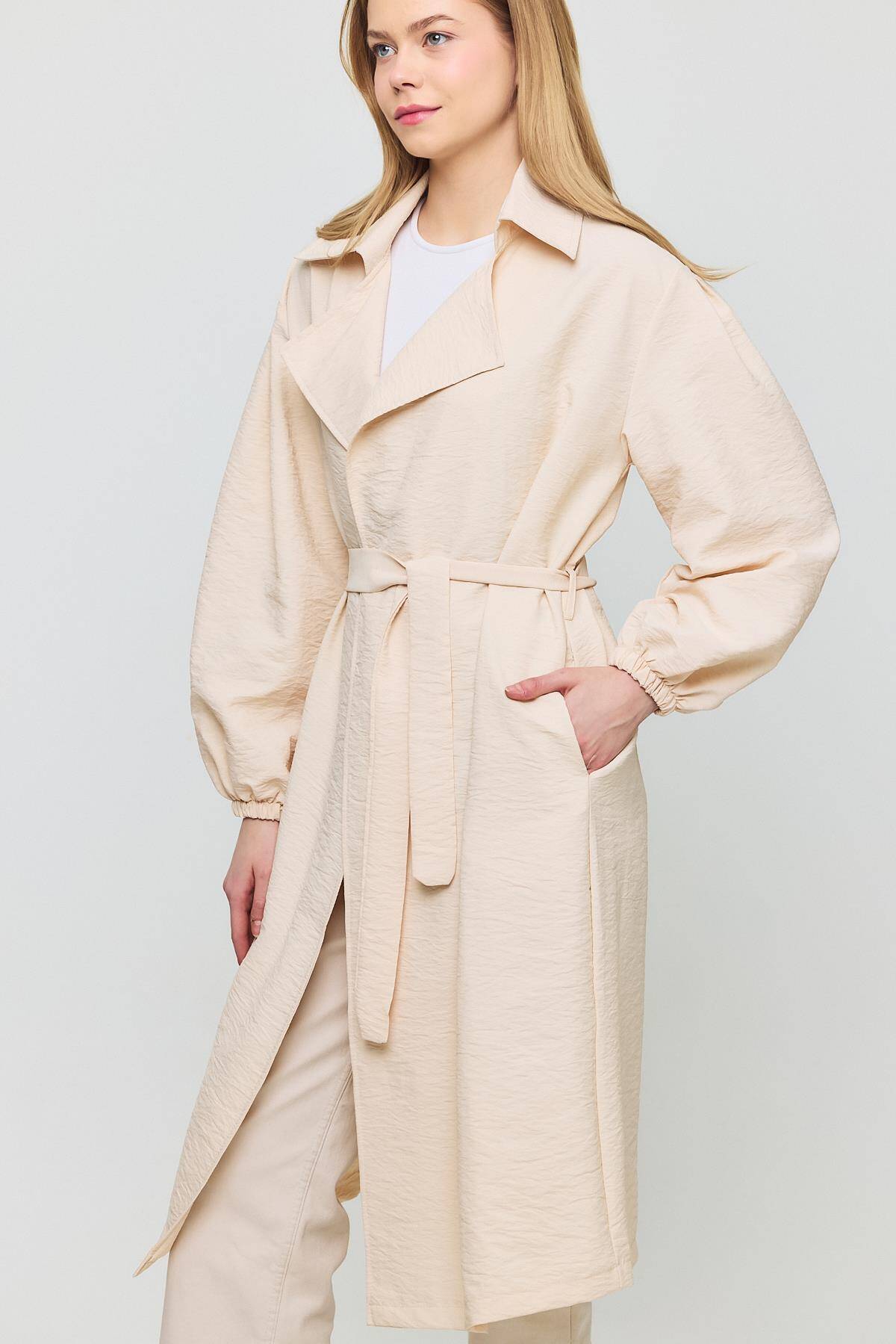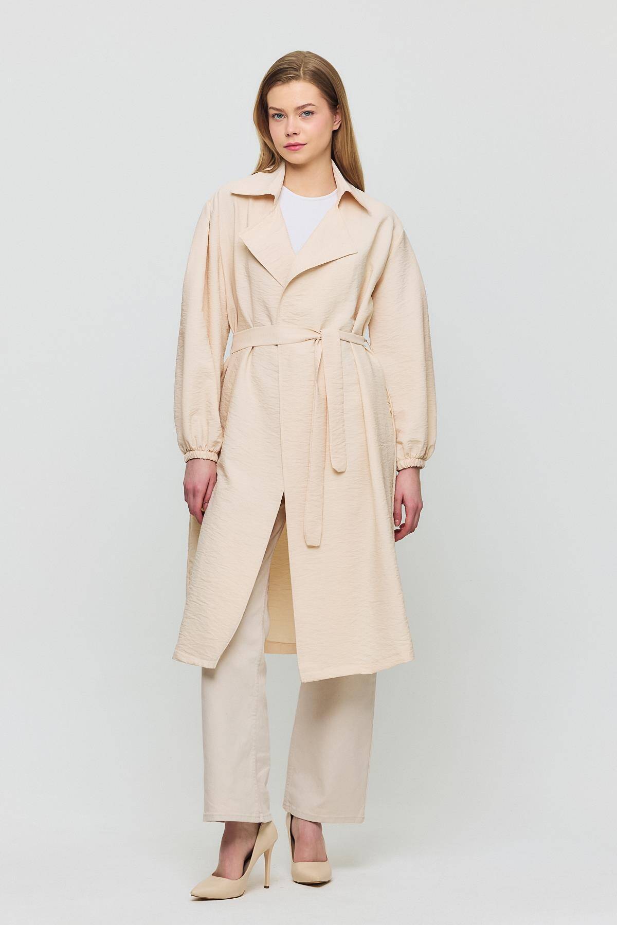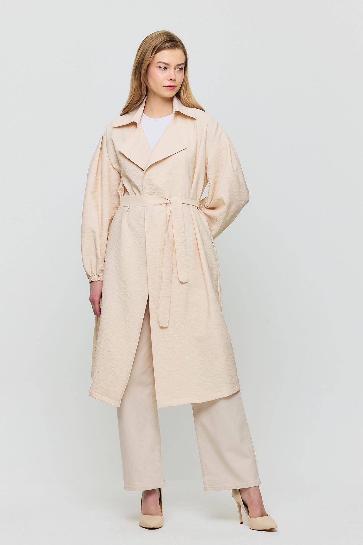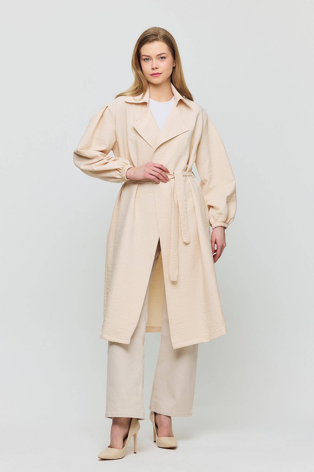4579A Kuşaklı Kol Lastikli Trençkot Taş