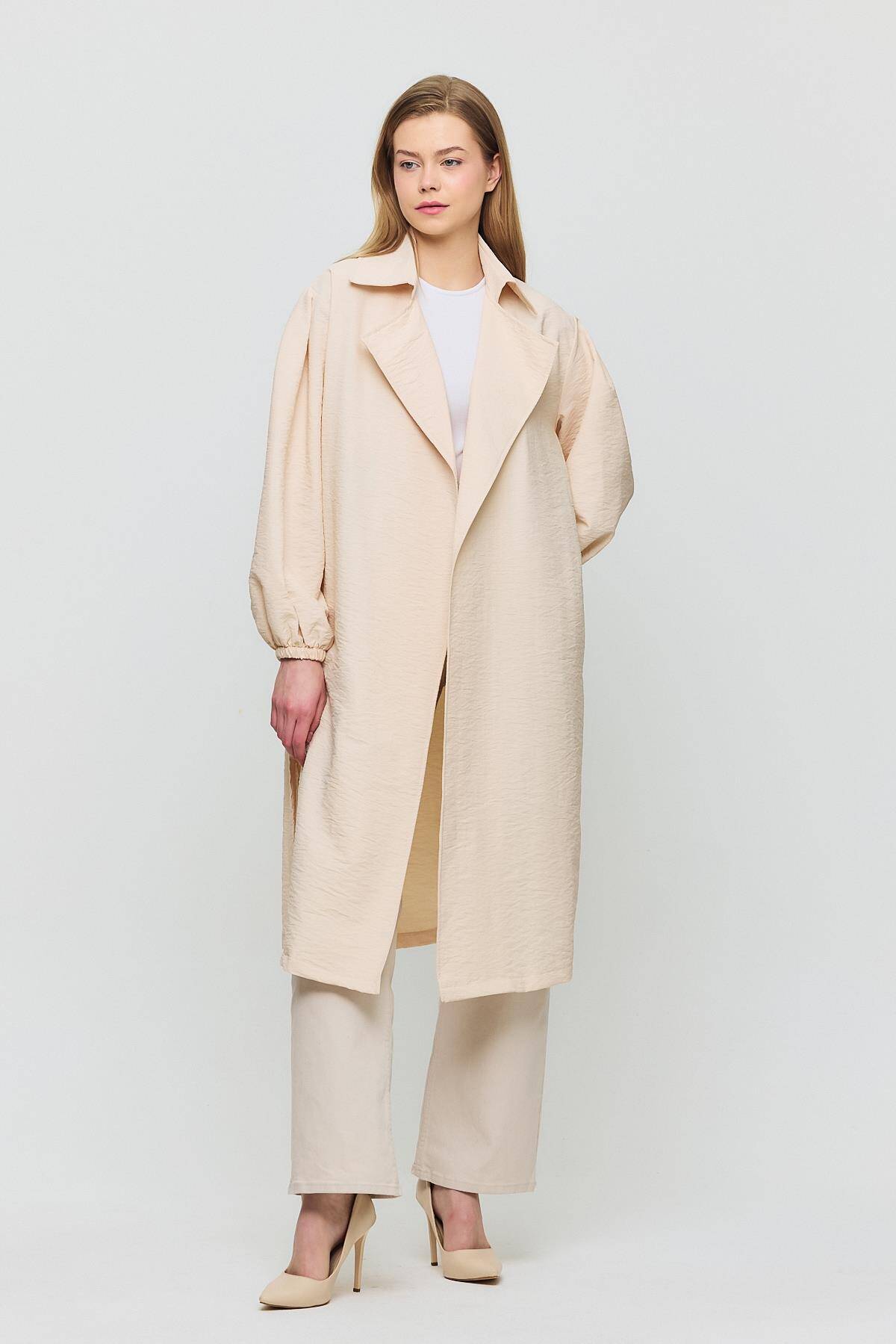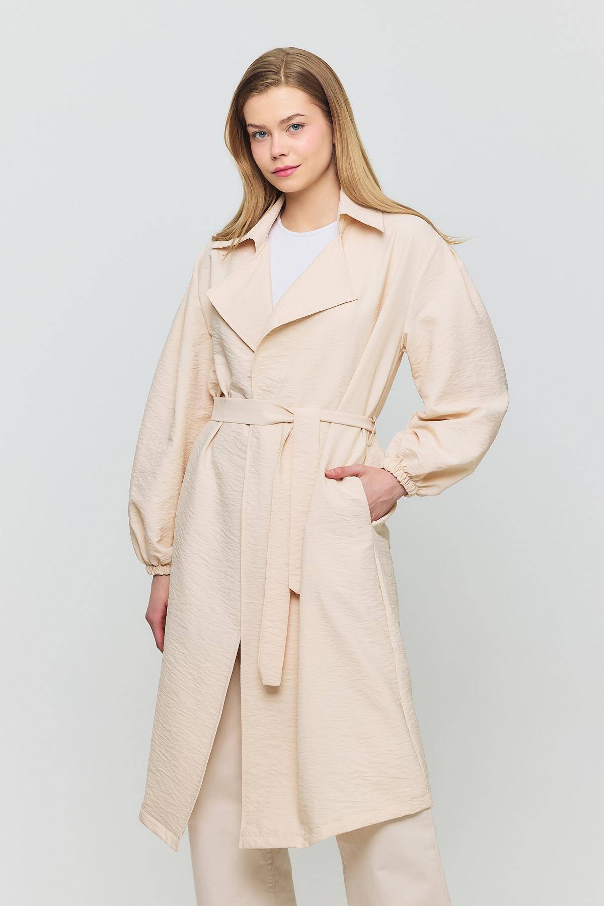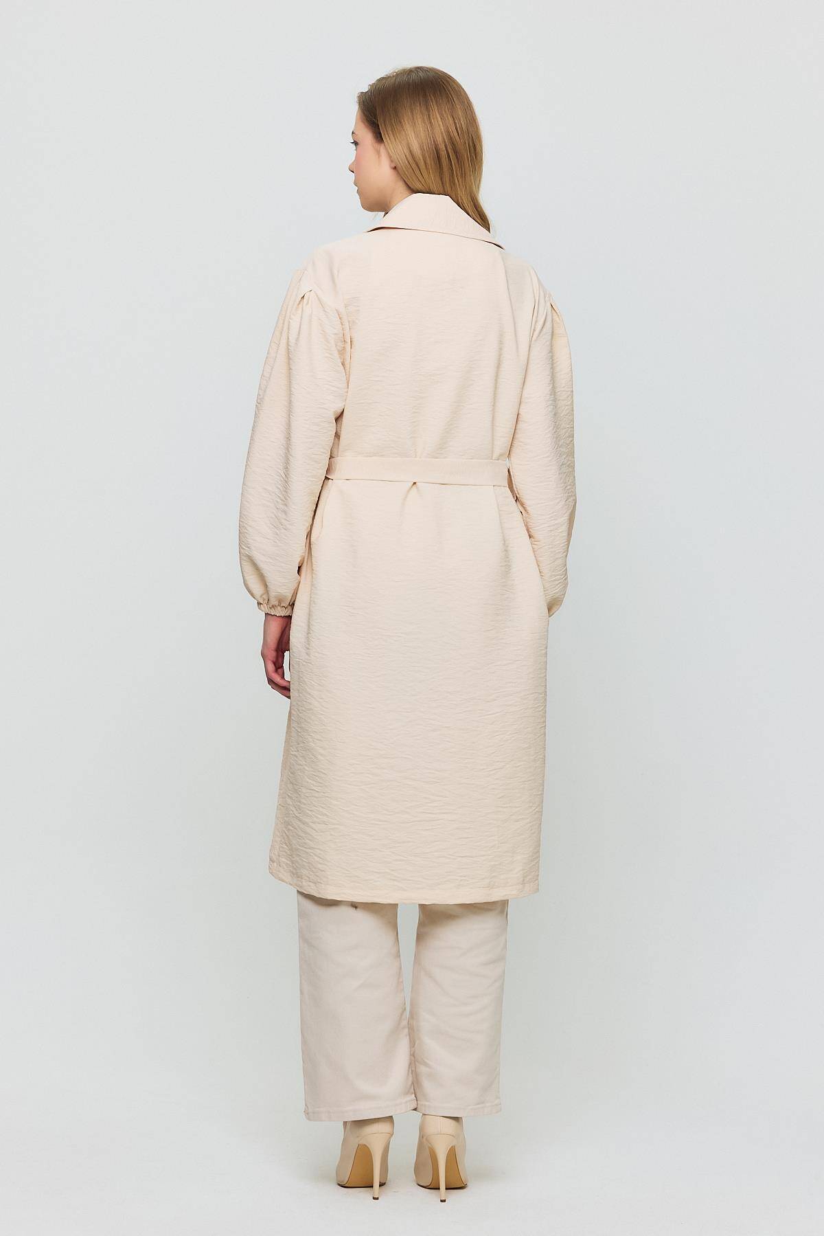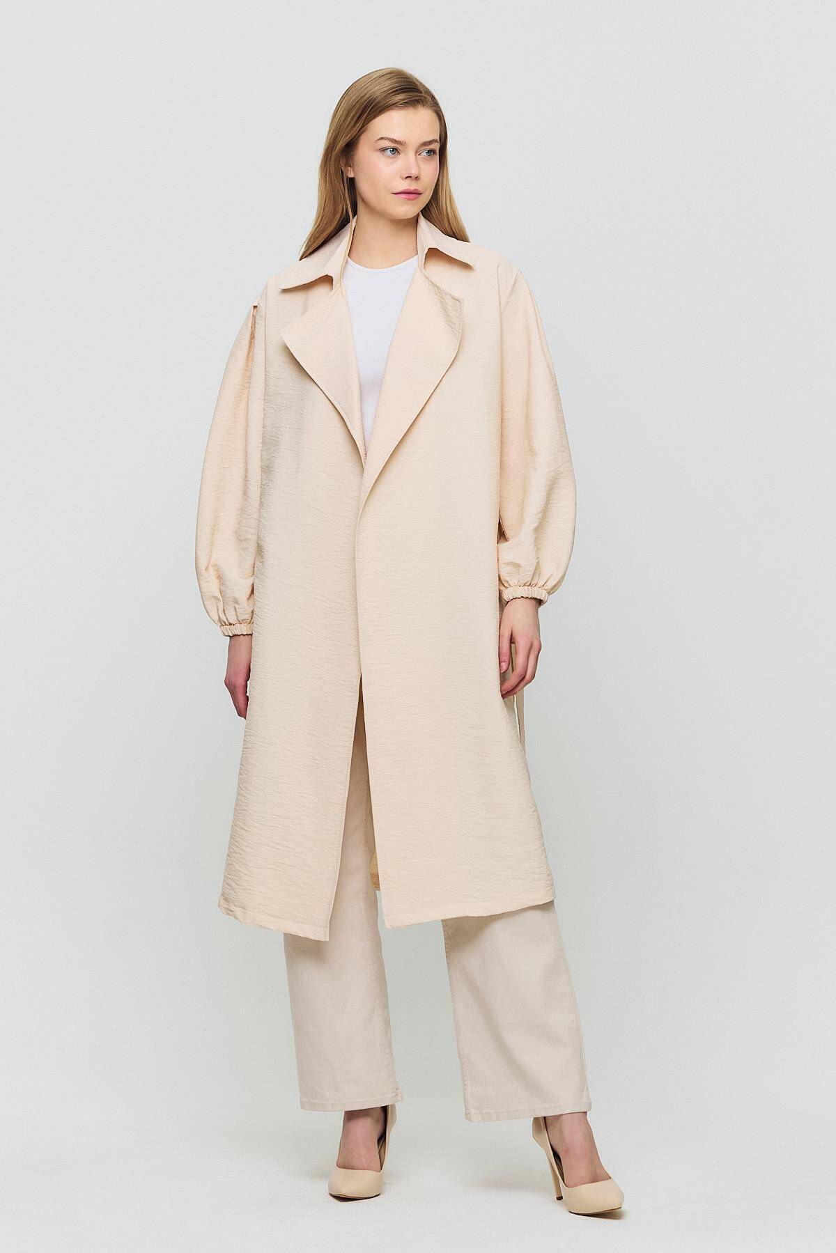 4579A Kuşaklı Kol Lastikli Trençkot Taş