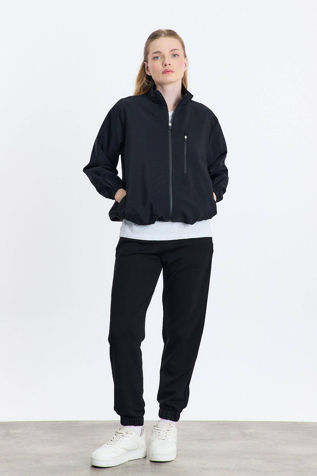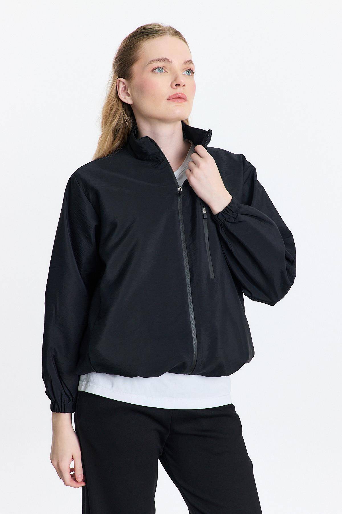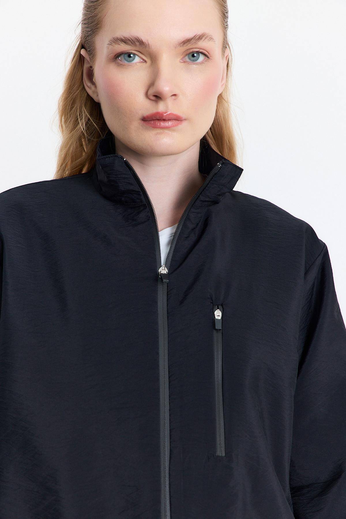 Siyah Kapüşonlu Cepli Fermuarlı Kap 4572A