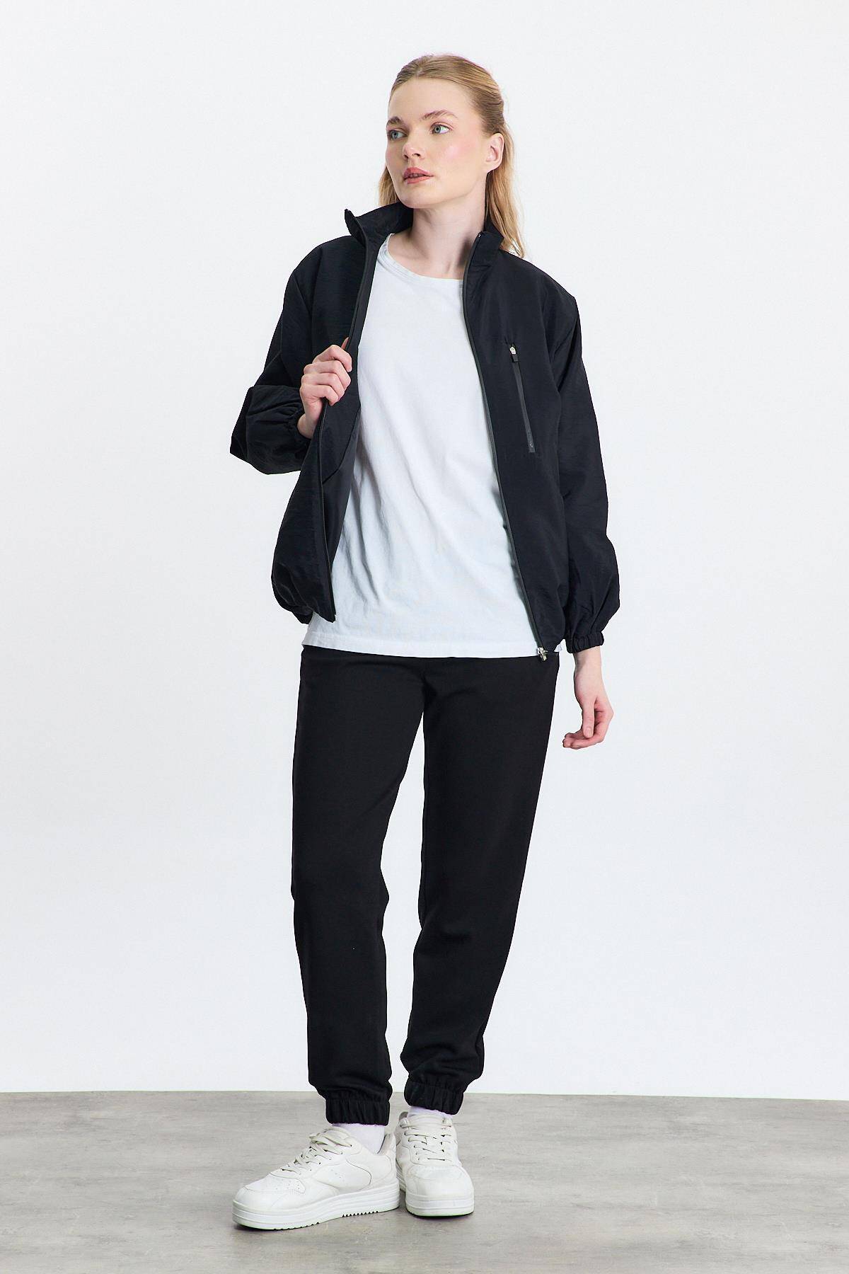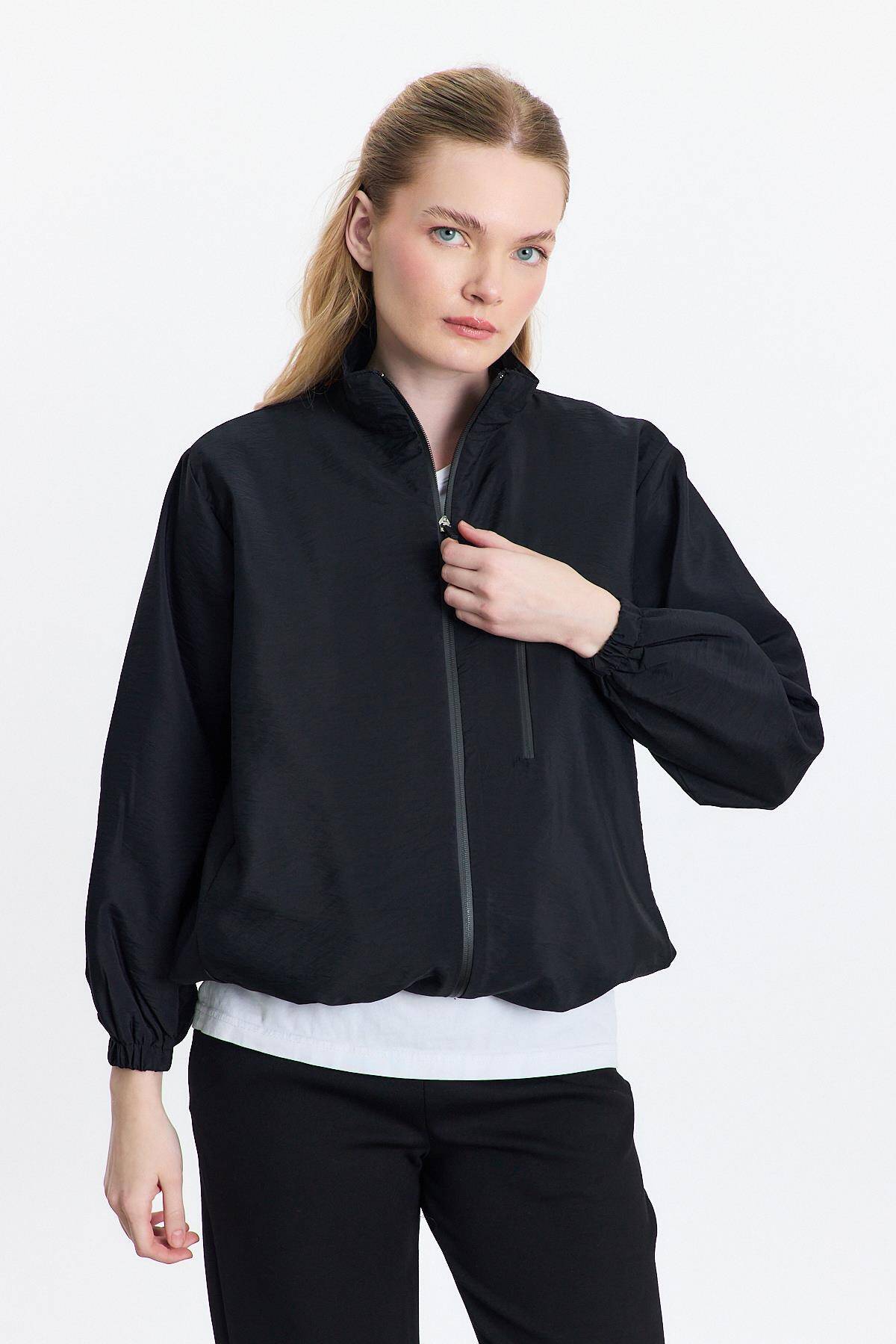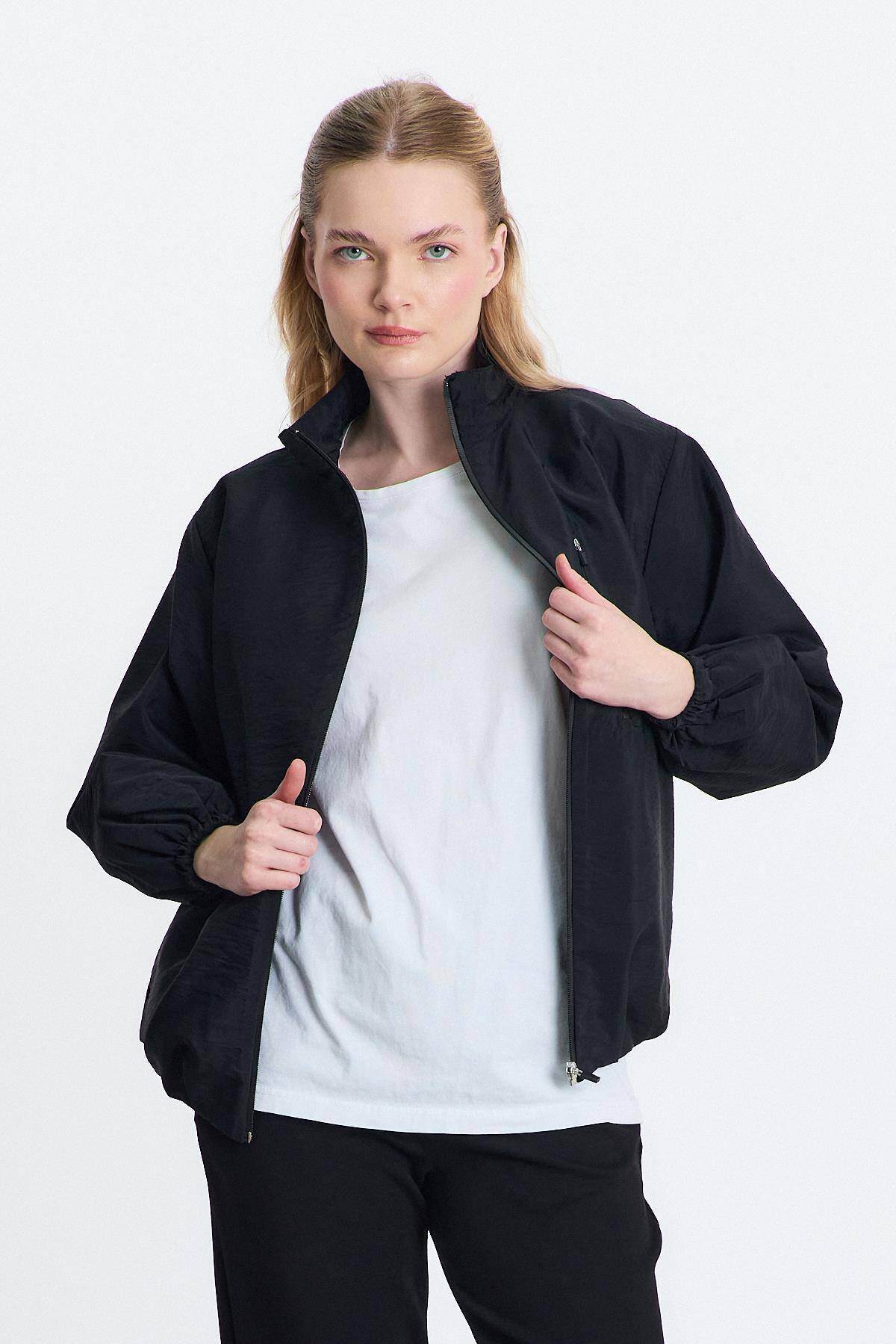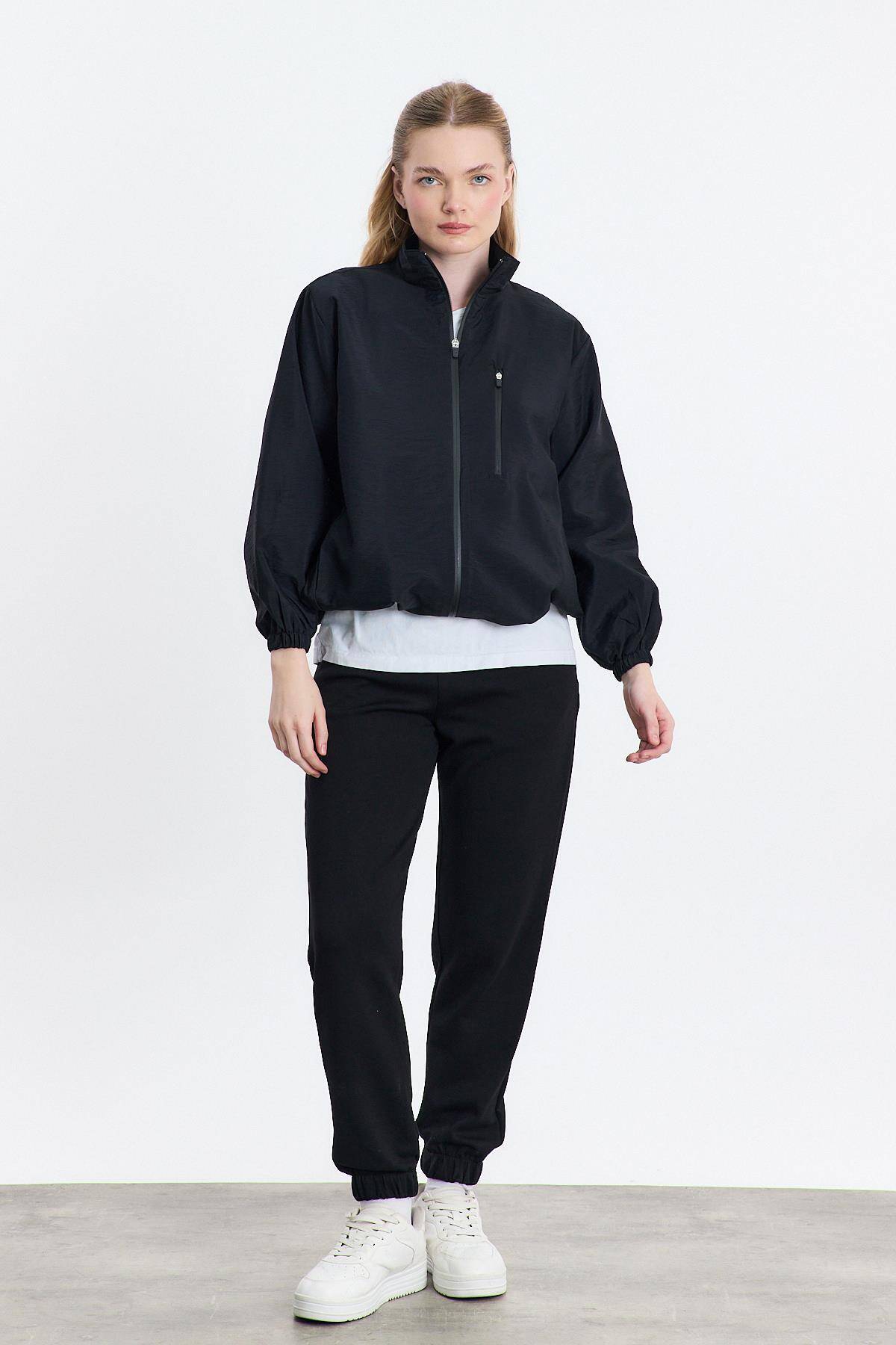 Siyah Kapüşonlu Cepli Fermuarlı Kap 4572A