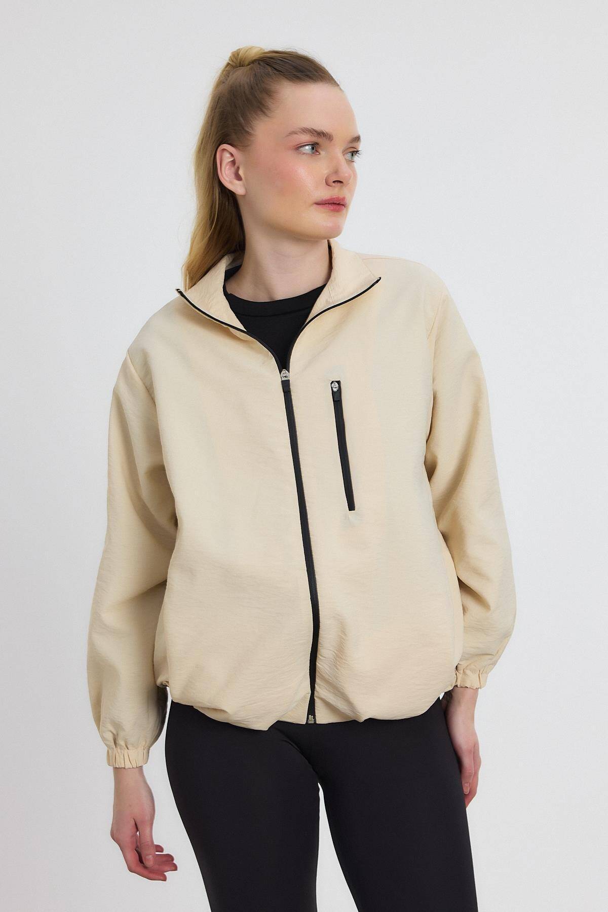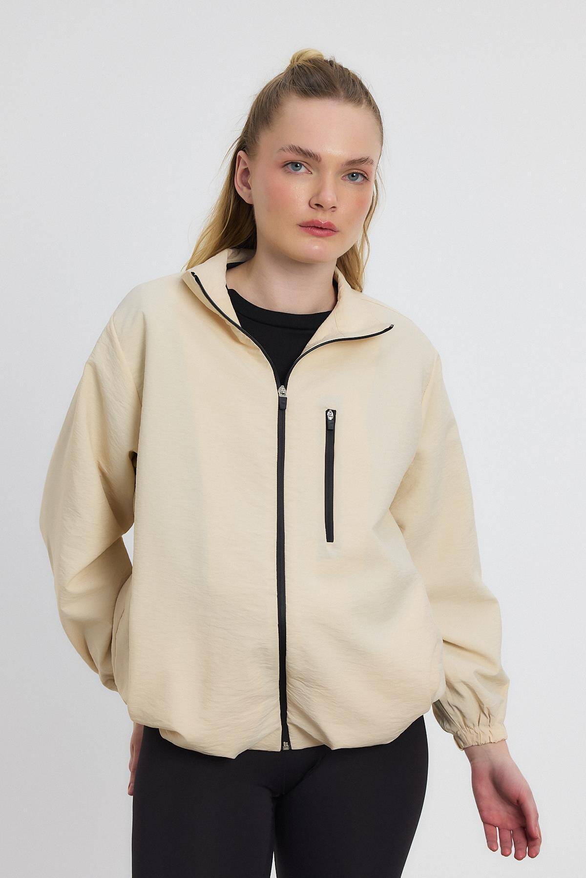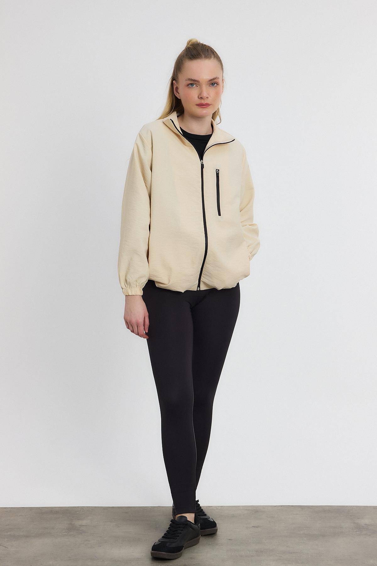 Bej Kapüşonlu Cepli Fermuarlı Kap 4572A