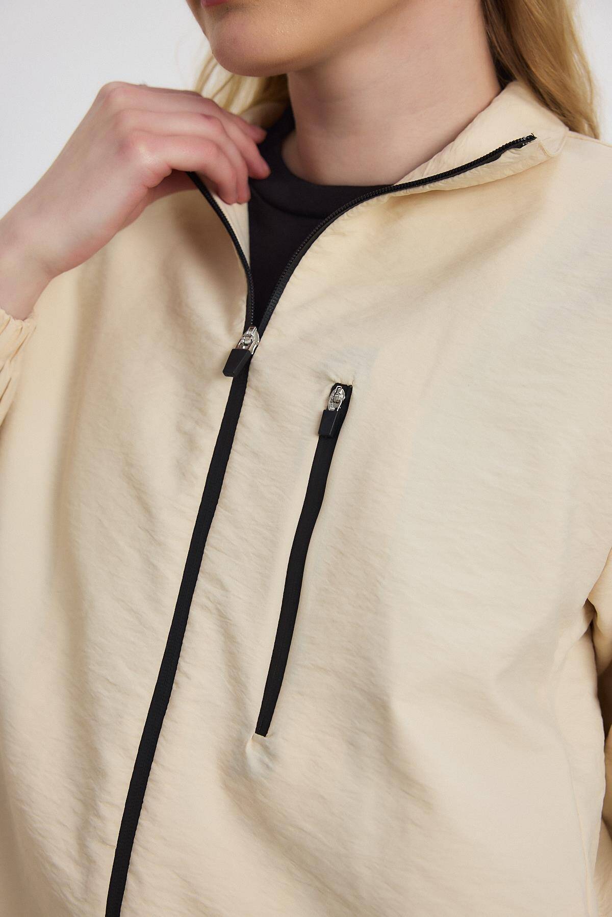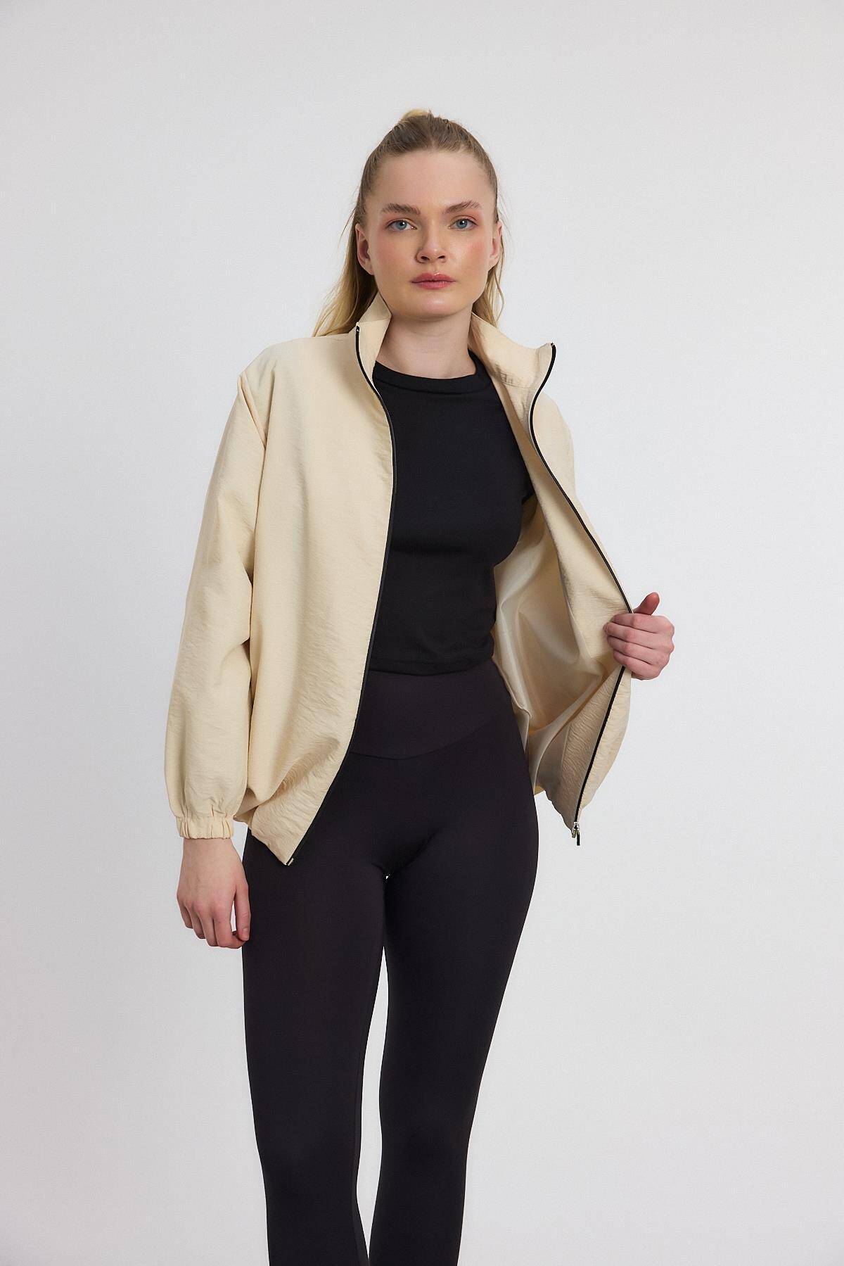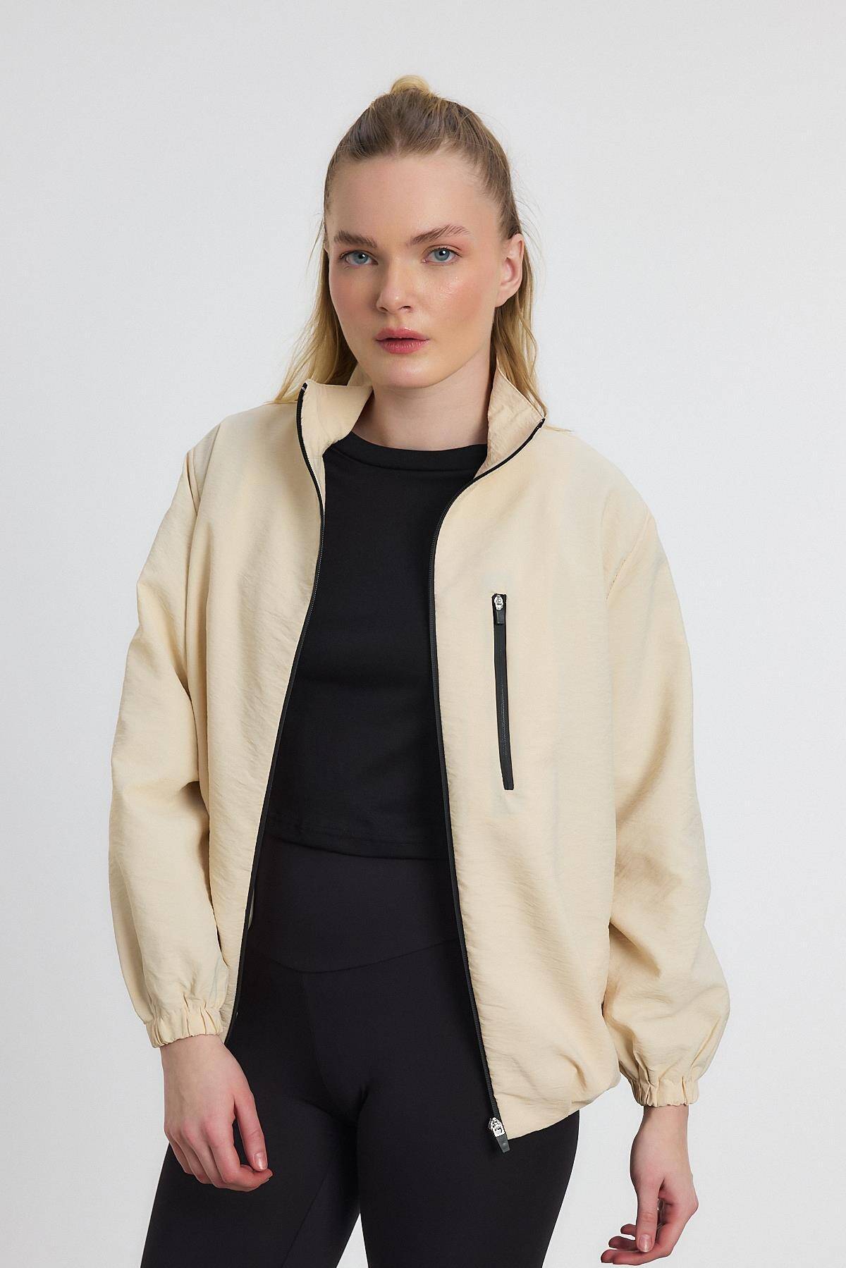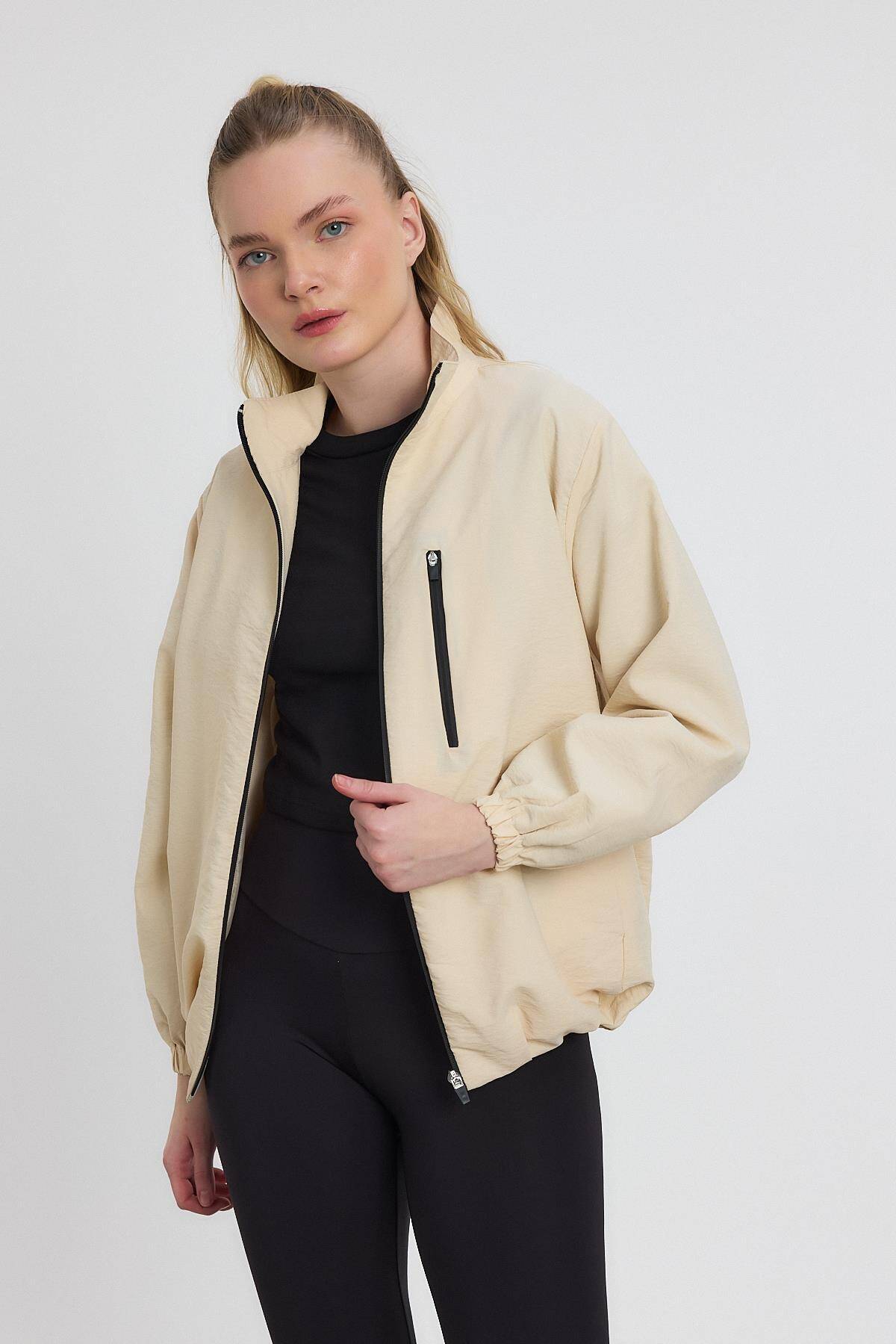 Bej Kapüşonlu Cepli Fermuarlı Kap 4572A