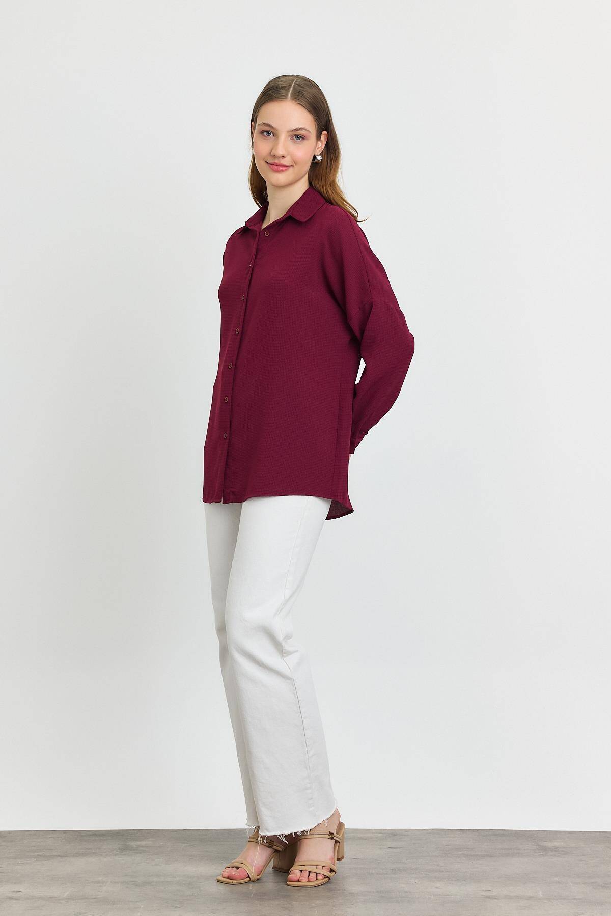 4636A Çizgi Desenli Gömlek Bordo