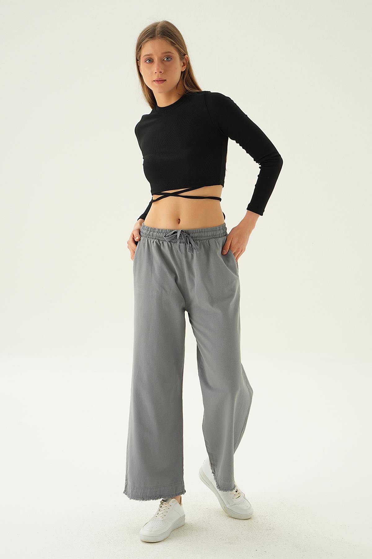 7149A Belden Bağlamalı Uzun Kaşe Kaban Gri