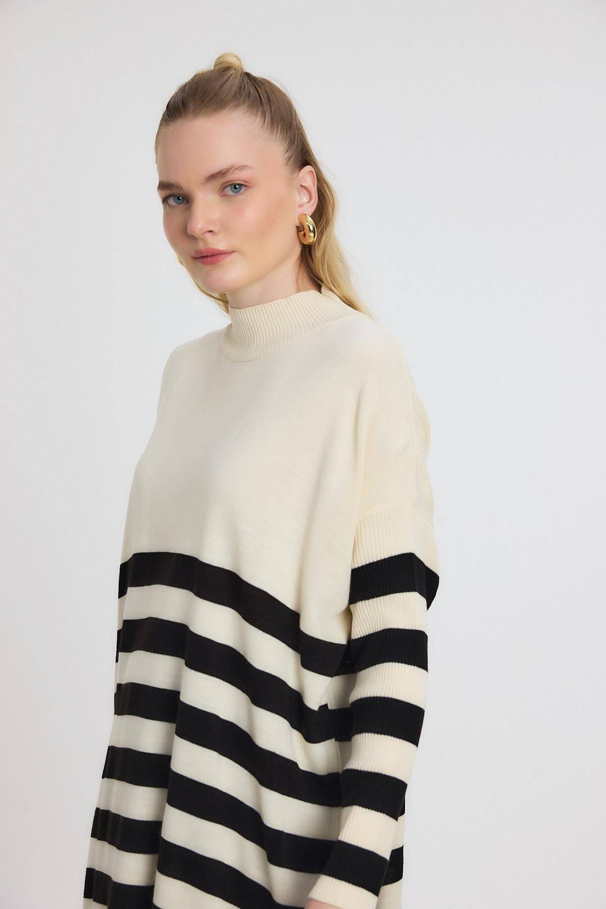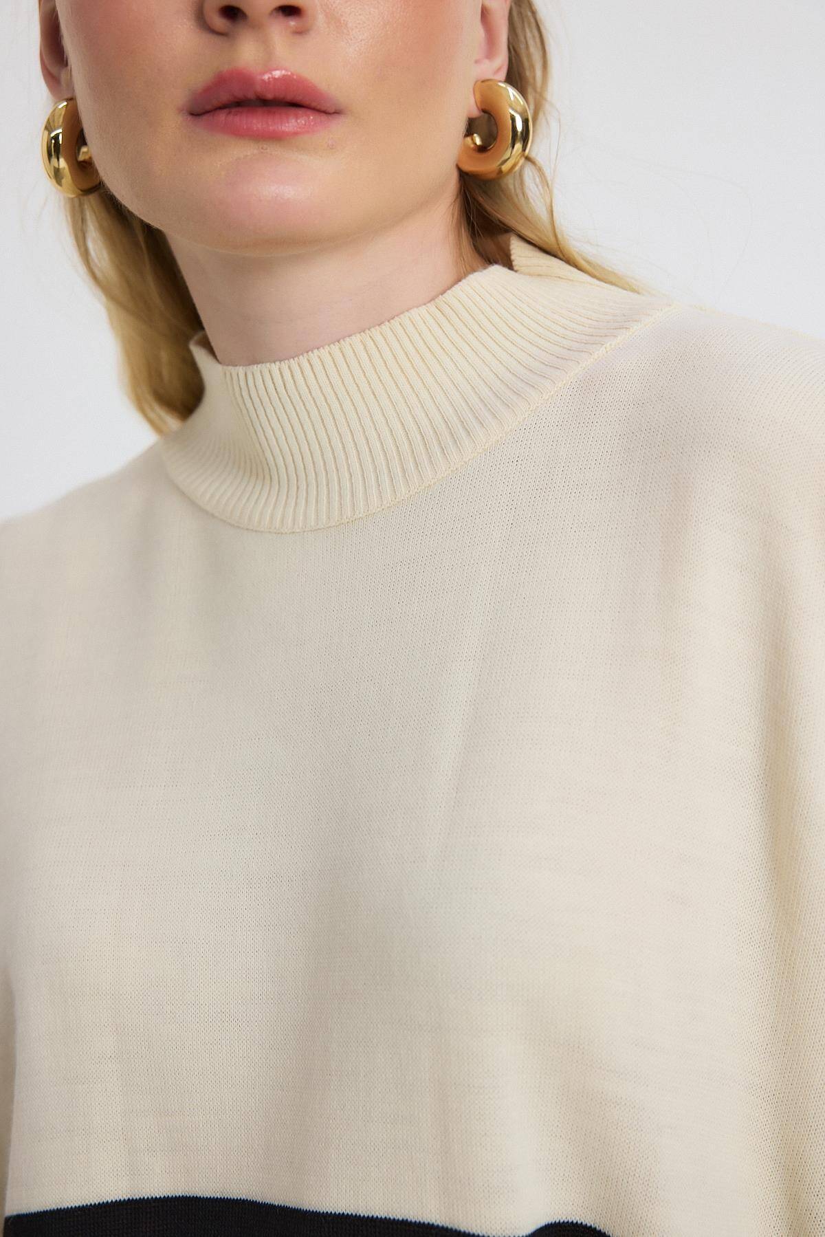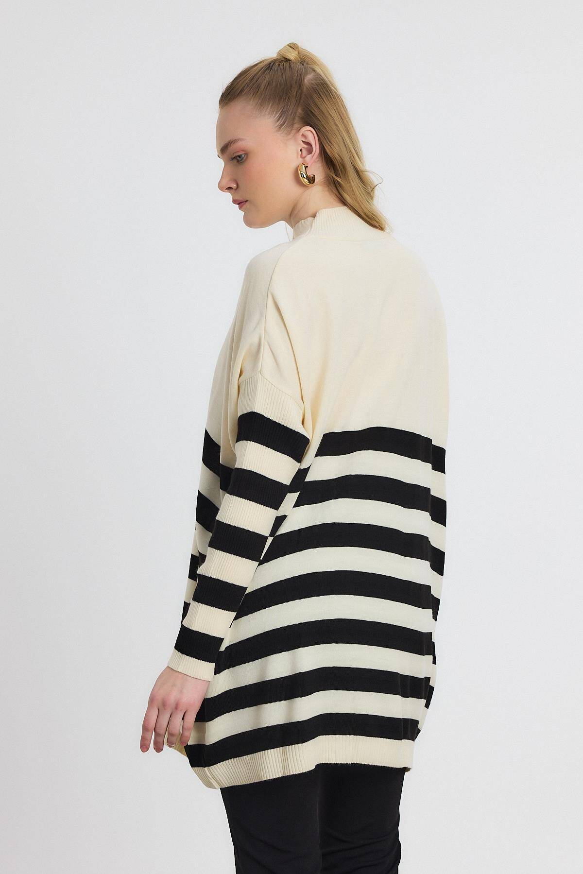 Beyaz Deri Kemer Detaylı Etnik Desenli Kimono 4363A