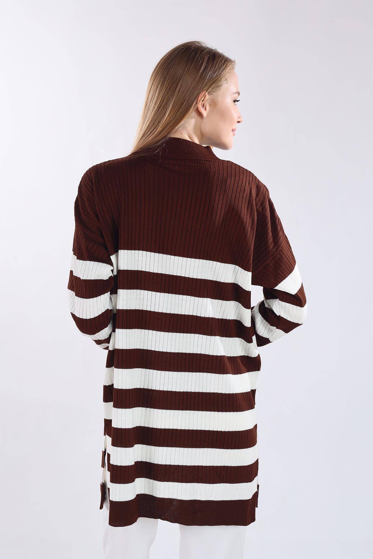 Beyaz Deri Kemer Detaylı Etnik Desenli Kimono 4363A