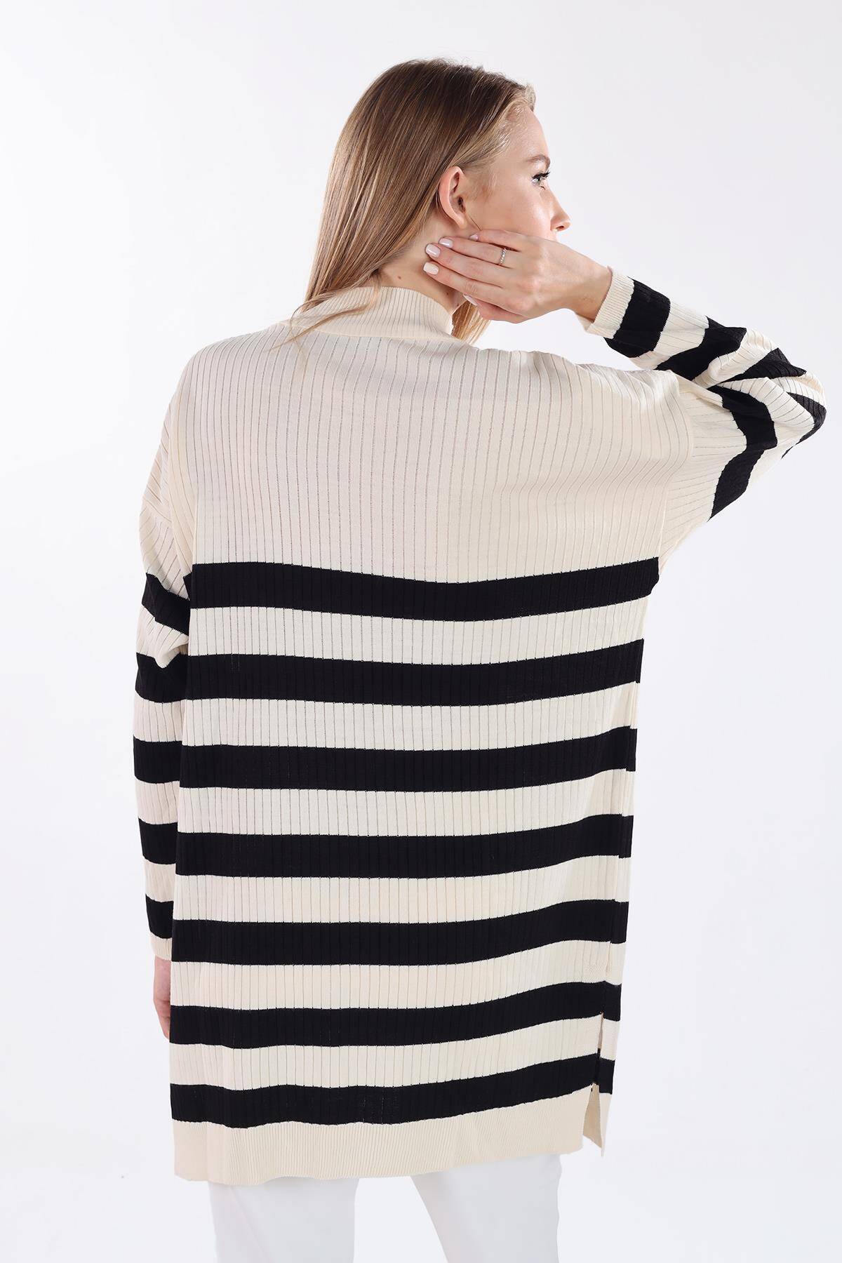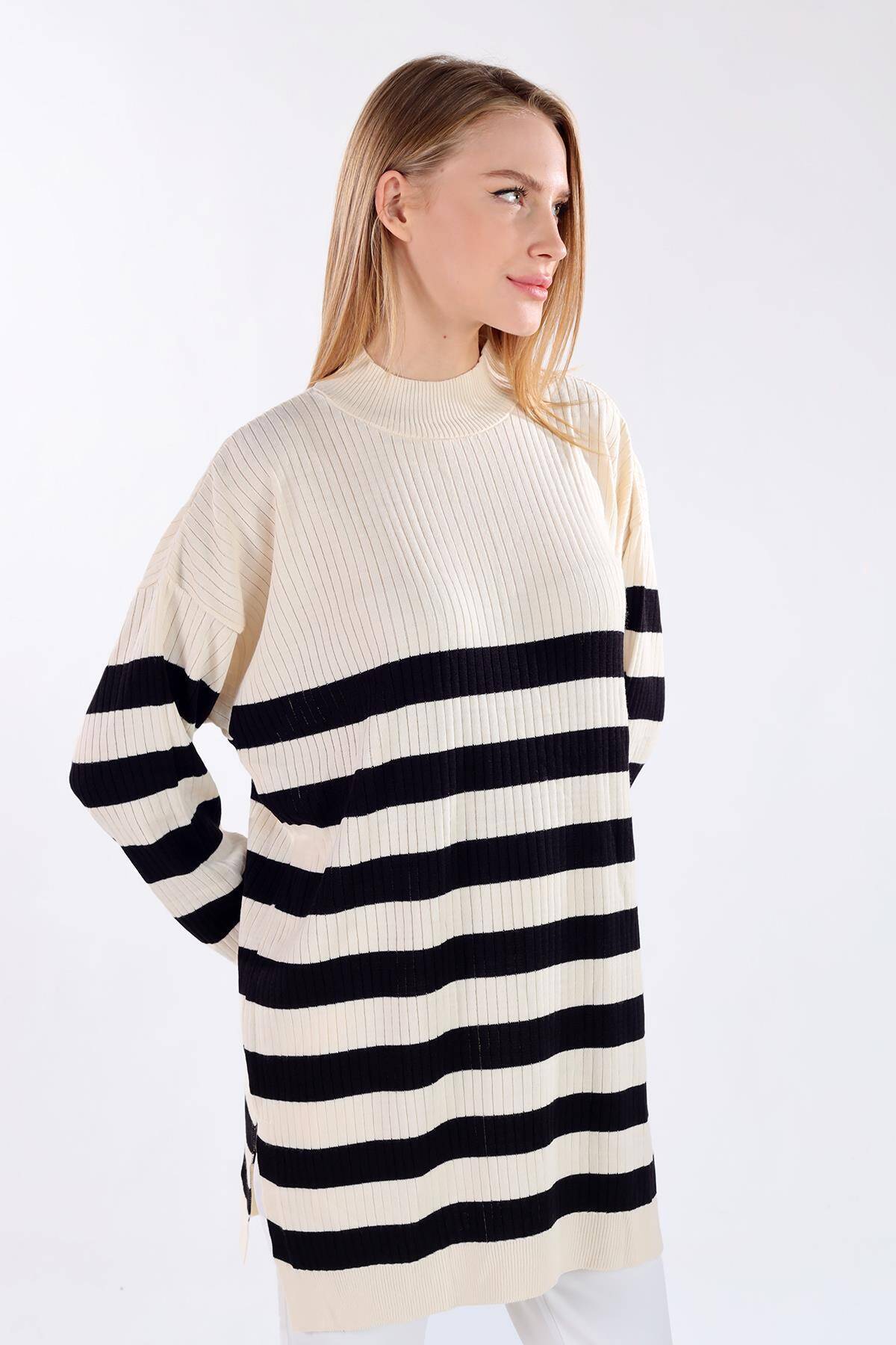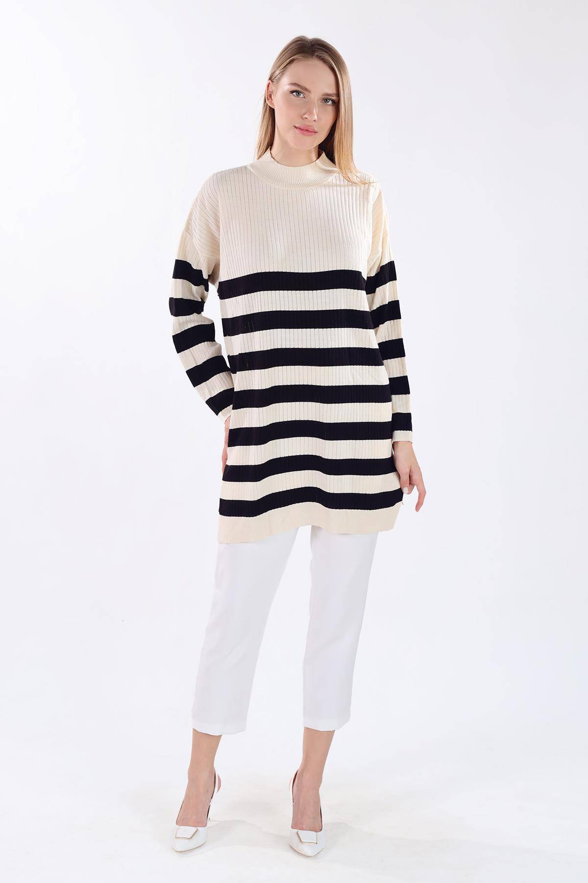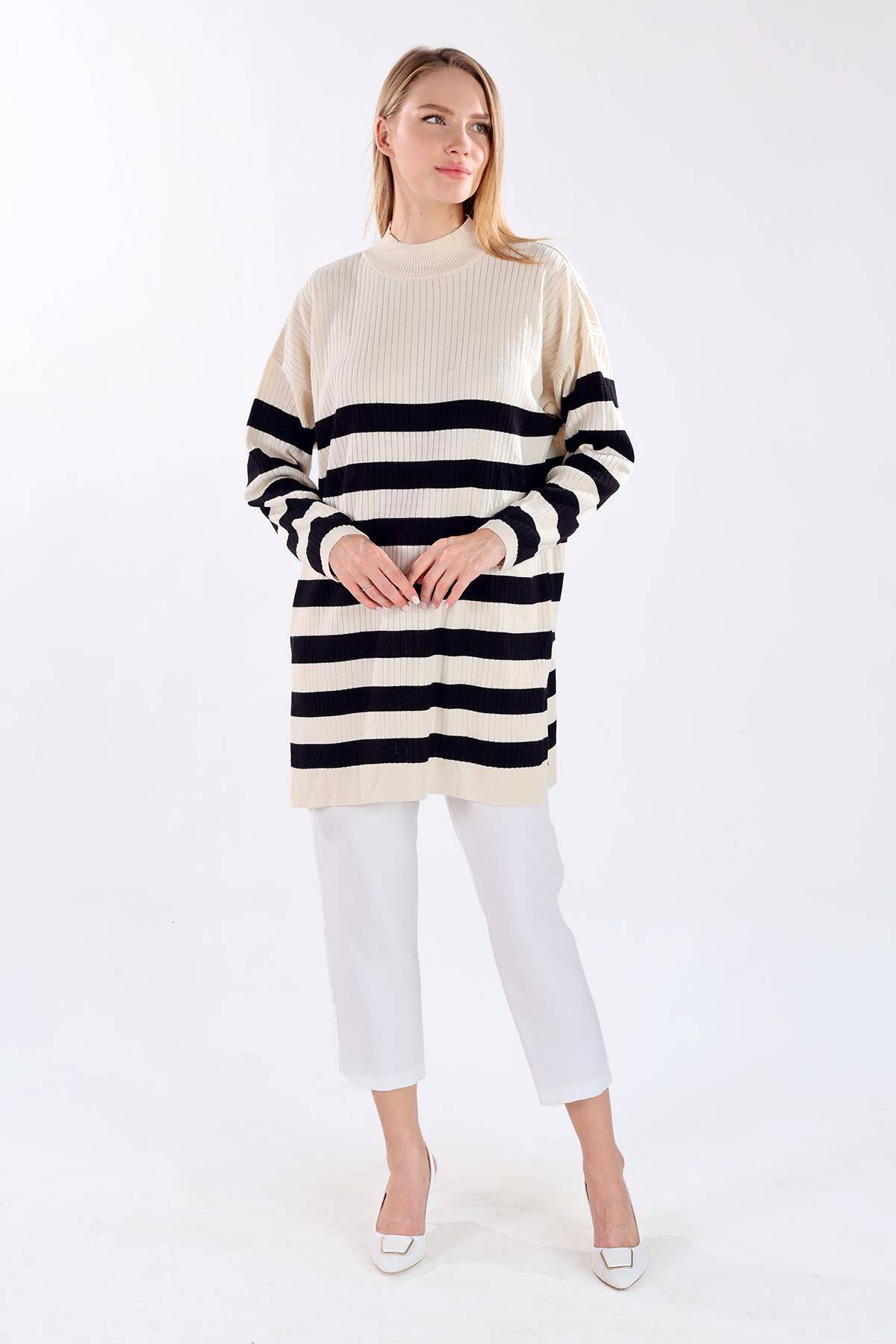 5330 Çizgili Triko Tunik Ekru