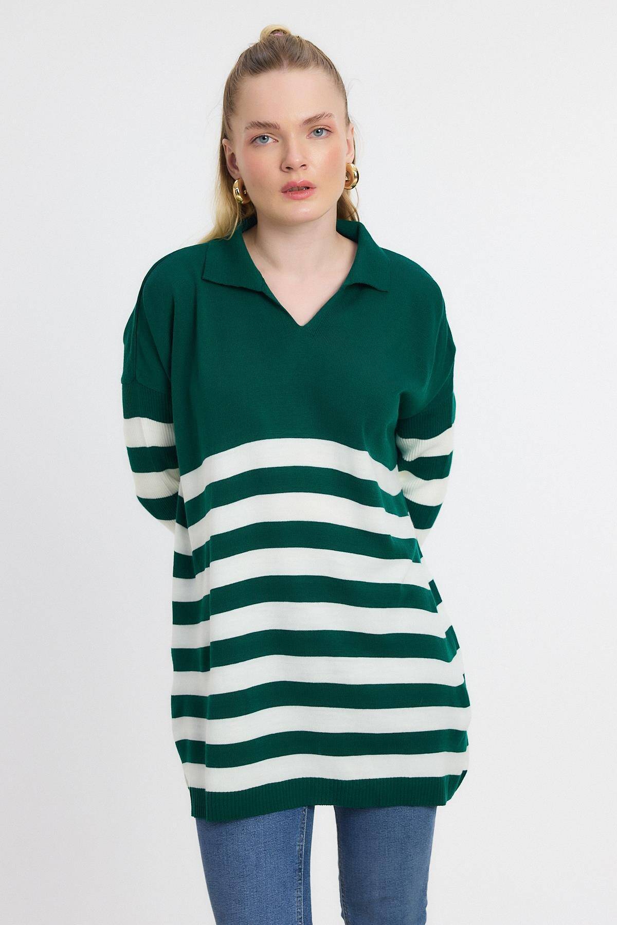 5340 Polo Yaka Çizgili Tunik Benetton Yeşili