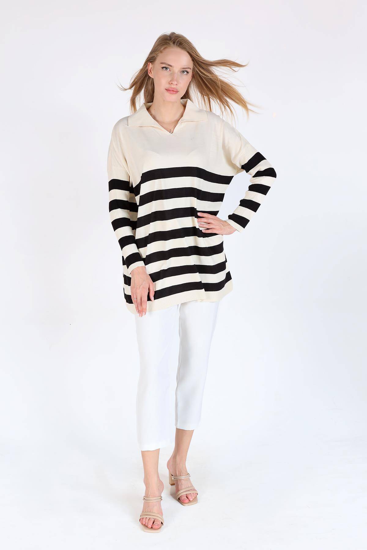 Beyaz Deri Kemer Detaylı Etnik Desenli Kimono 4363A