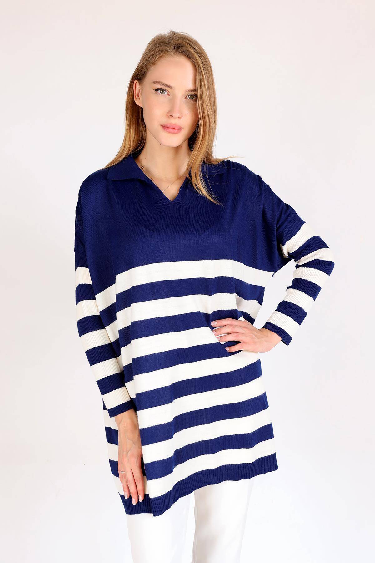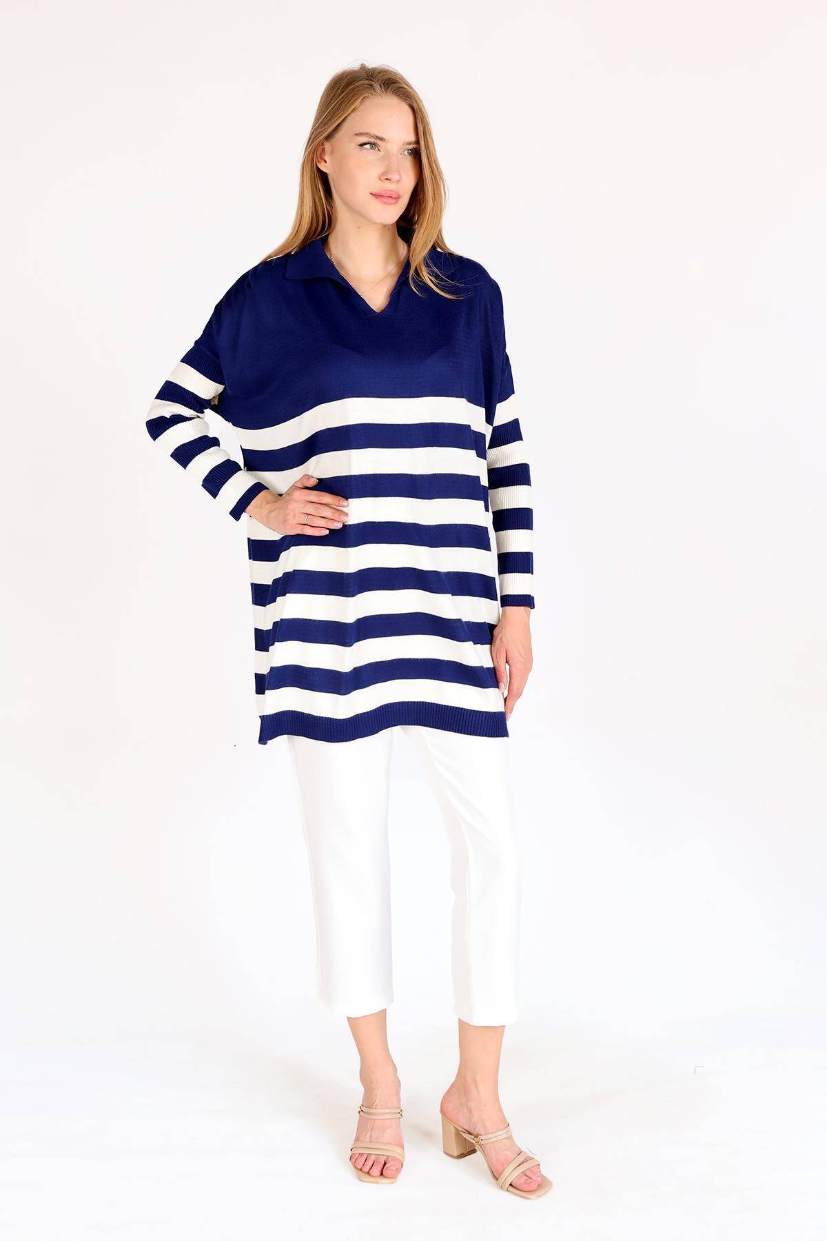5340 Polo Yaka Çizgili Tunik Laci