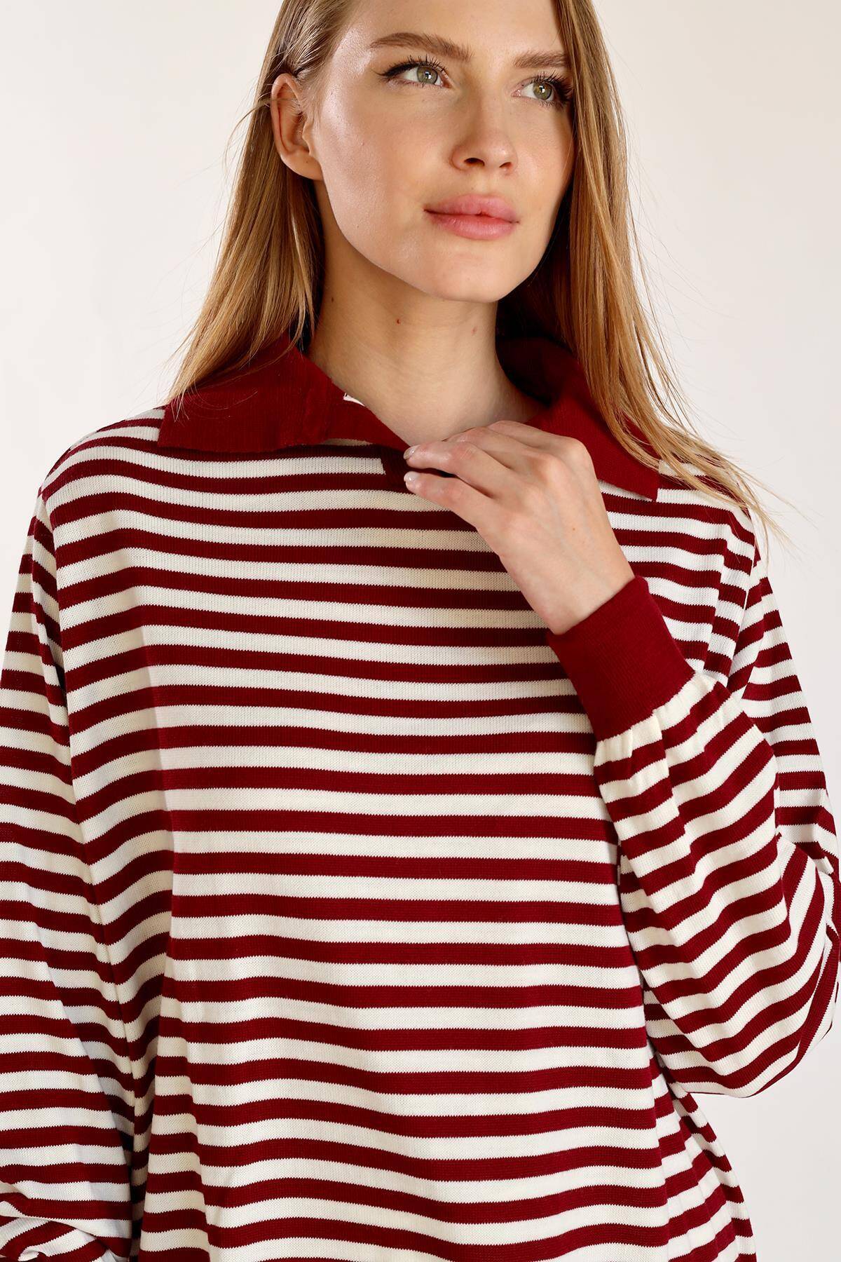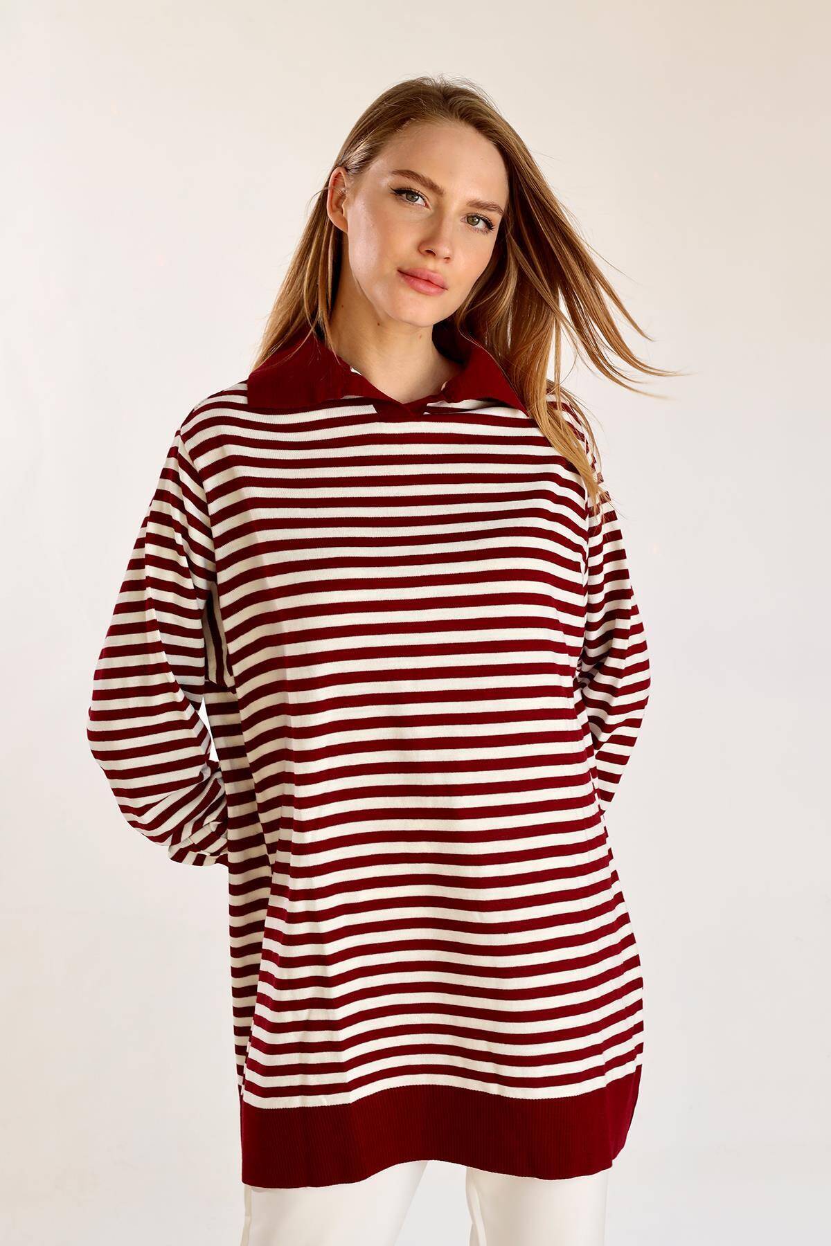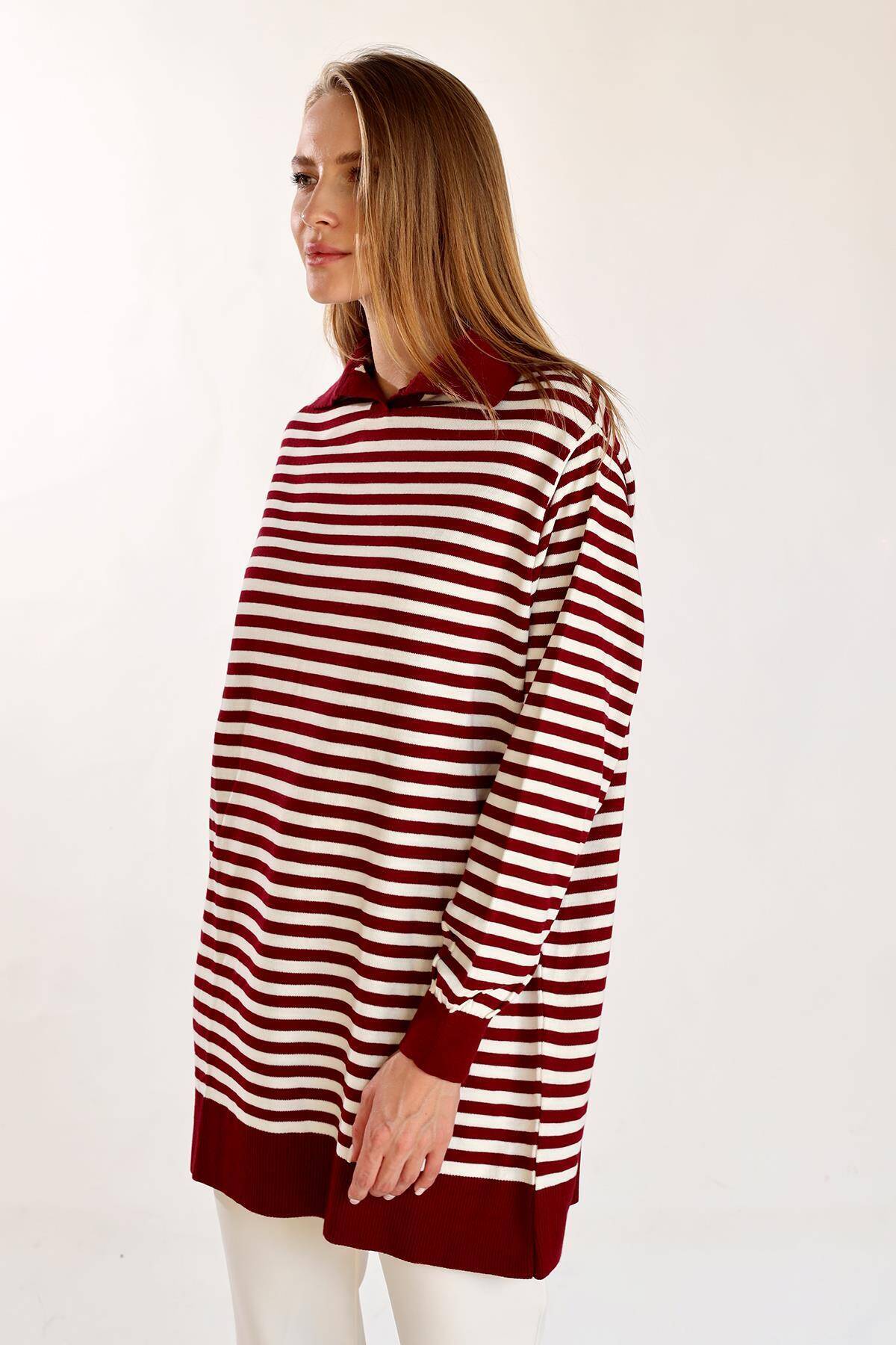 5345 İnce Çizgi Polo Yaka Tunik Bordo