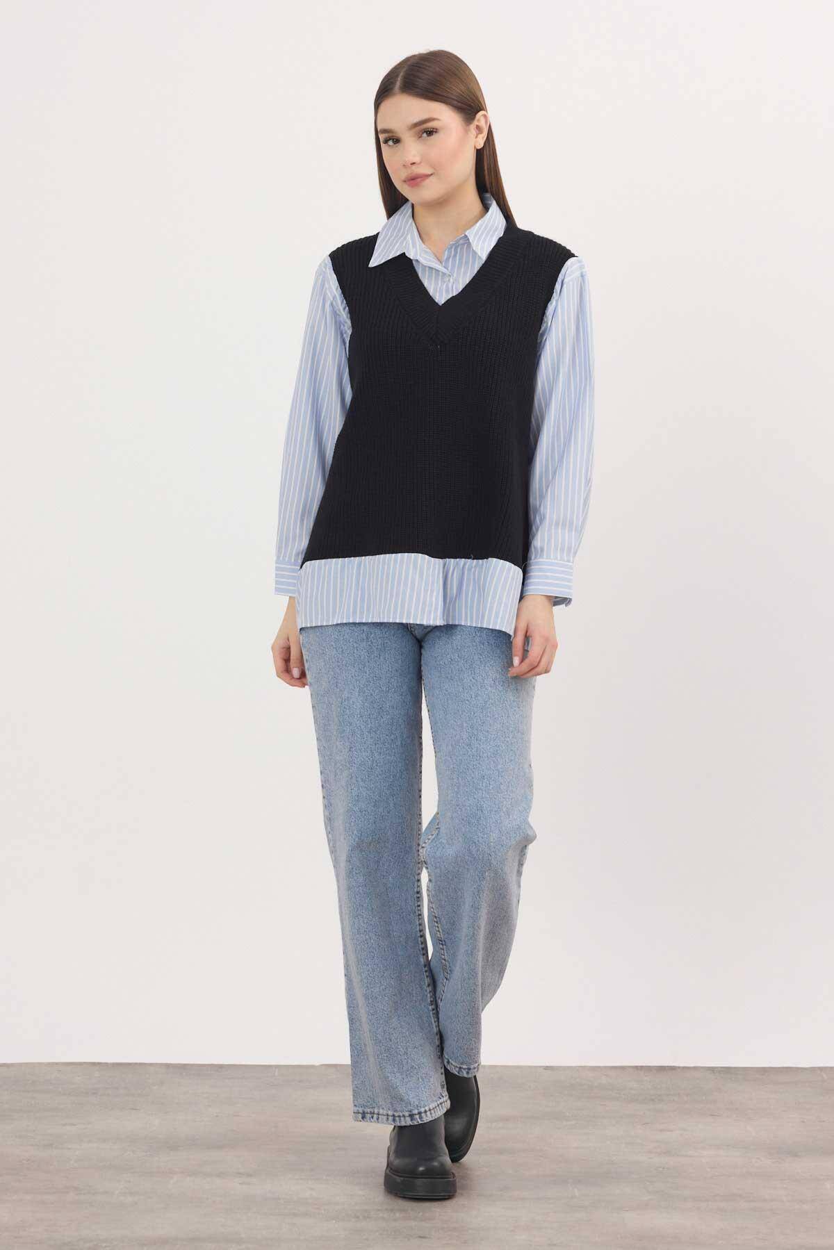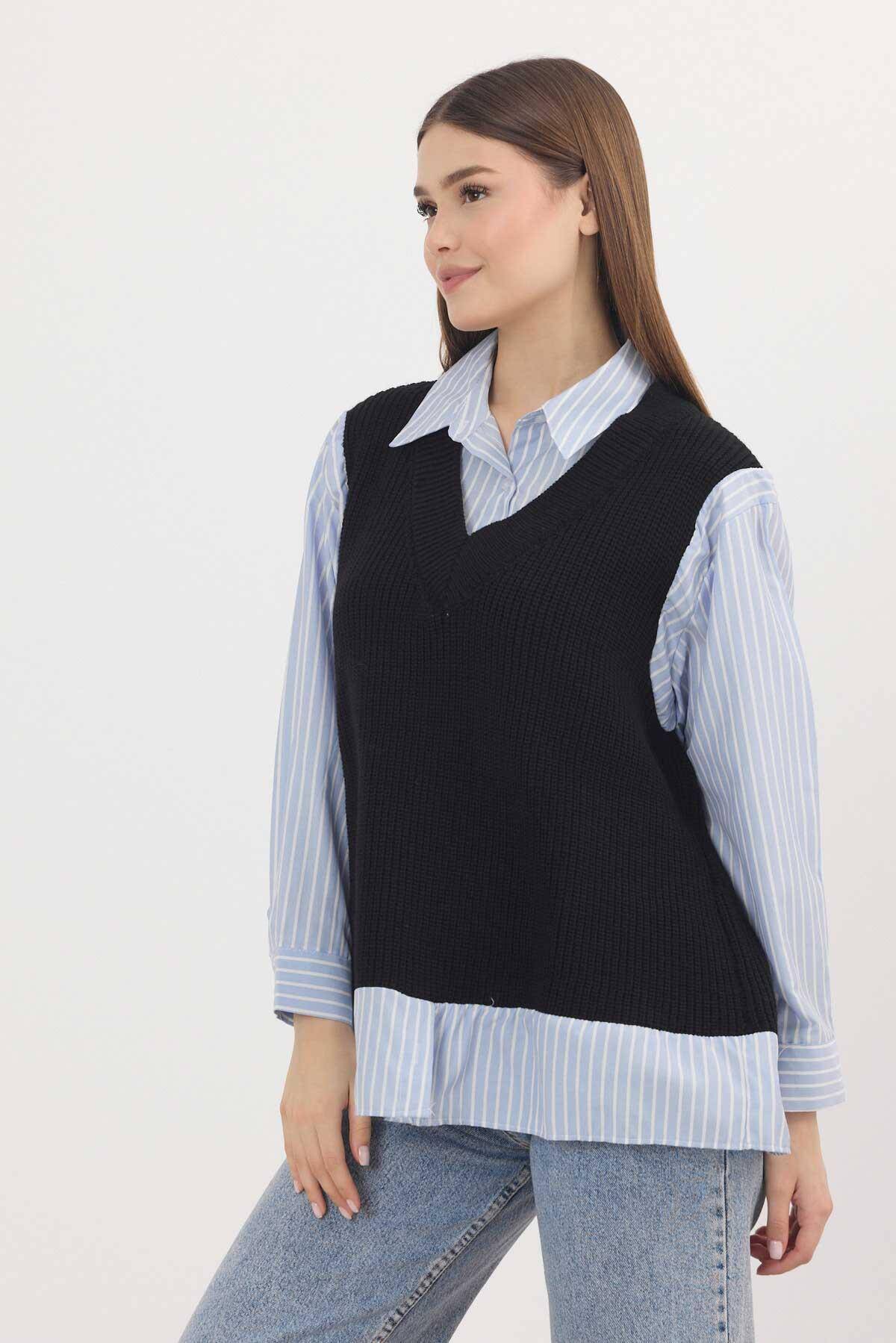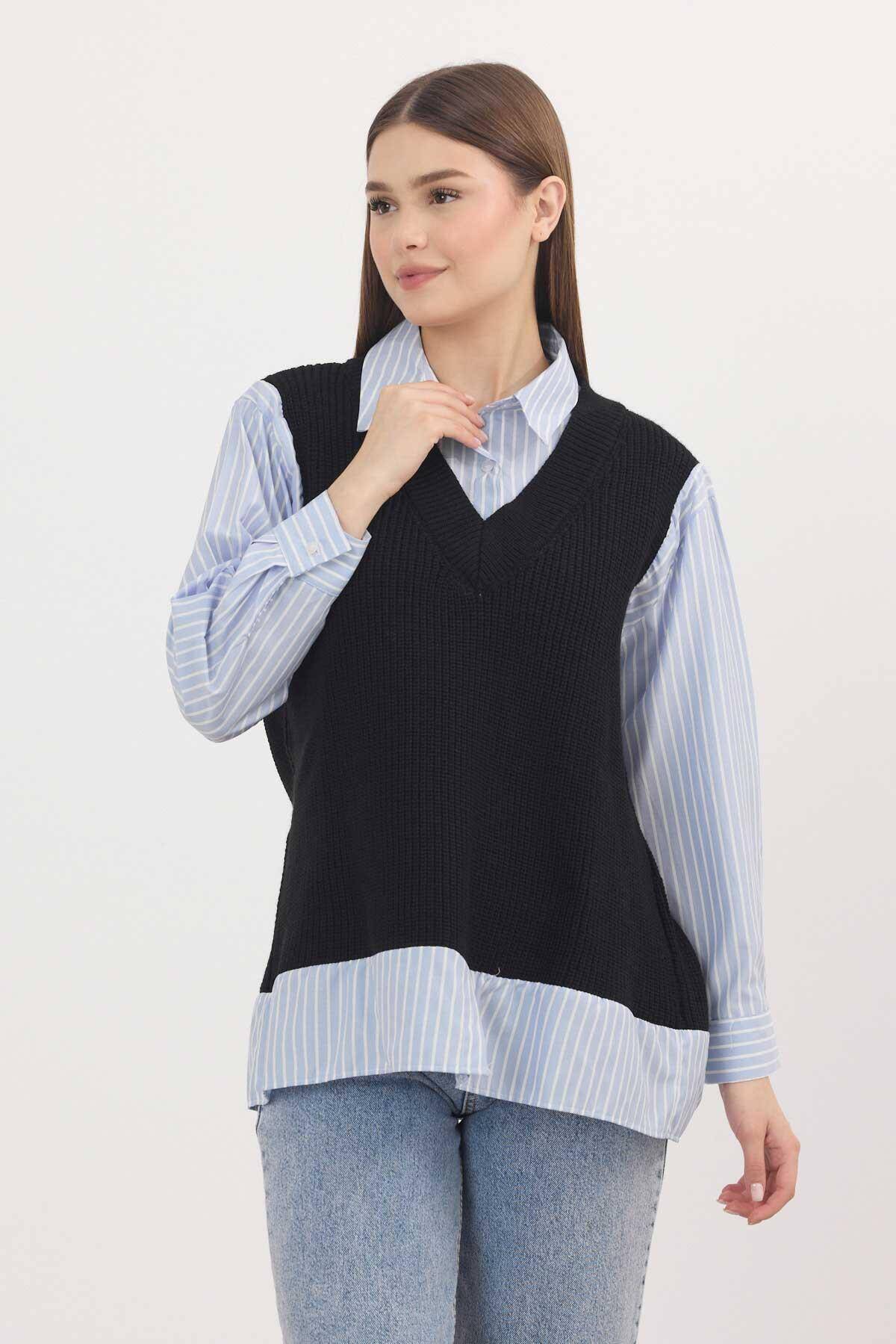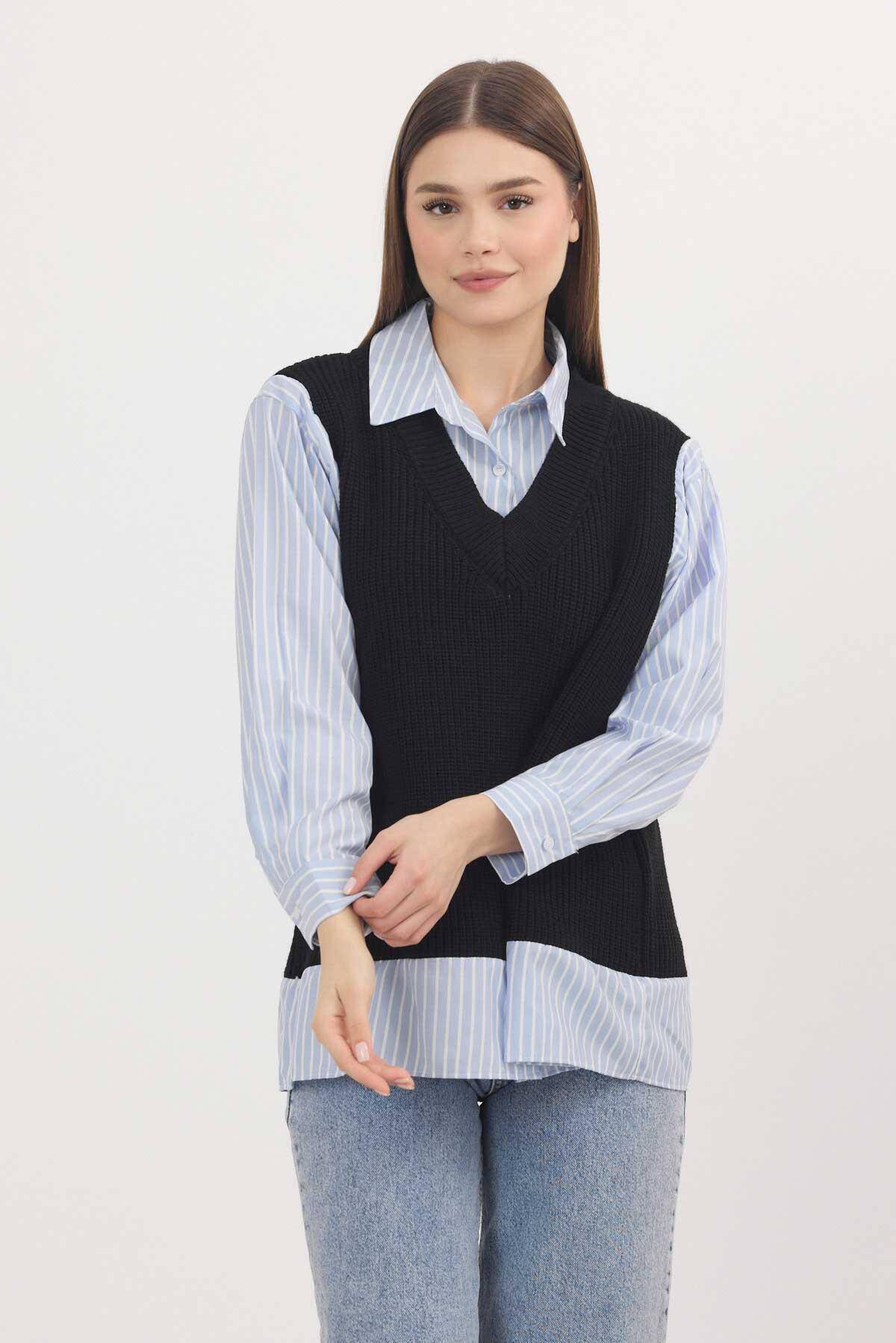 5395 Gömlek Detay Kazak Siyah-Mavi