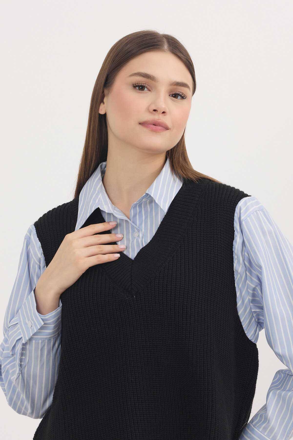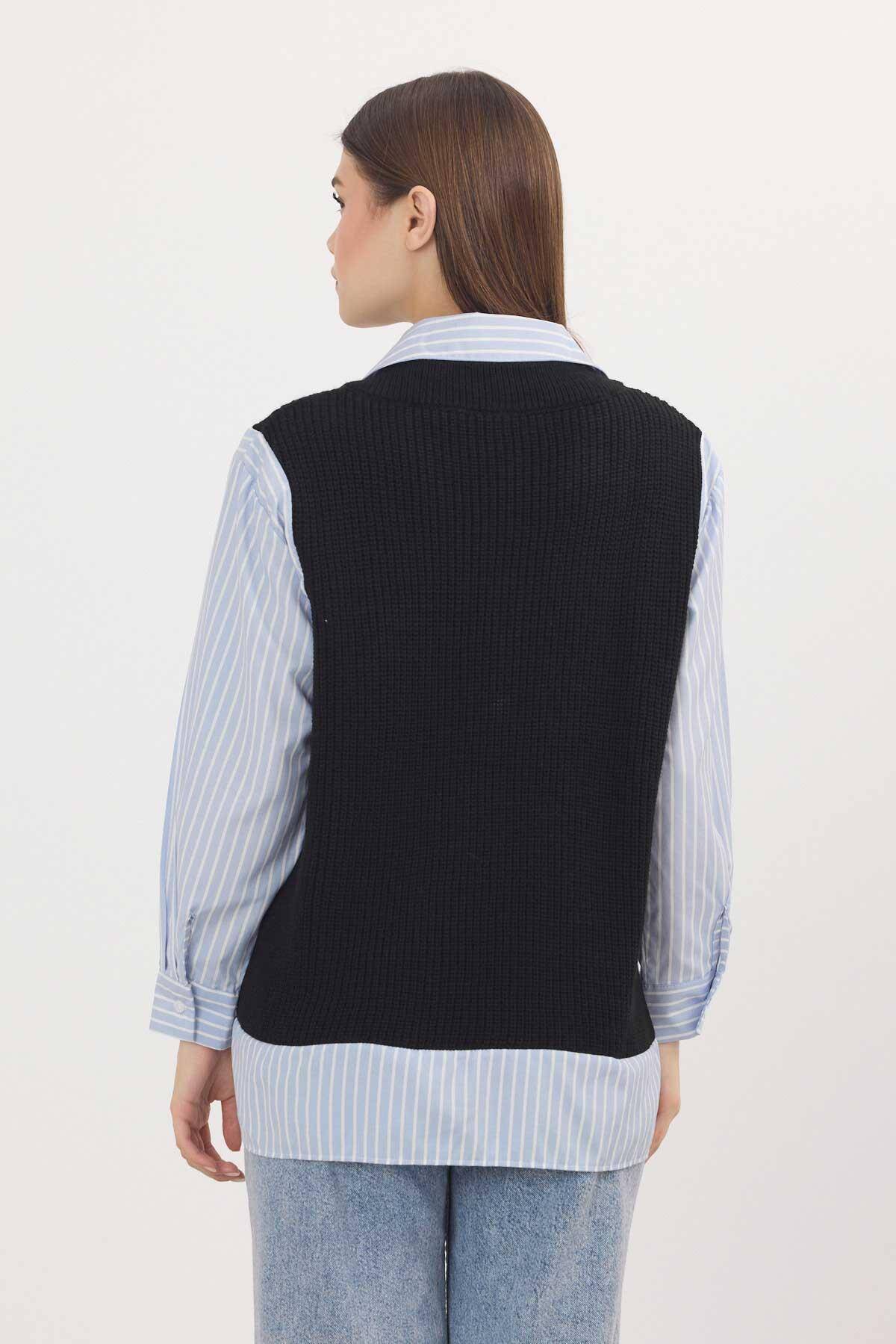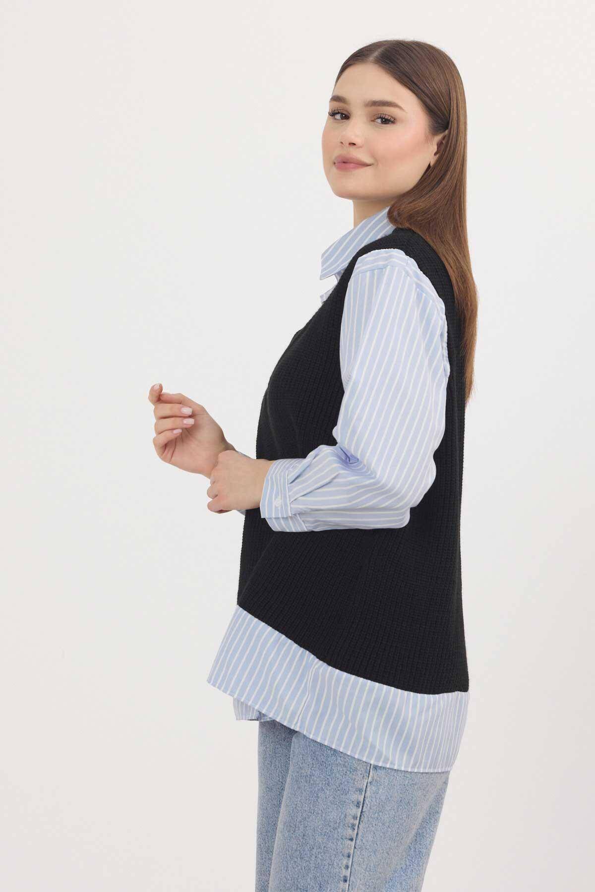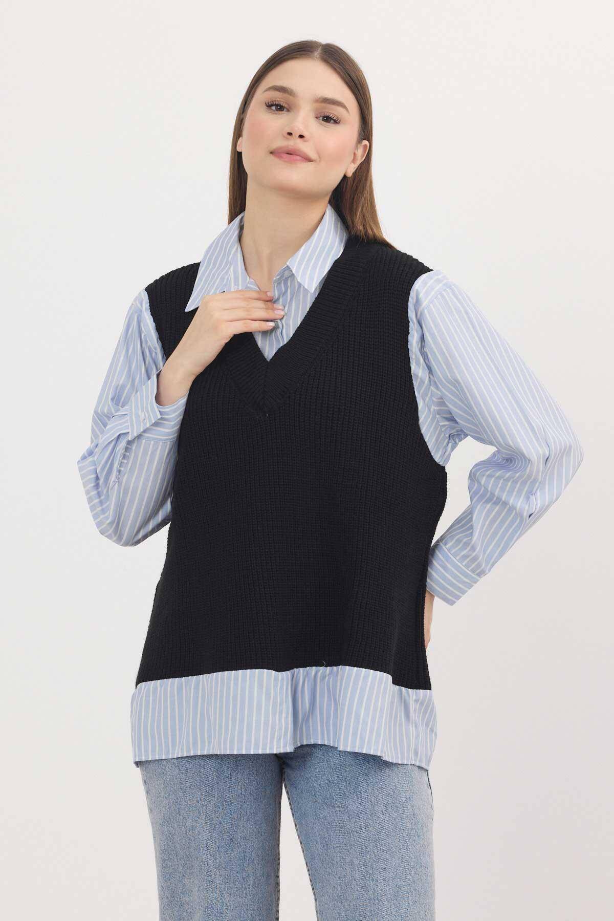 5395 Gömlek Detay Kazak Siyah-Mavi