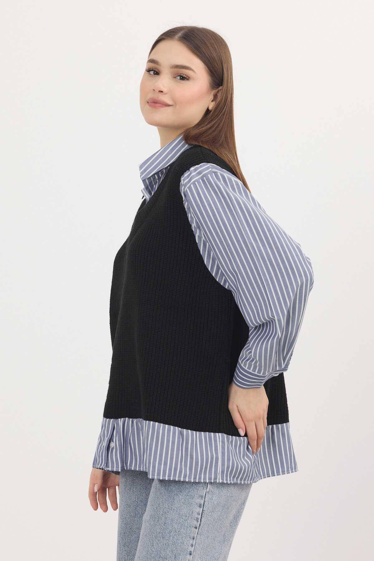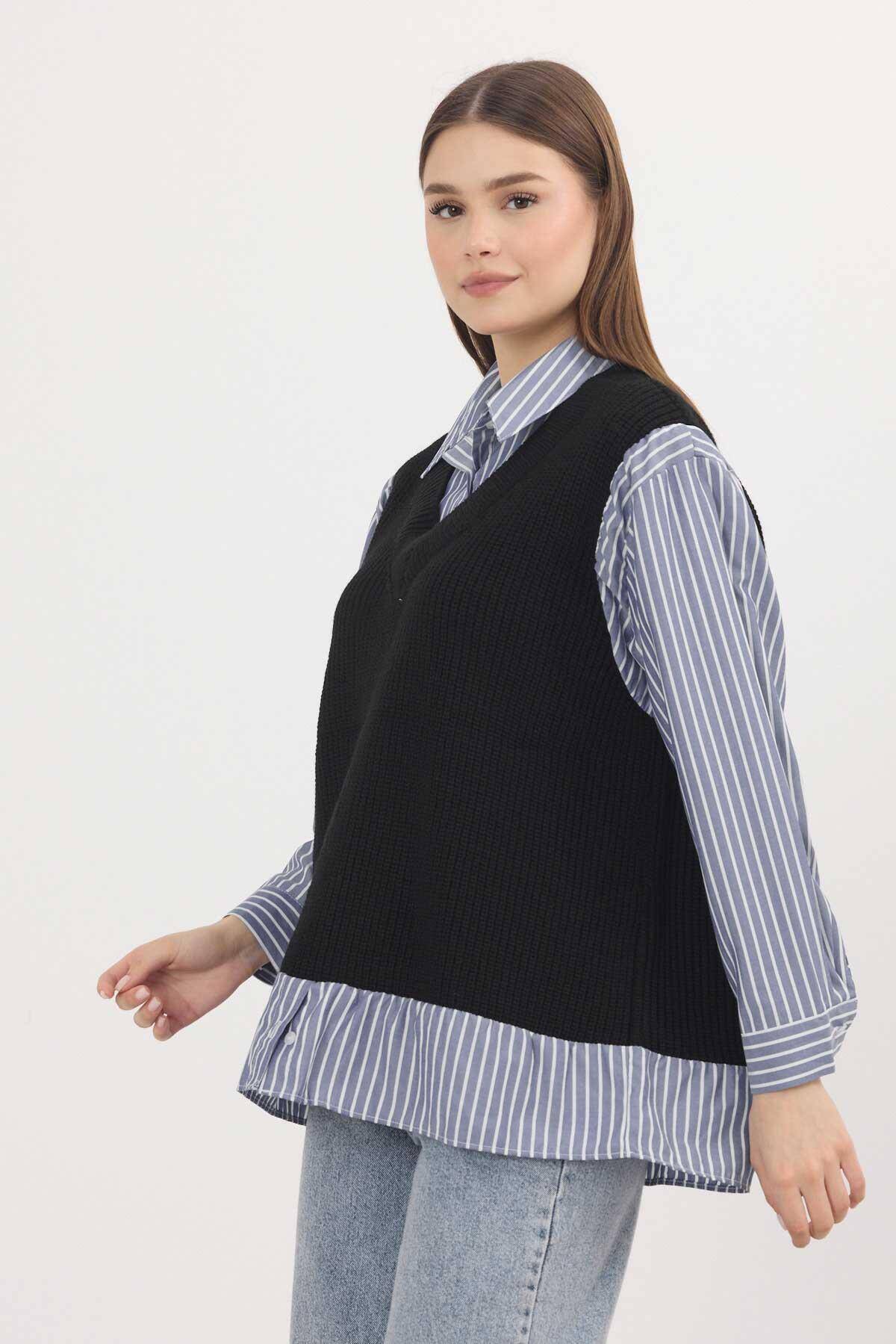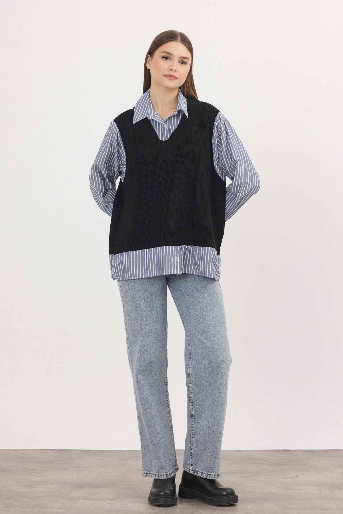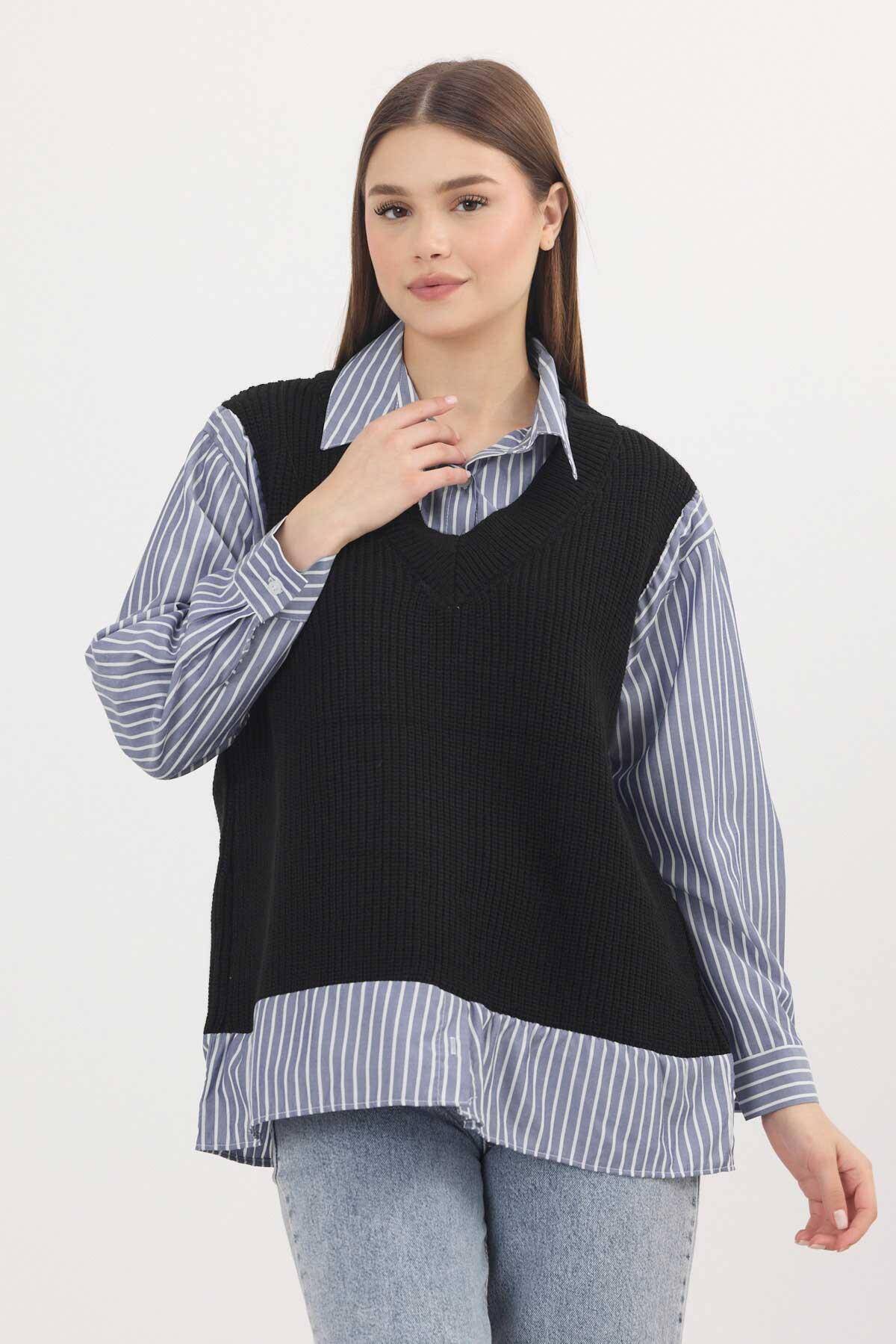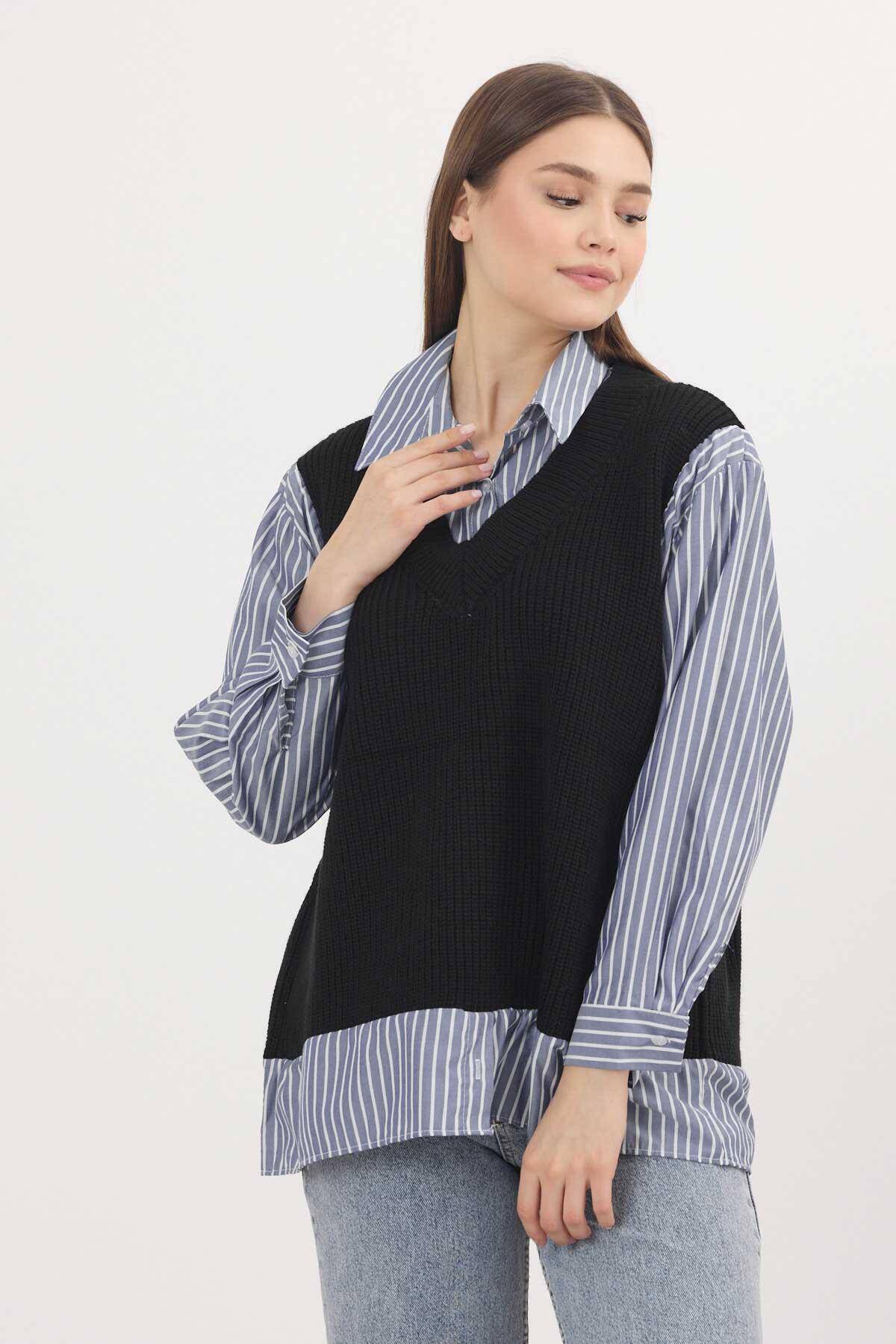 5395 Gömlek Detay Kazak Siyah-Saks