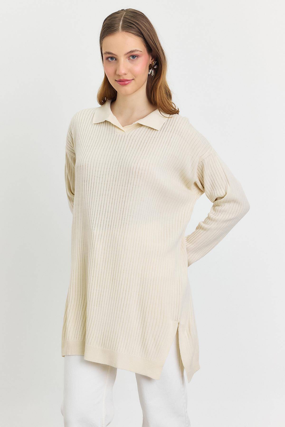 Bej Kapüşonlu Cepli Fermuarlı Kap 4572A