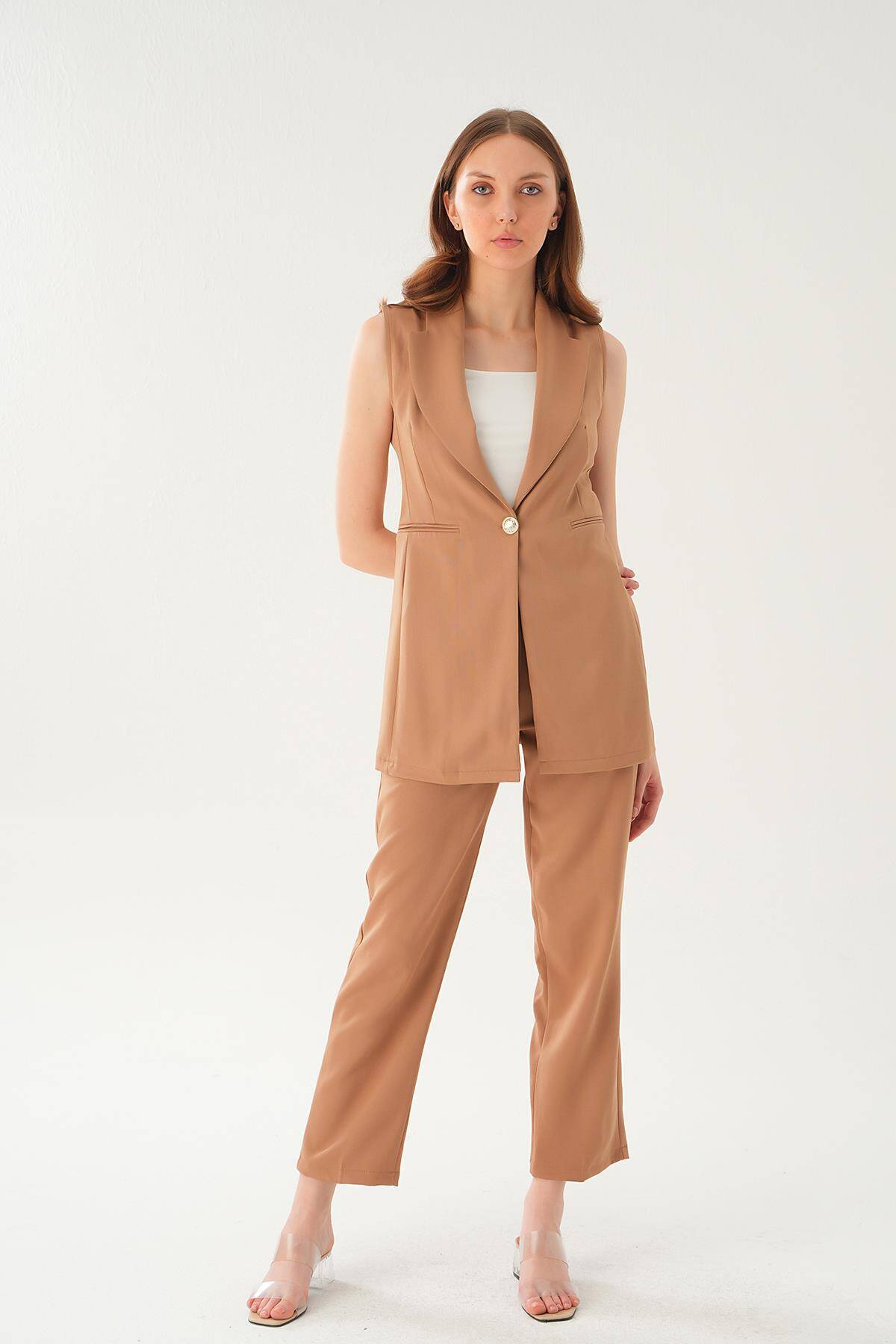 Bej Kapüşonlu Cepli Fermuarlı Kap 4572A