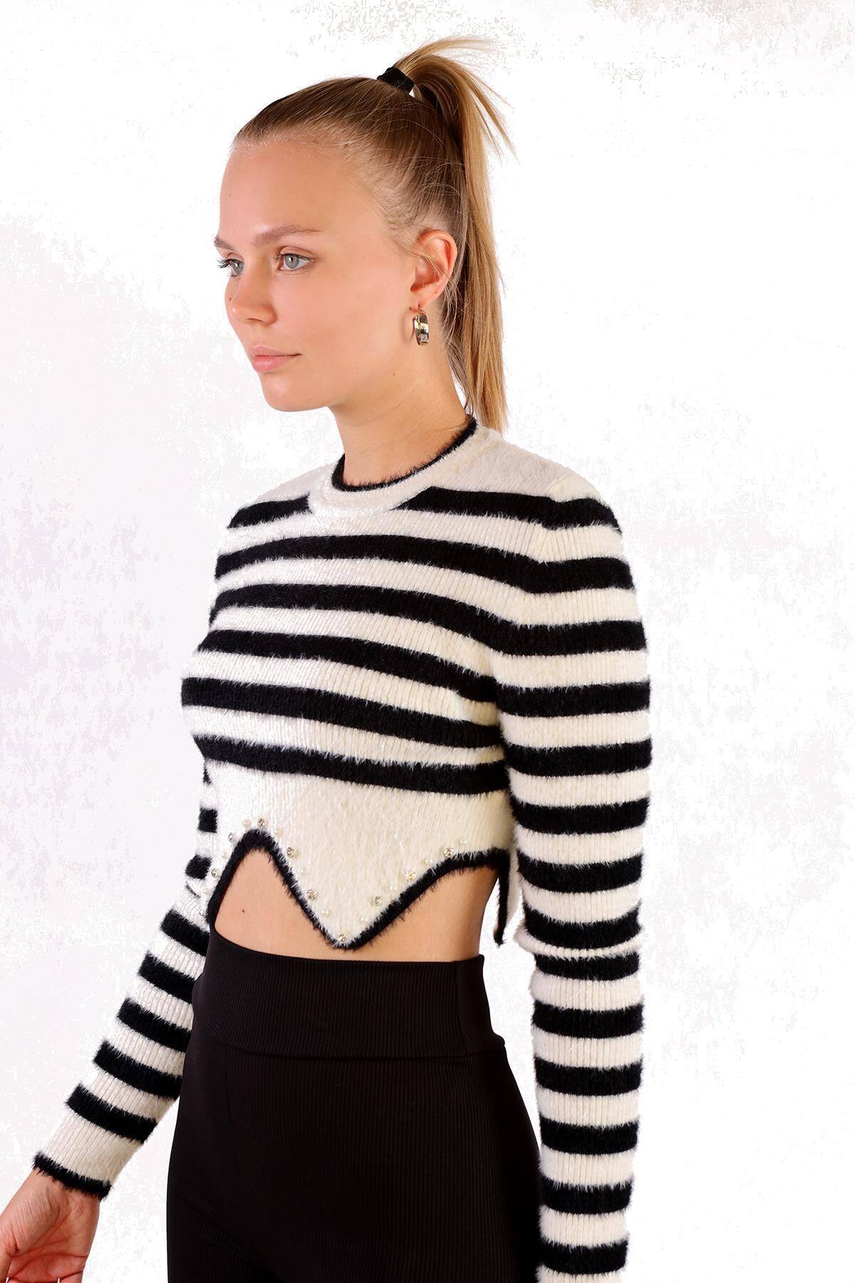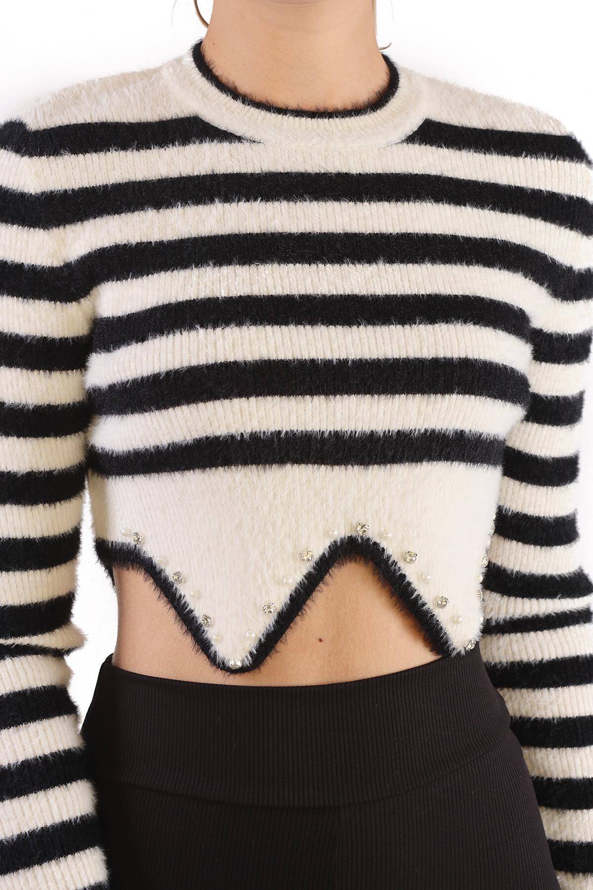 6611 Etek Boncuk Detay Yumoş Kazak Ekru