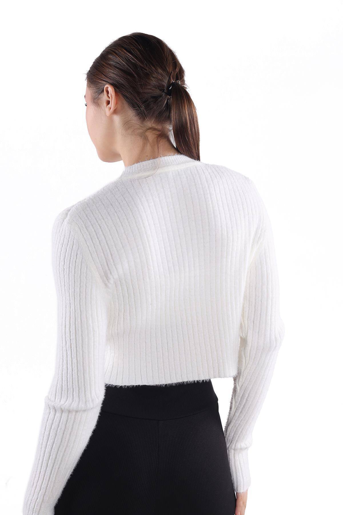 Beyaz Deri Kemer Detaylı Etnik Desenli Kimono 4363A