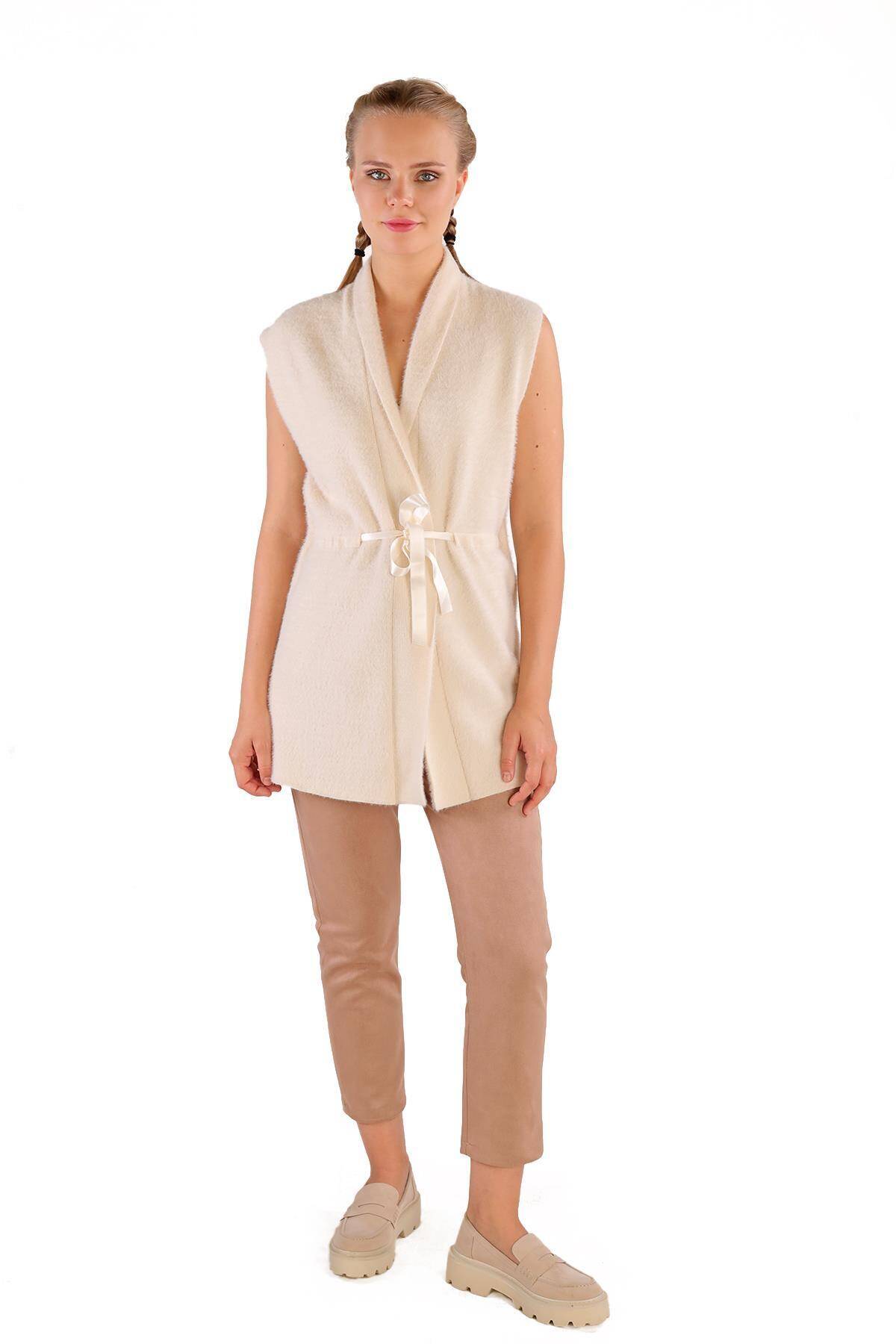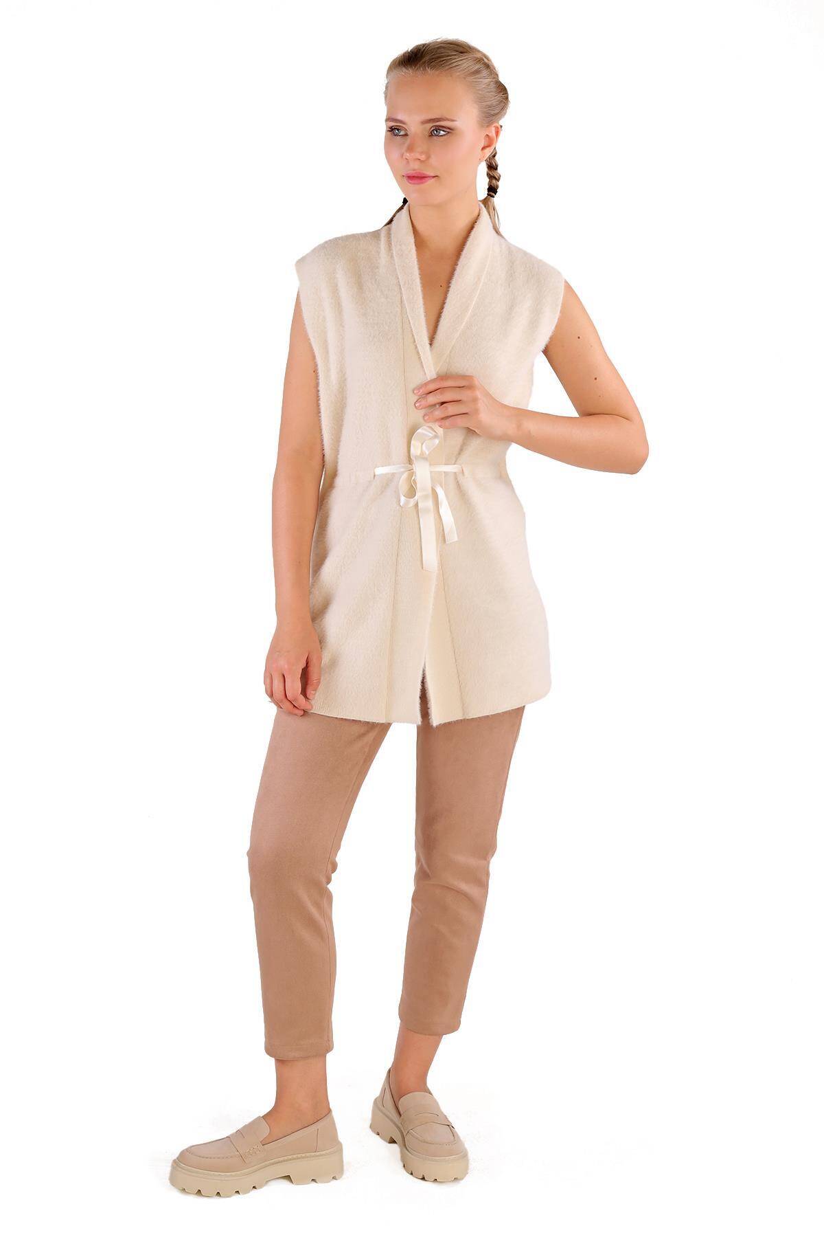 Beyaz Deri Kemer Detaylı Etnik Desenli Kimono 4363A