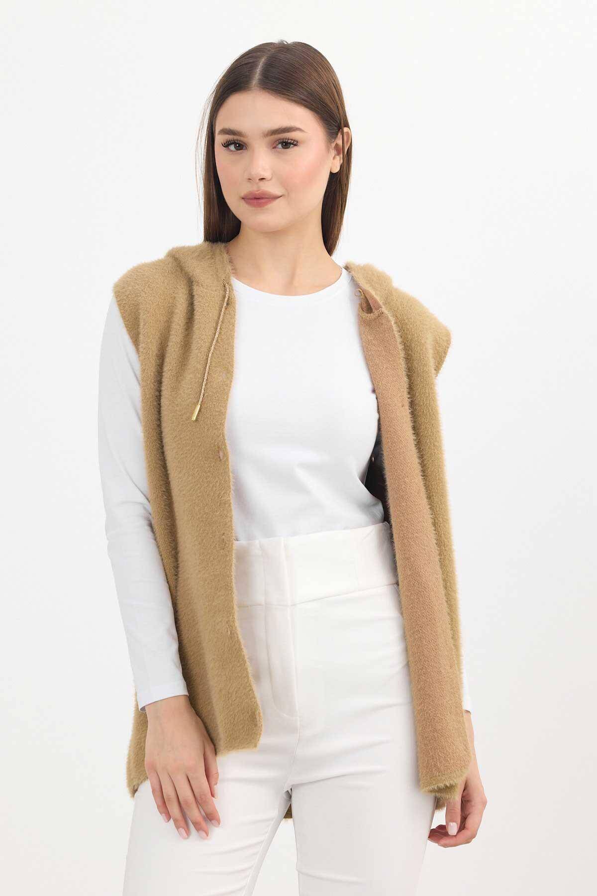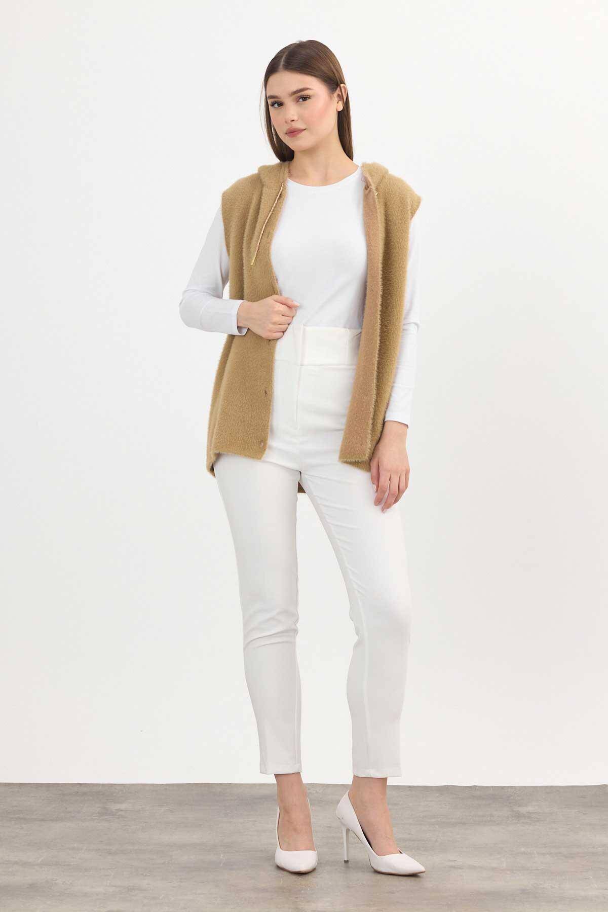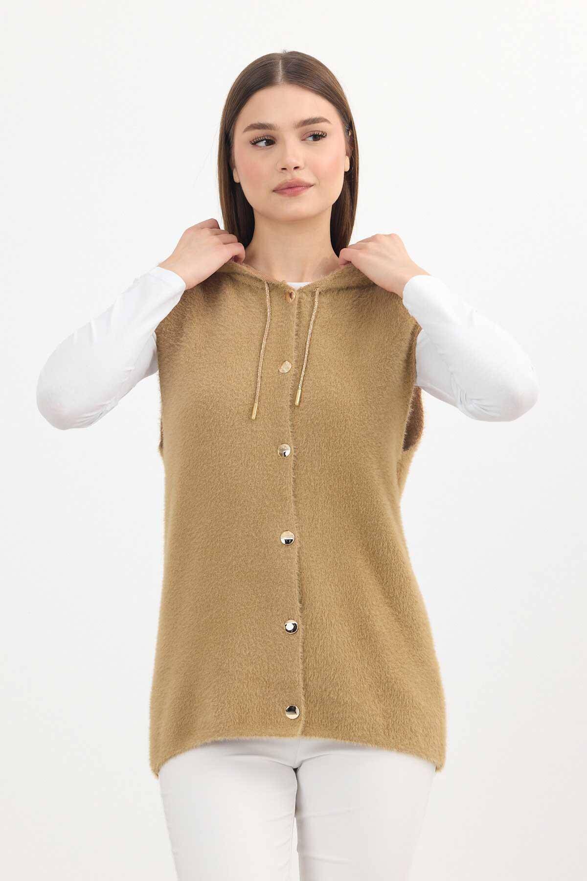 Bej Kapüşonlu Cepli Fermuarlı Kap 4572A