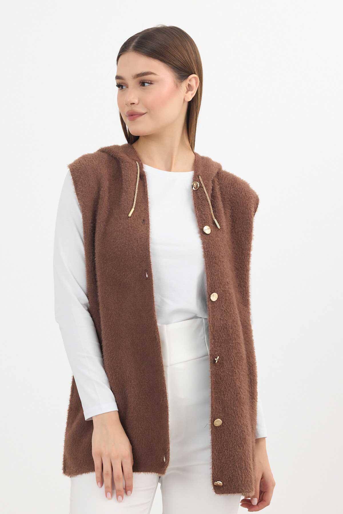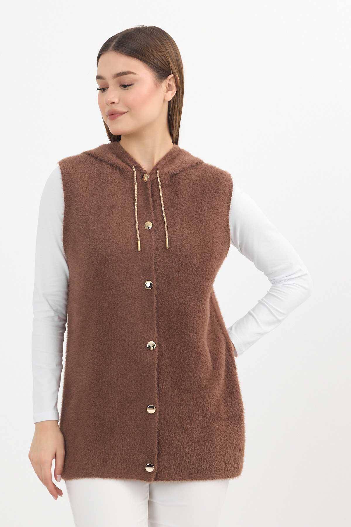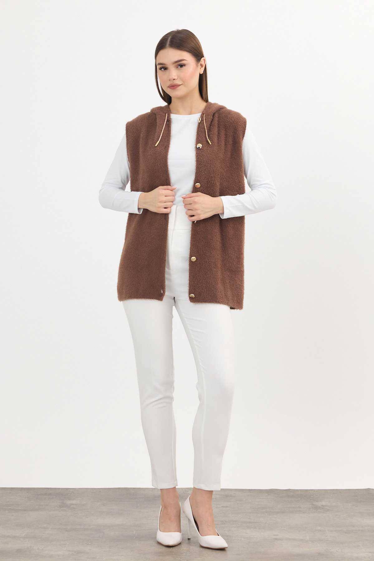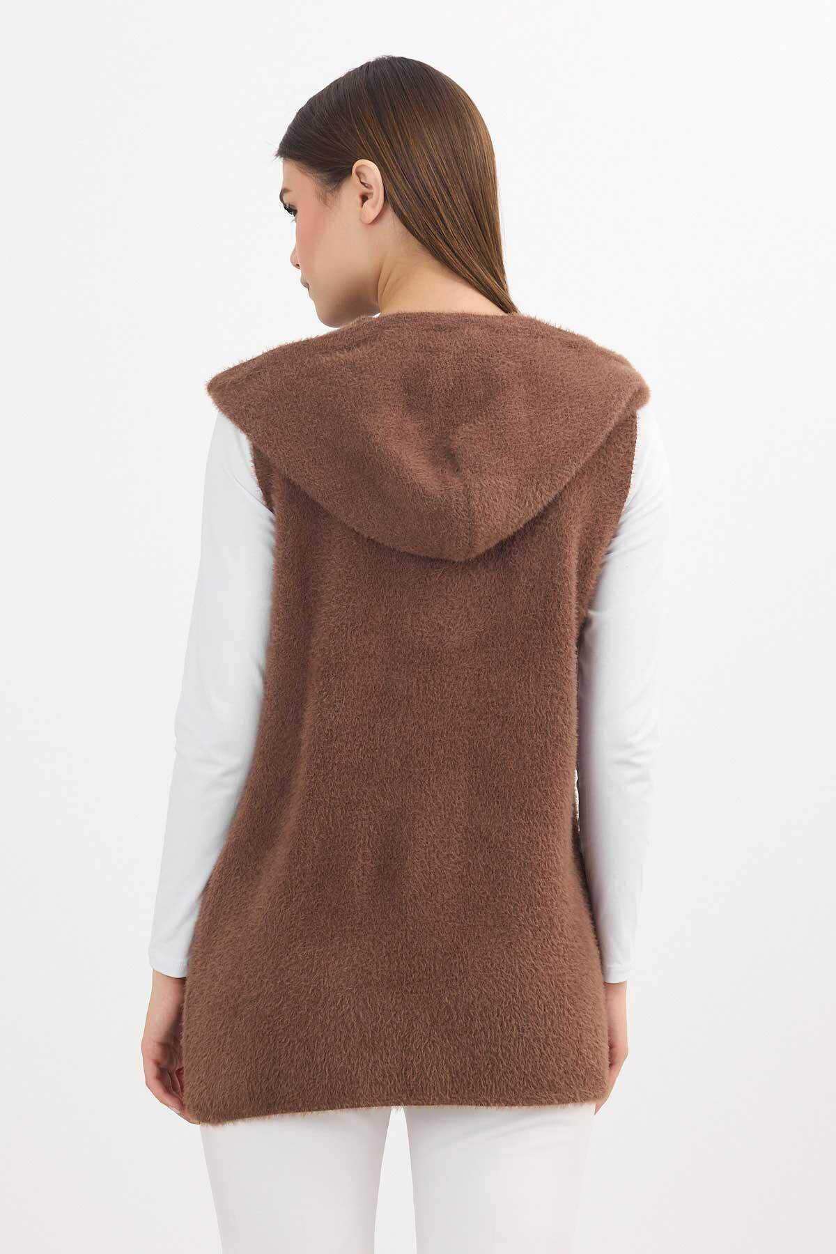 6681 Kapüşonlu Yumoş Yelek Kahve