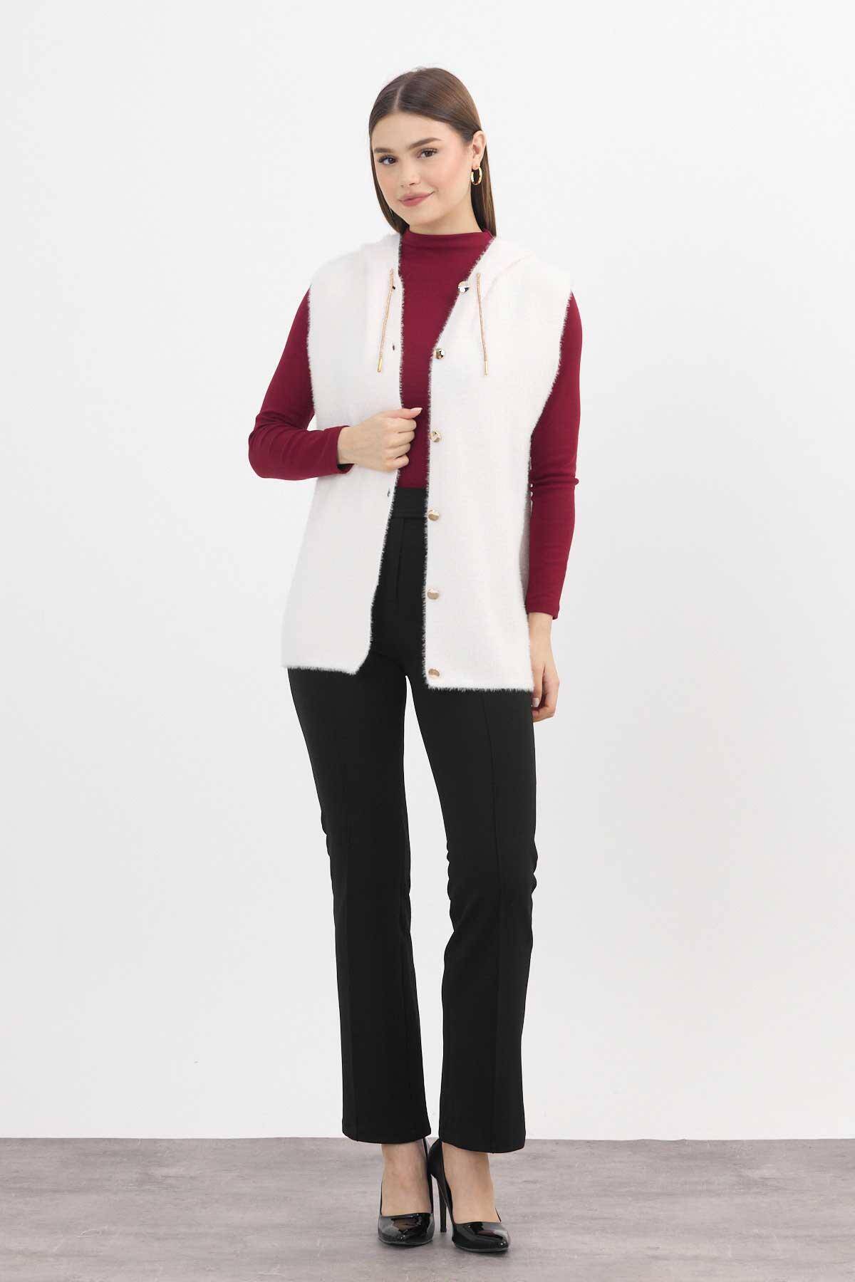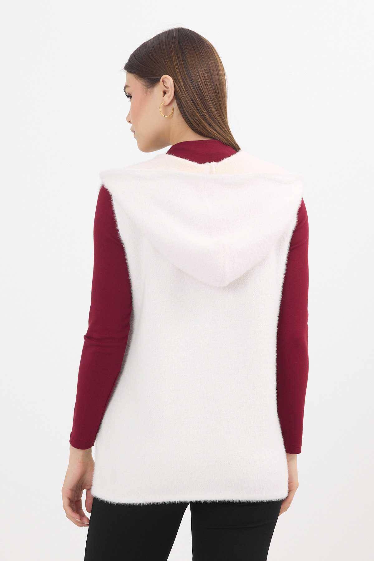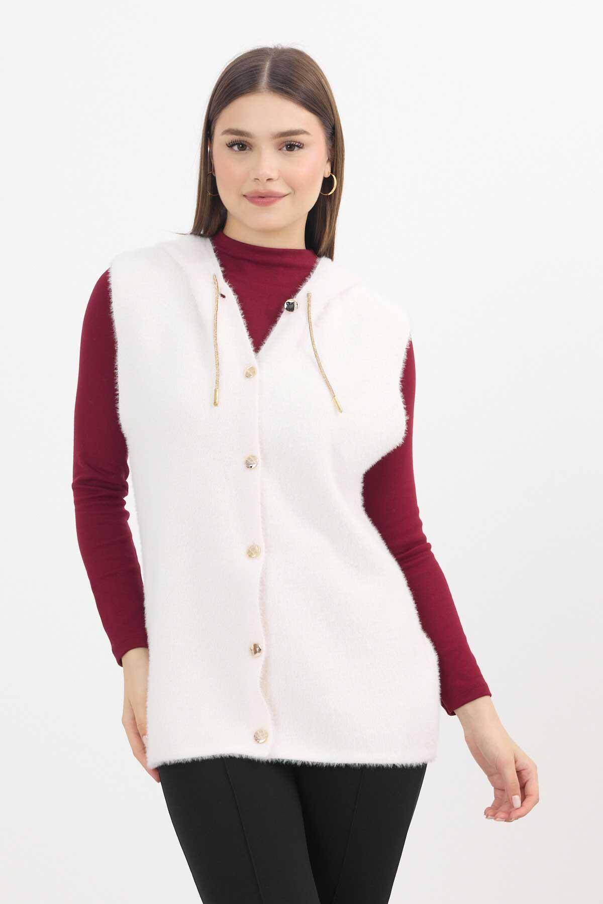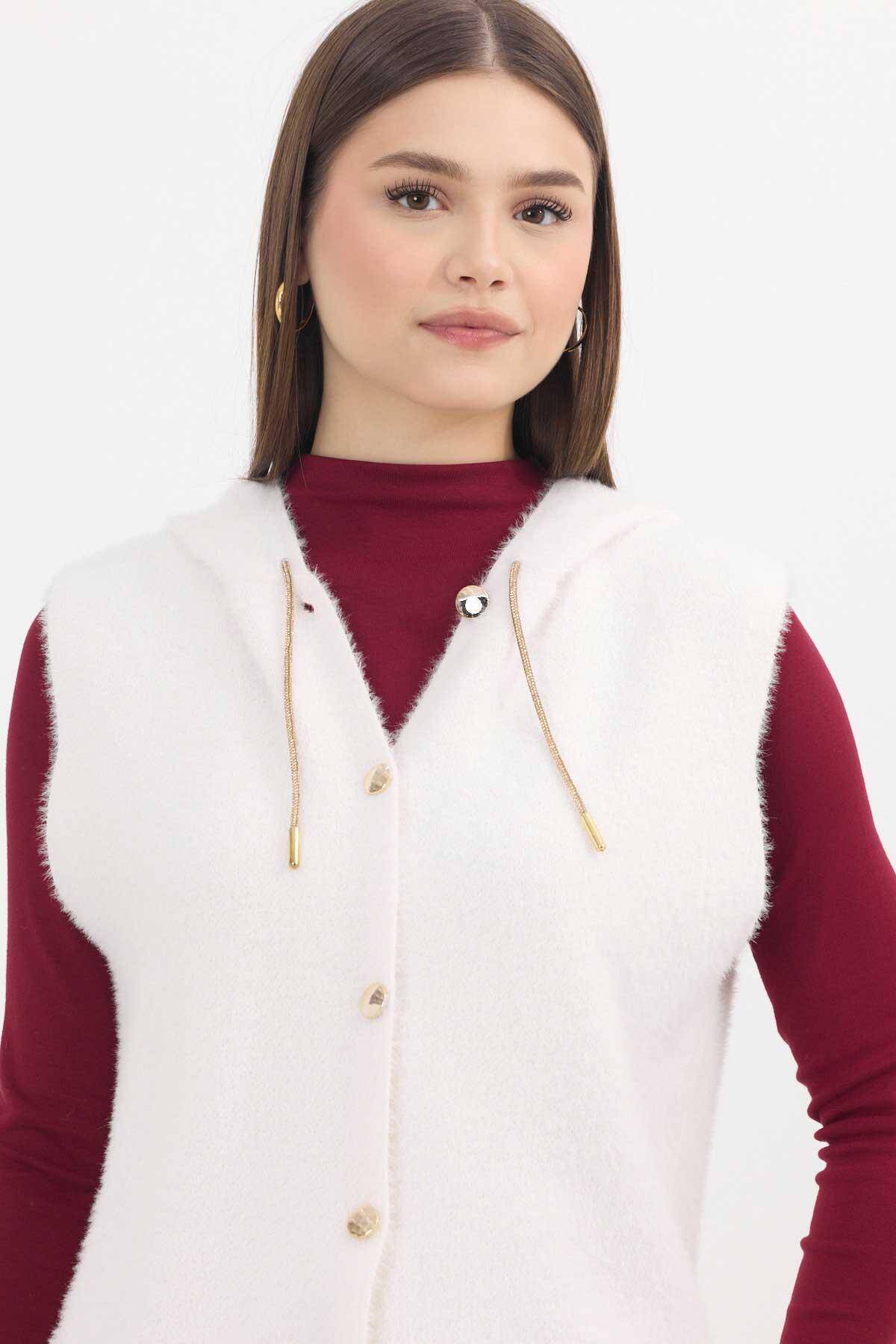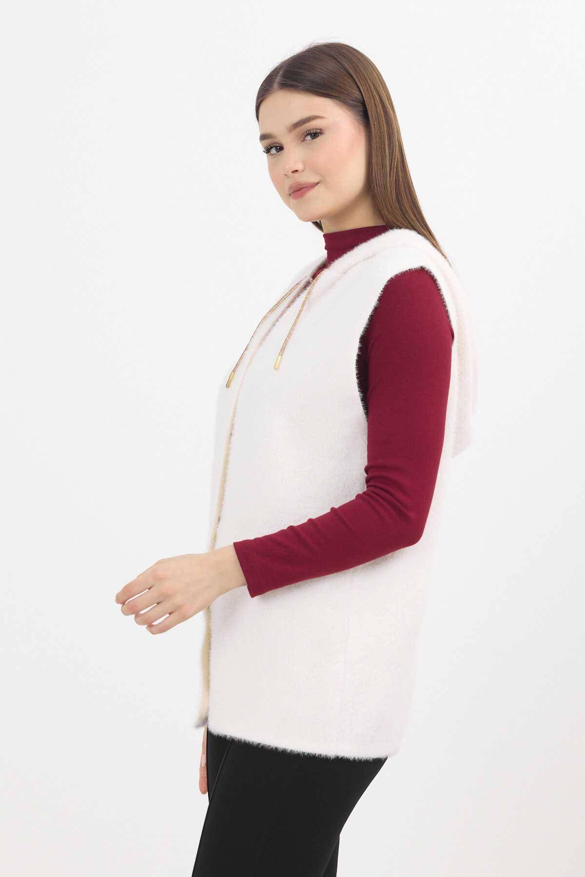 6681 Kapüşonlu Yumoş Yelek Taş